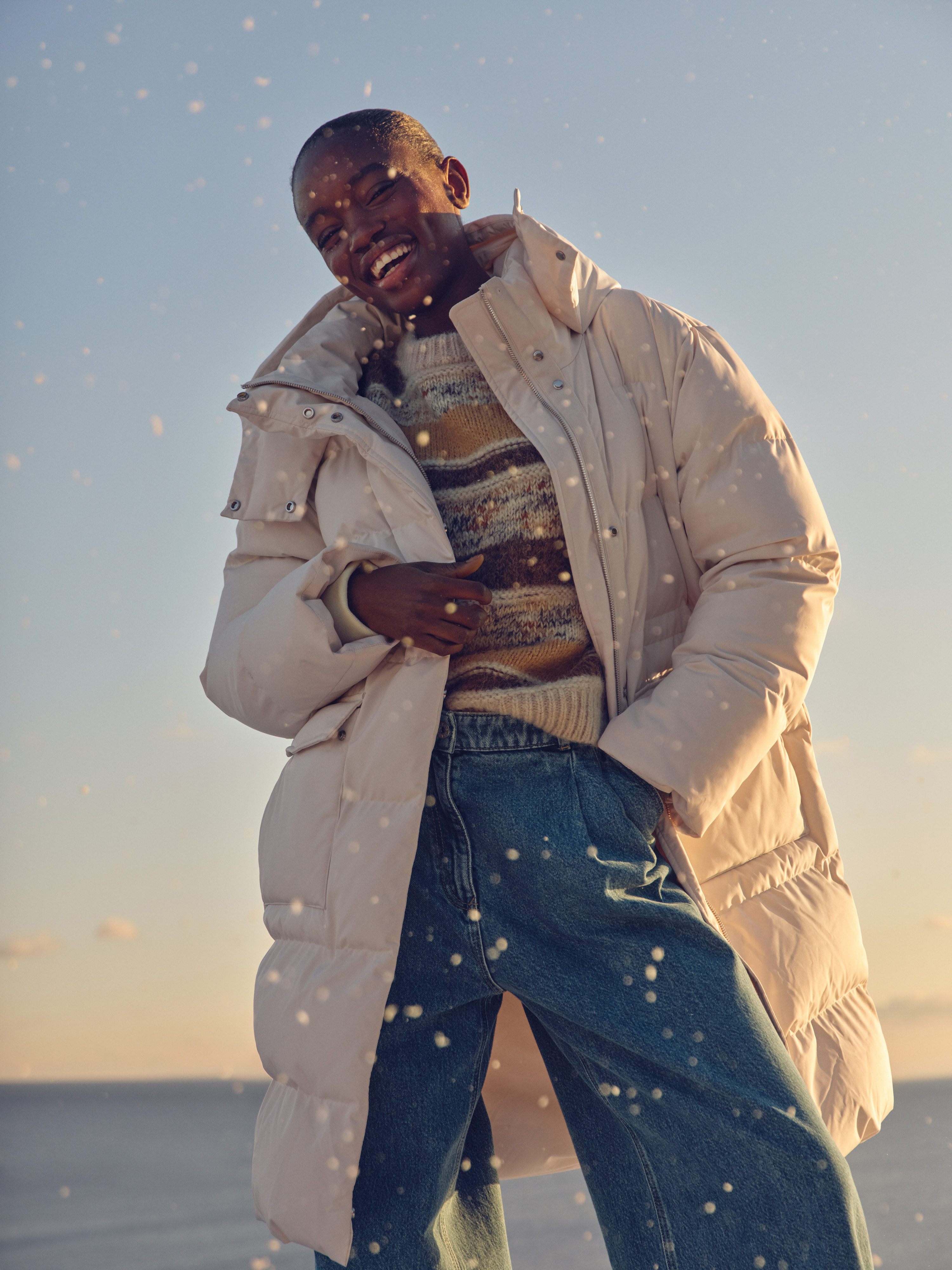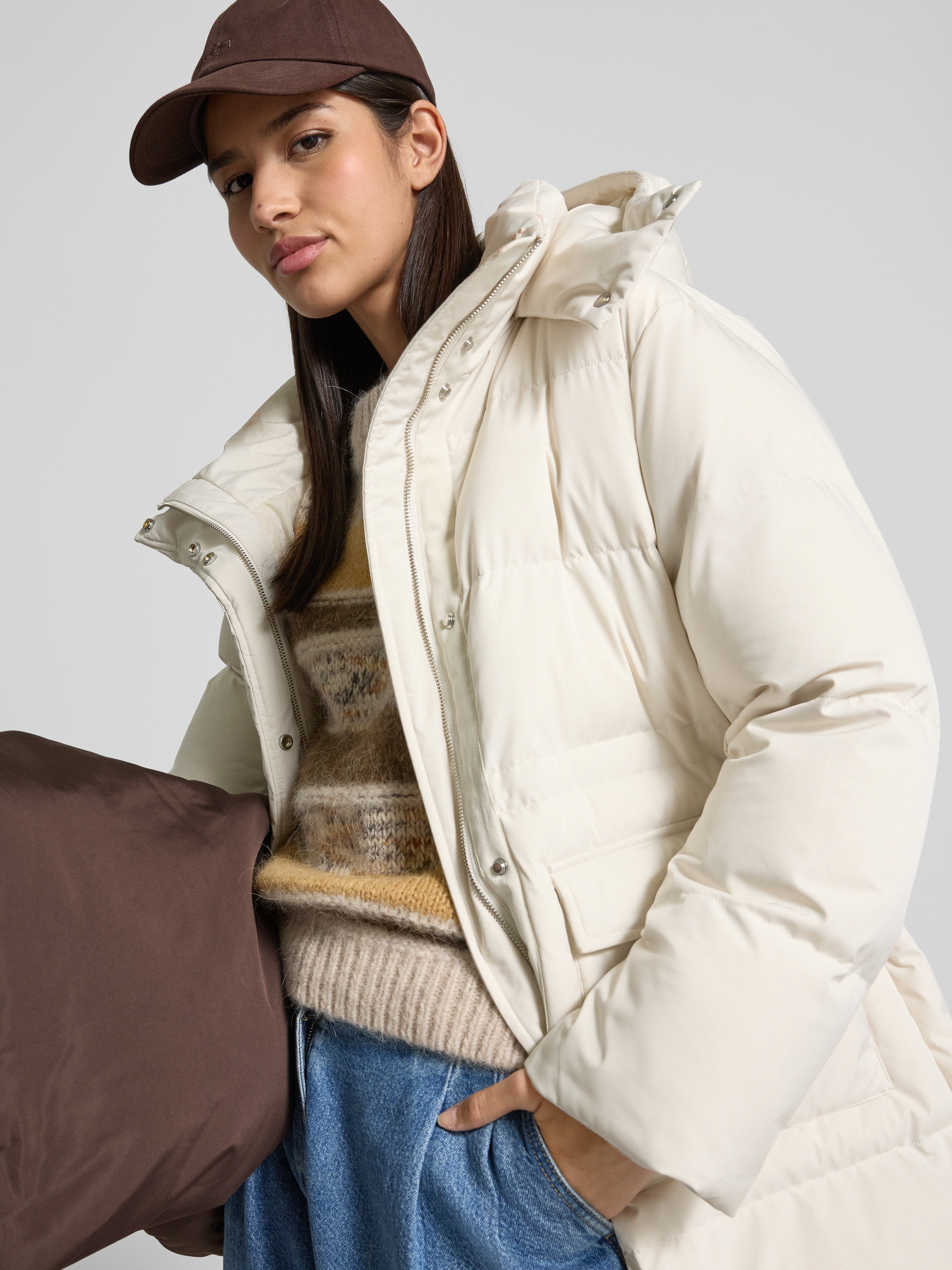 Płaszcz pikowany z kieszeniami z patką model ‘Hallusi’ - złamany biały