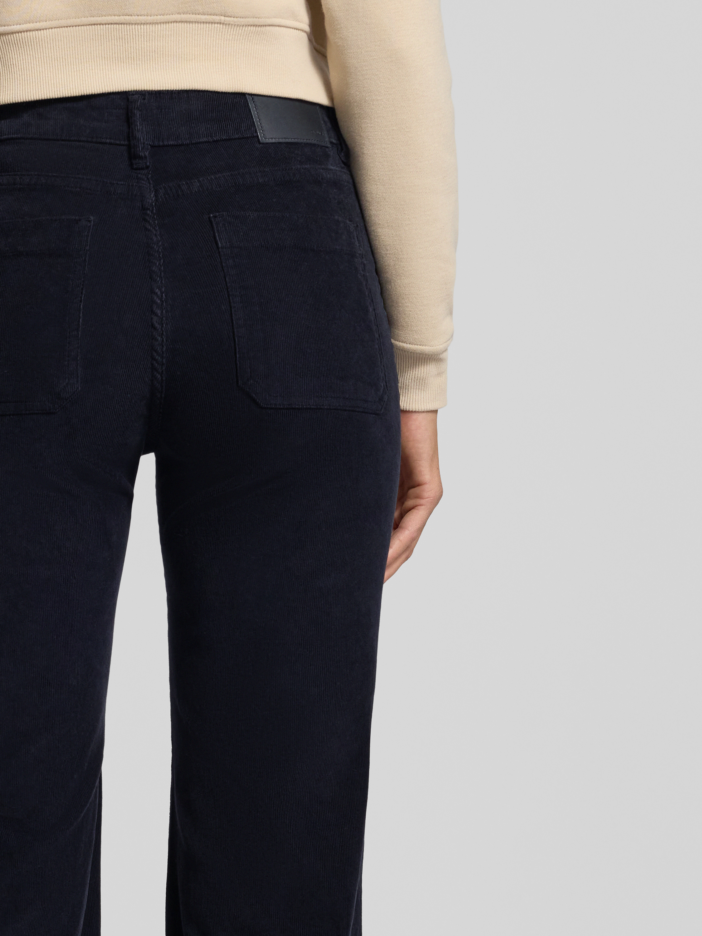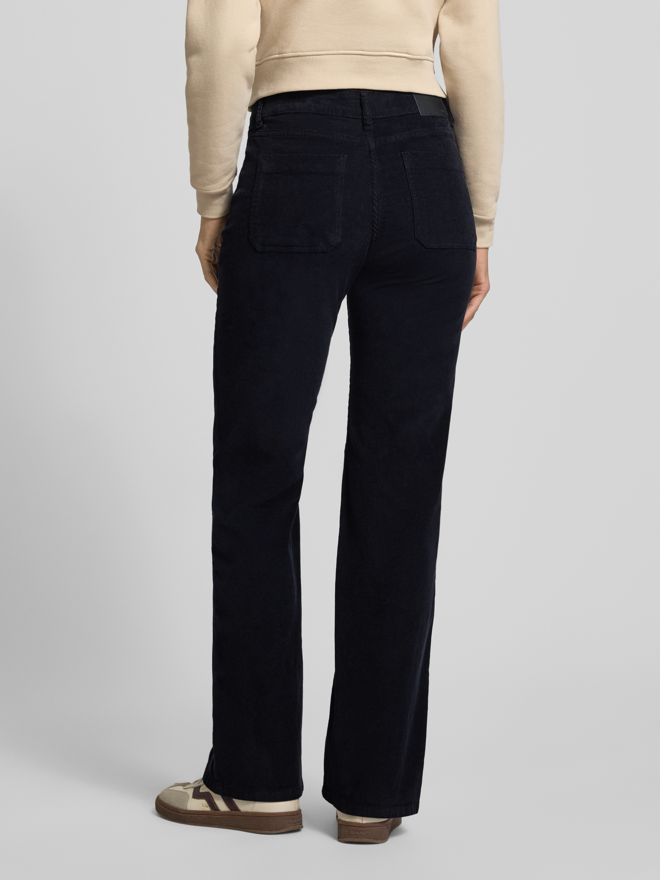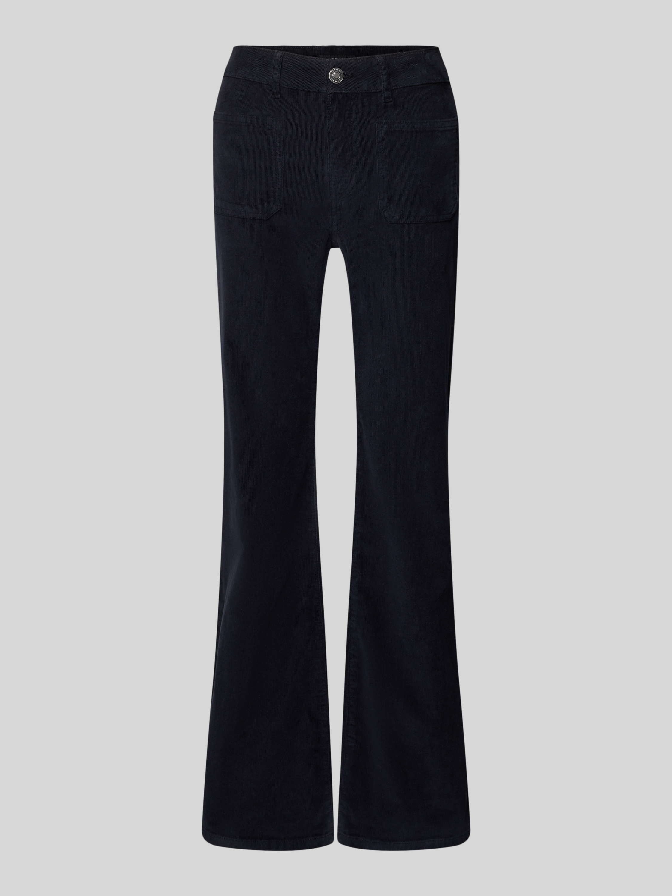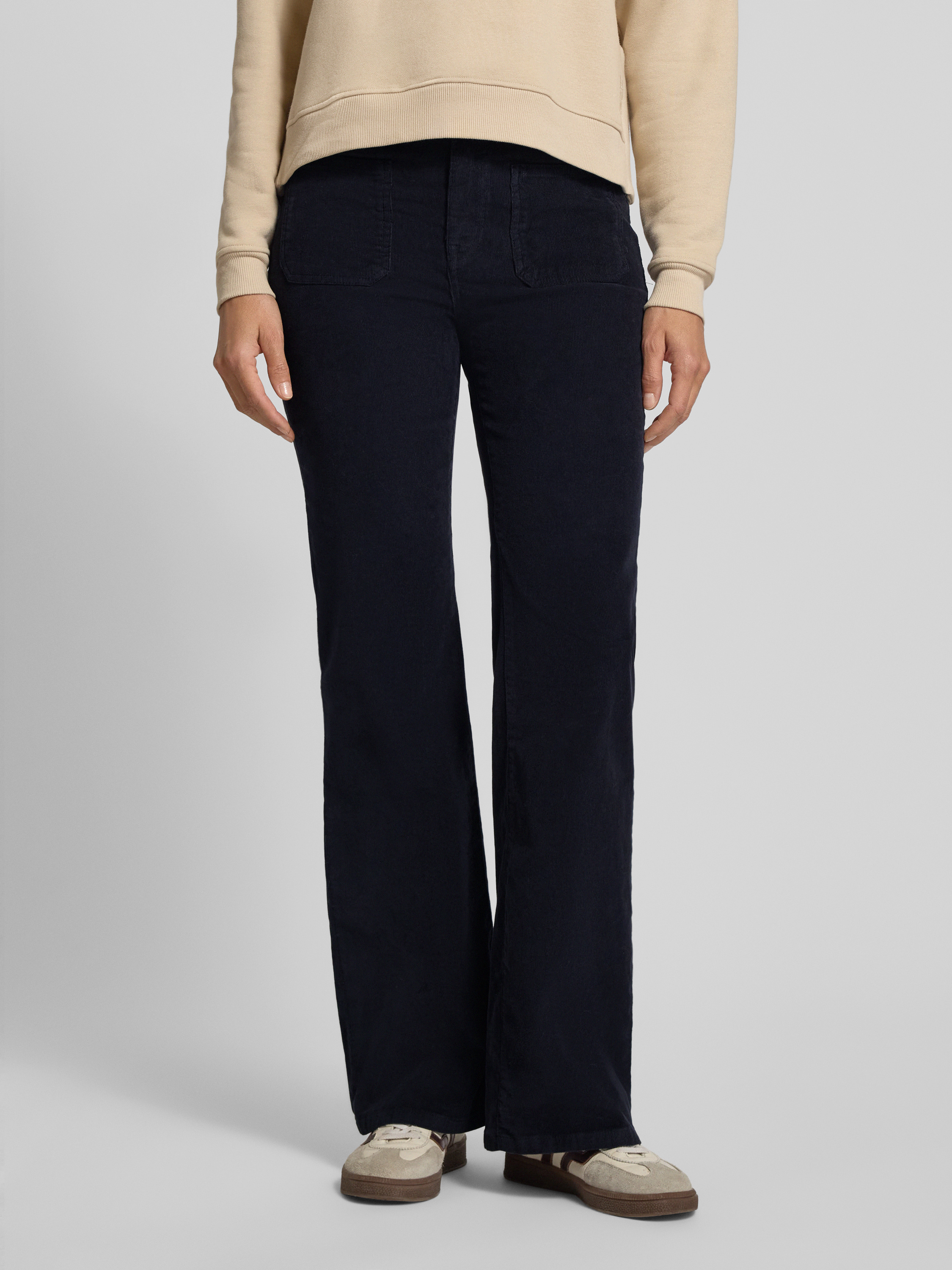 Spodnie o rozkloszowanym kroju z imitacji sztruksu model ‘Ebbi’ - ciemnoniebieski