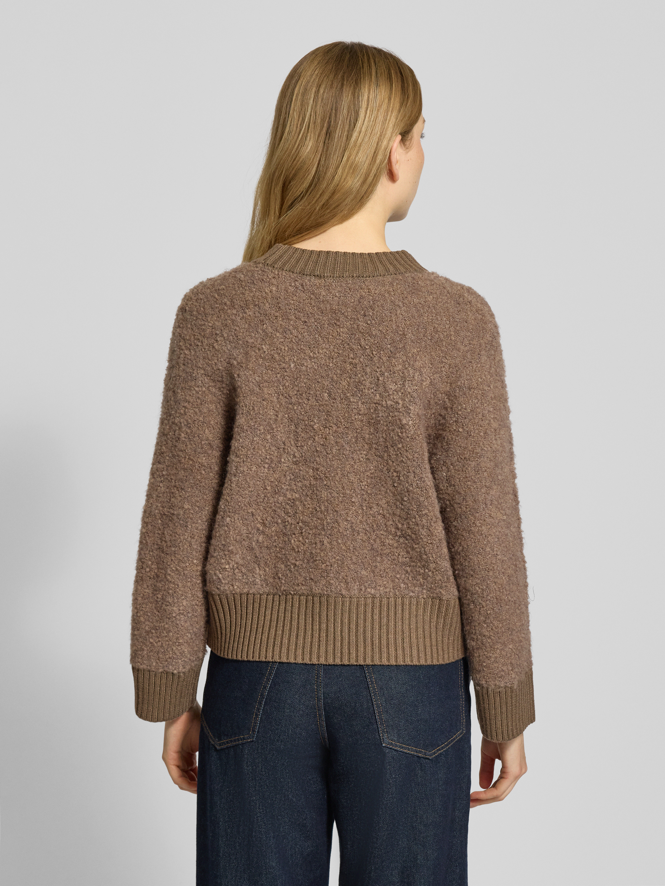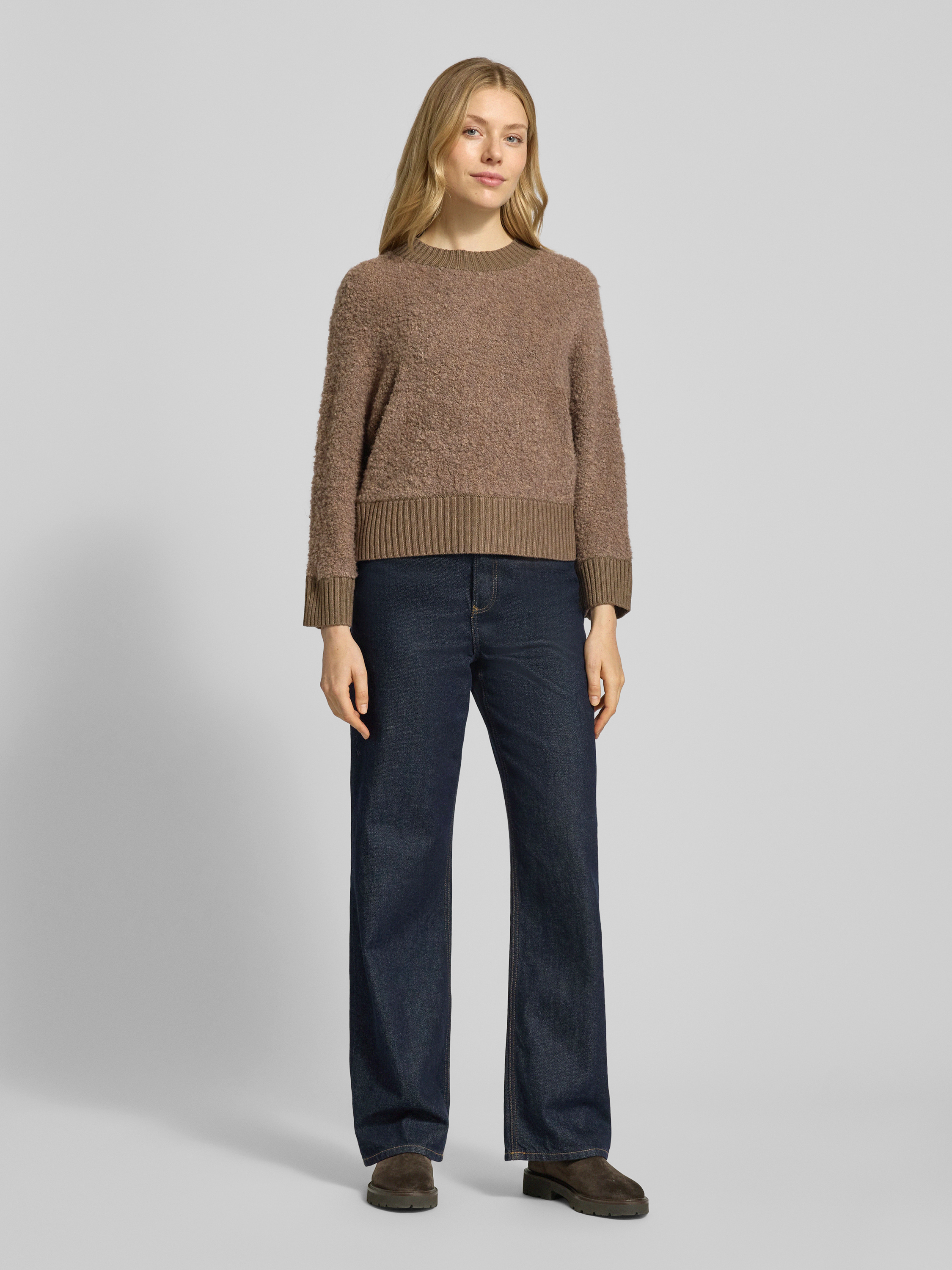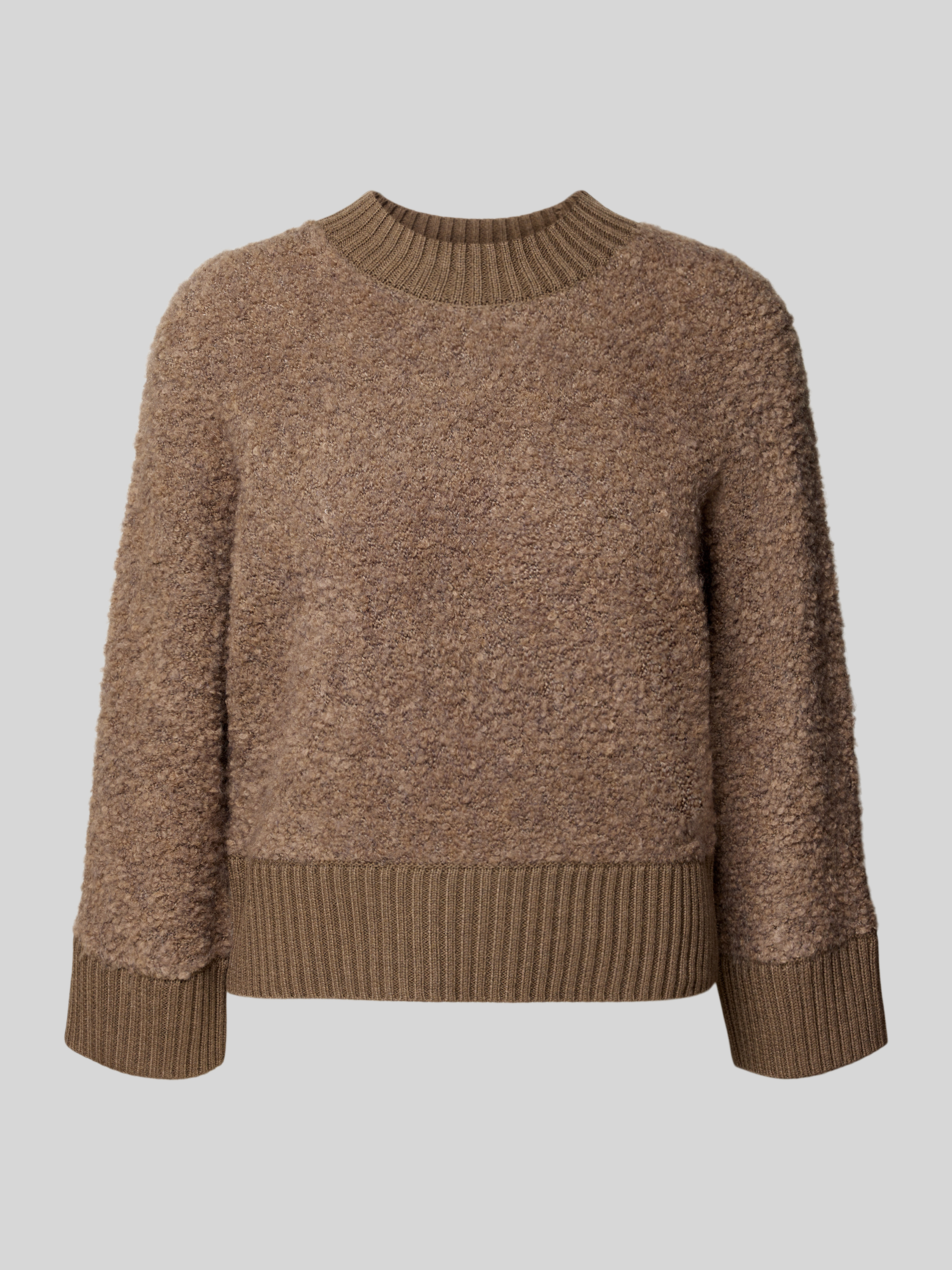 Sweter z dzianiny z prążkowanymi wykończeniami model ‘Pennan’ - średniobrązowy