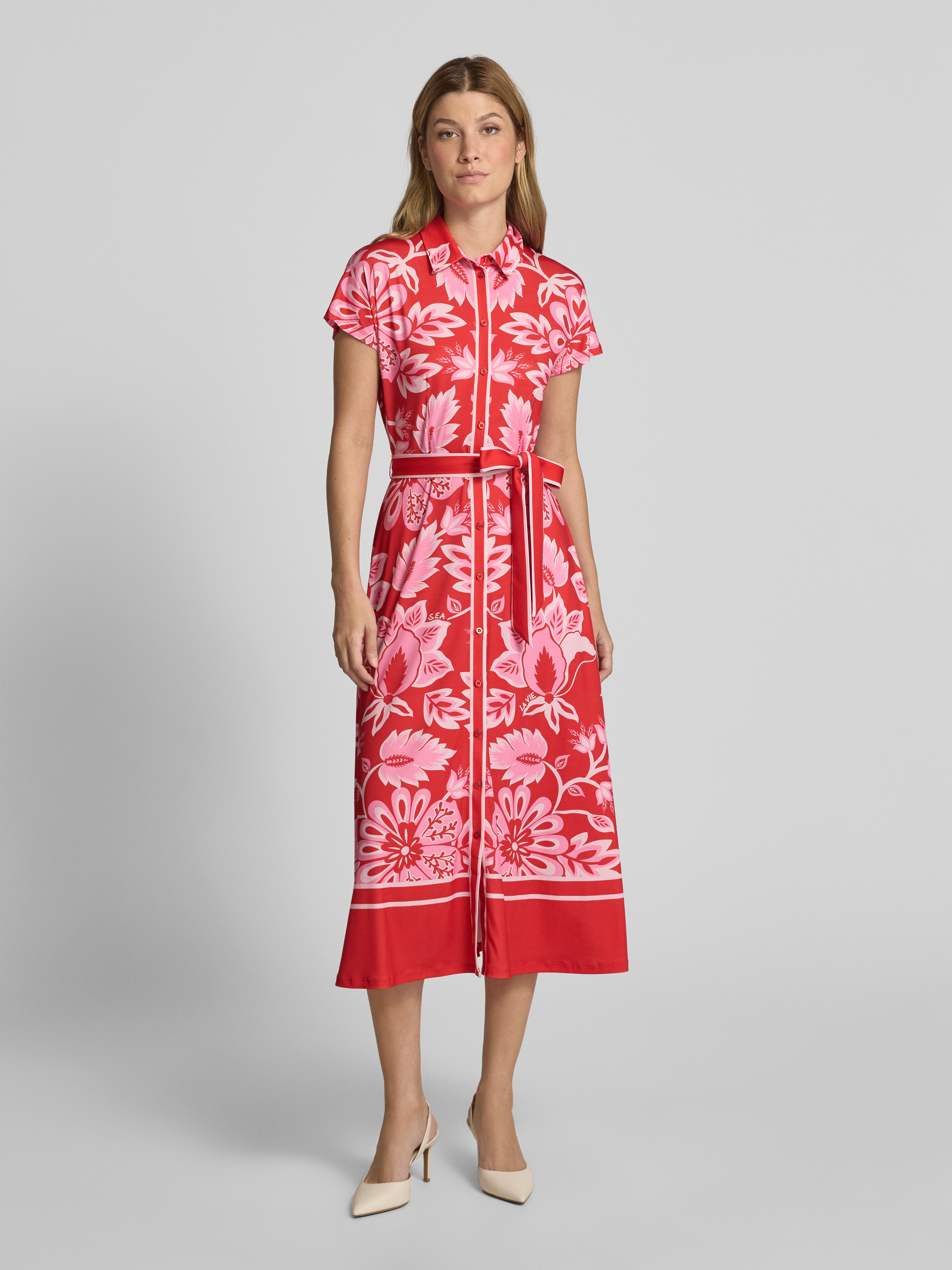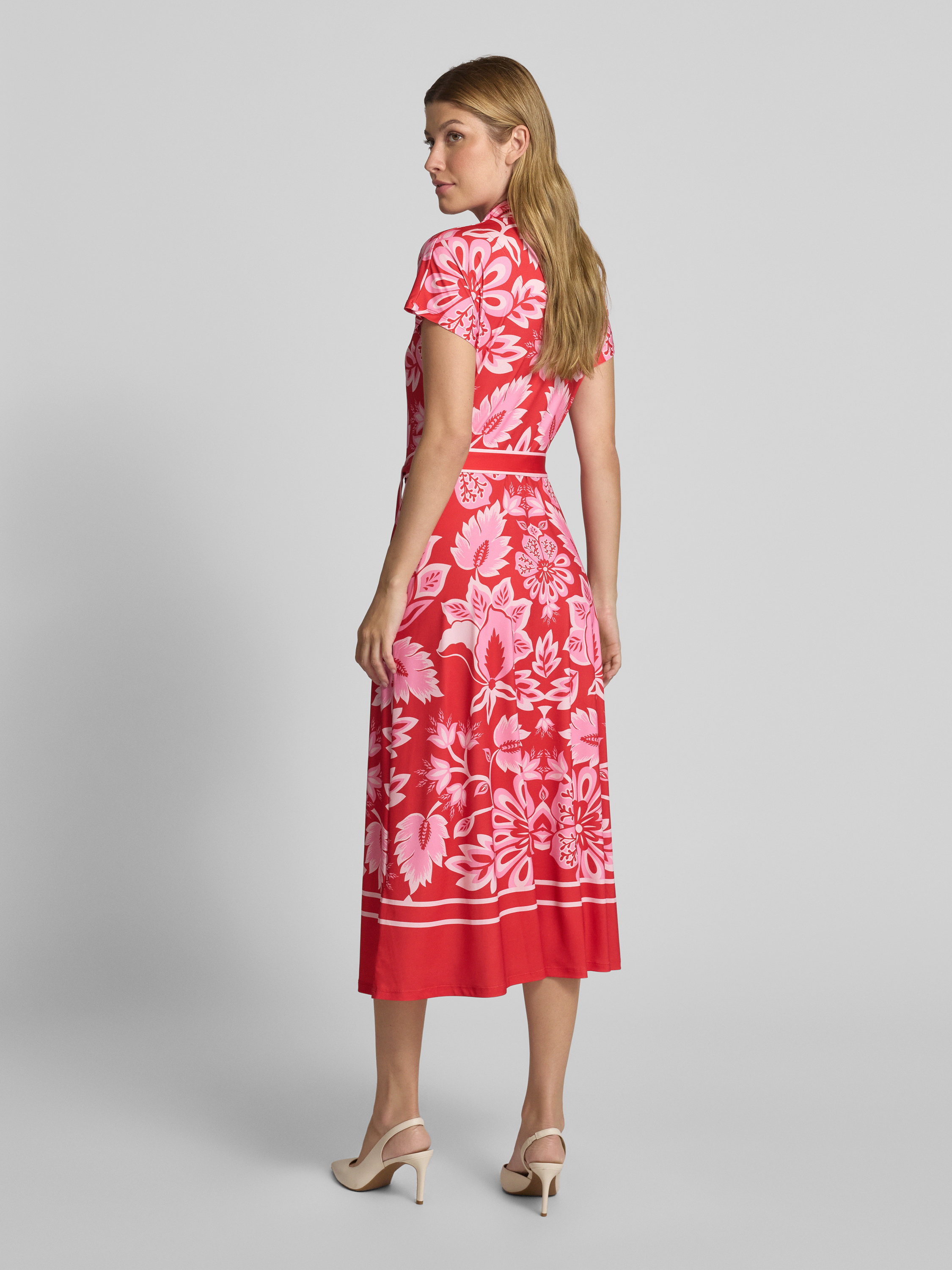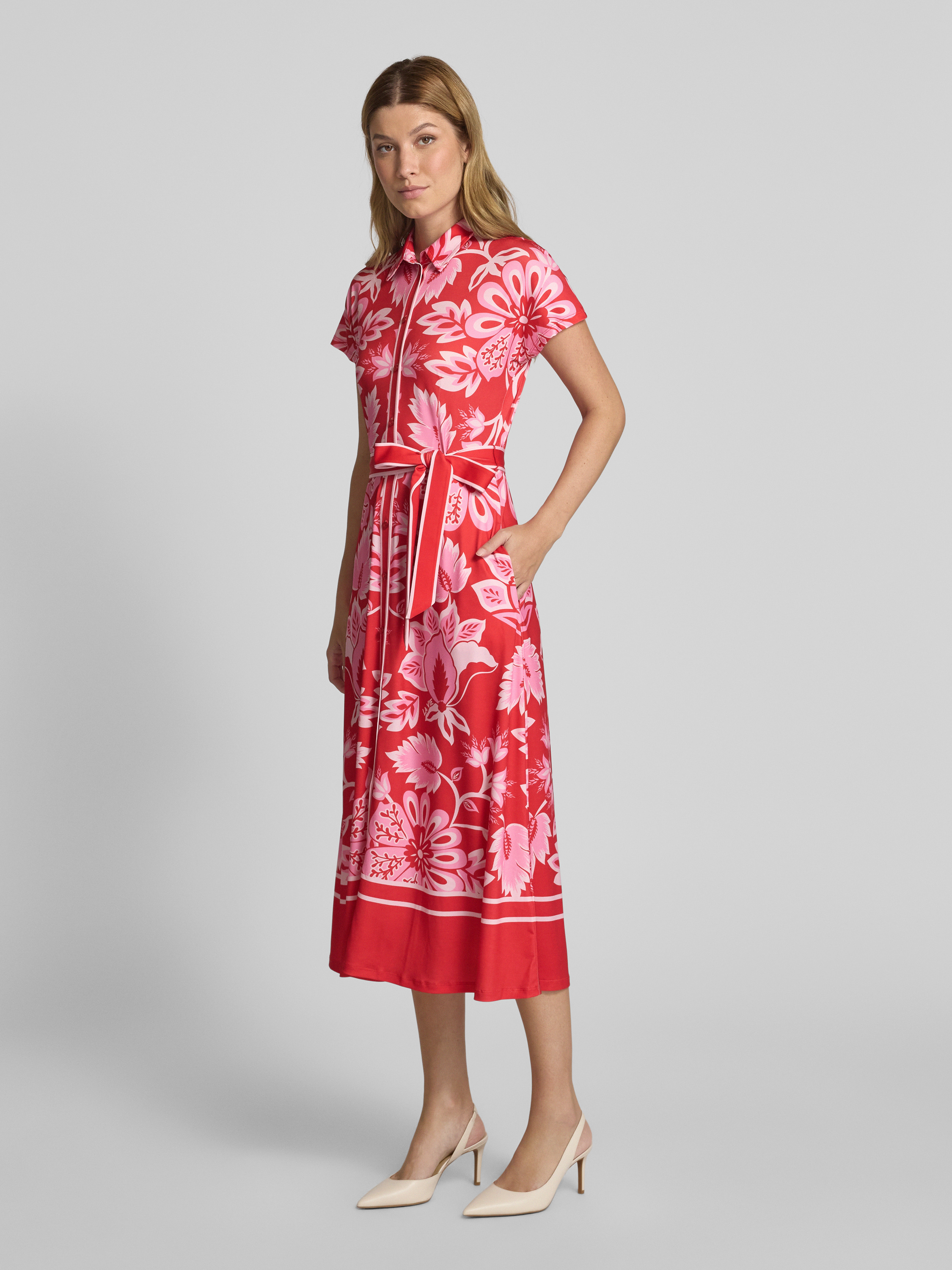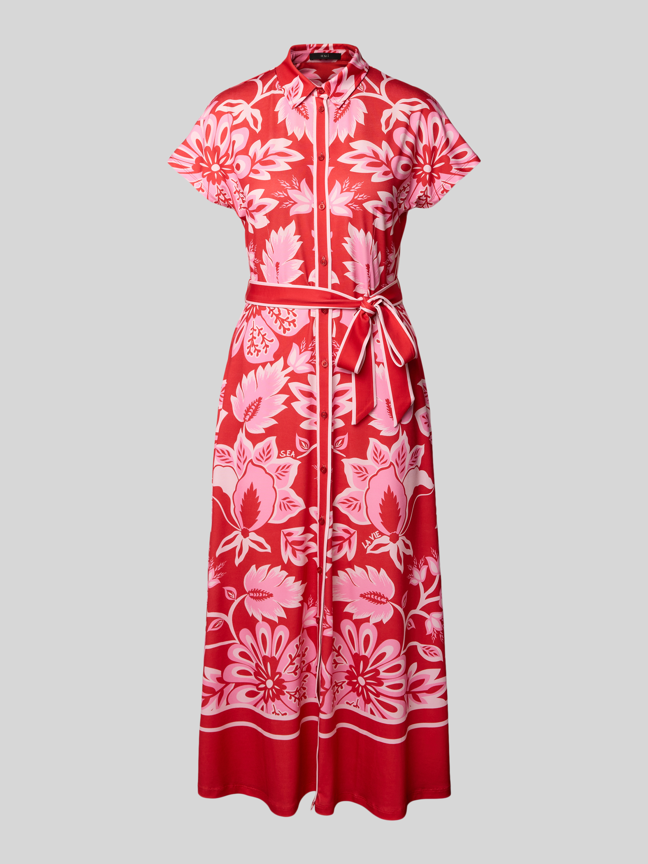 Długa sukienka z wiązanym paskiem - jasnoczerwony