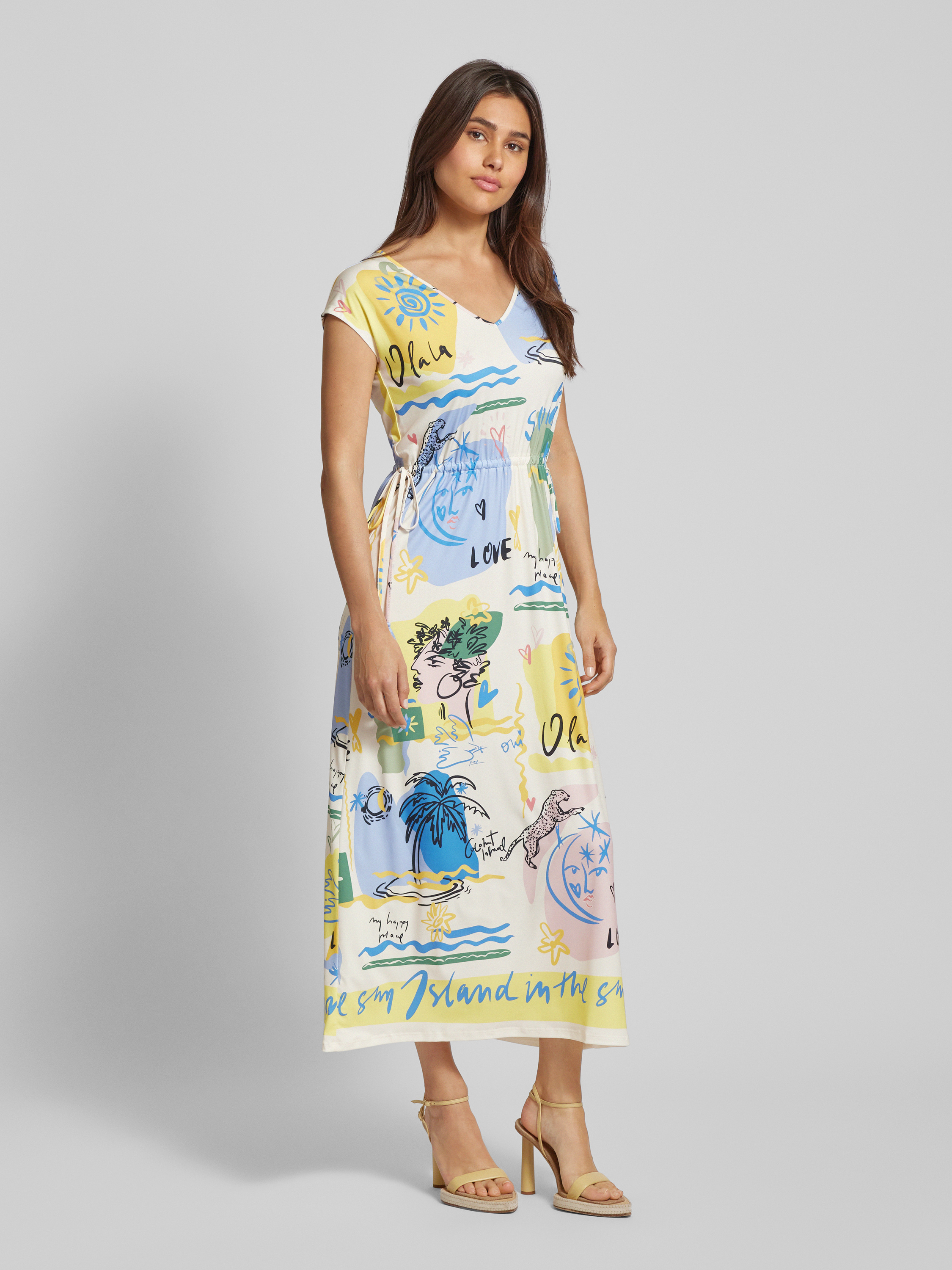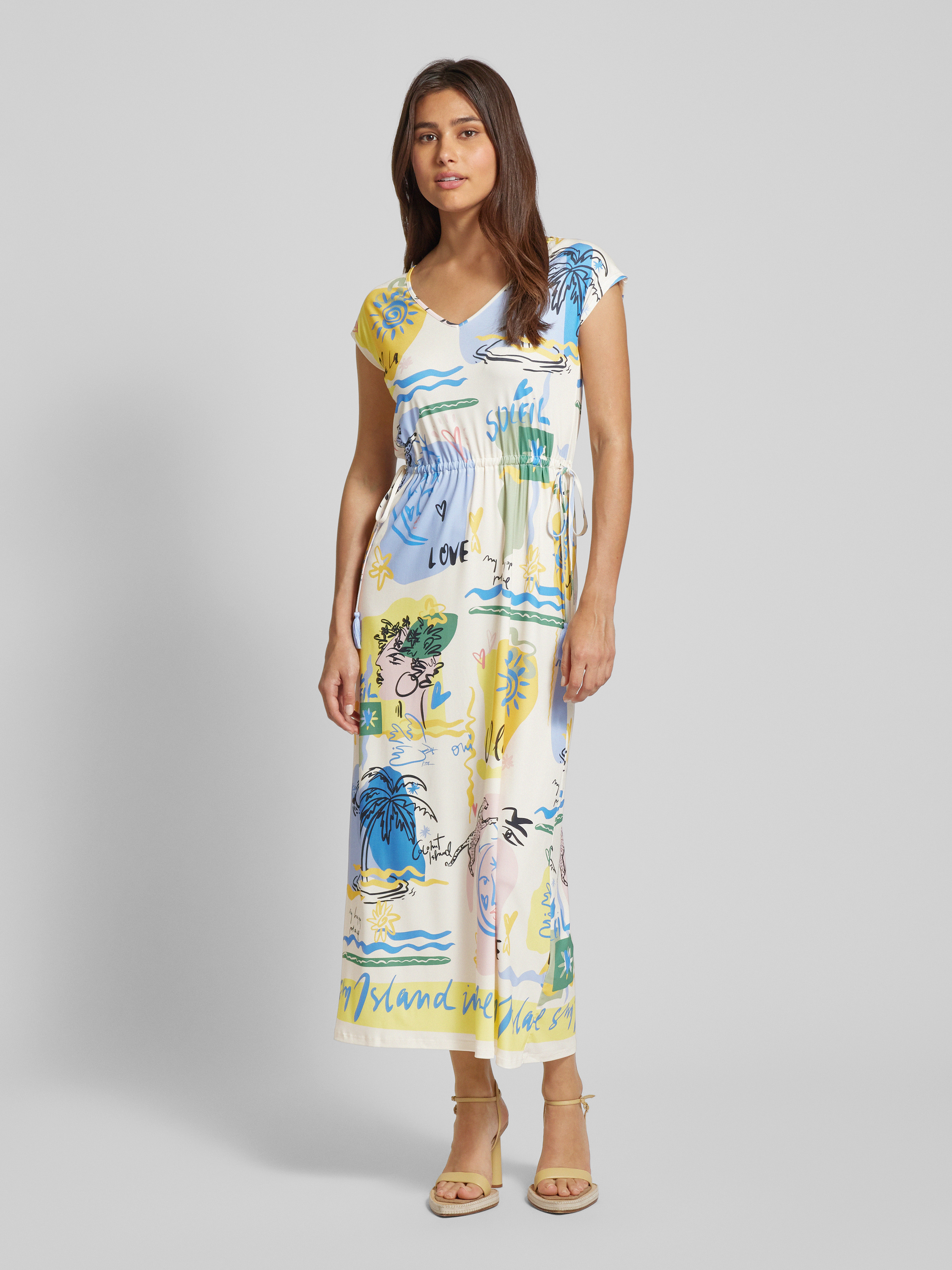 Długa sukienka ze wzorem na całej powierzchni - biały
