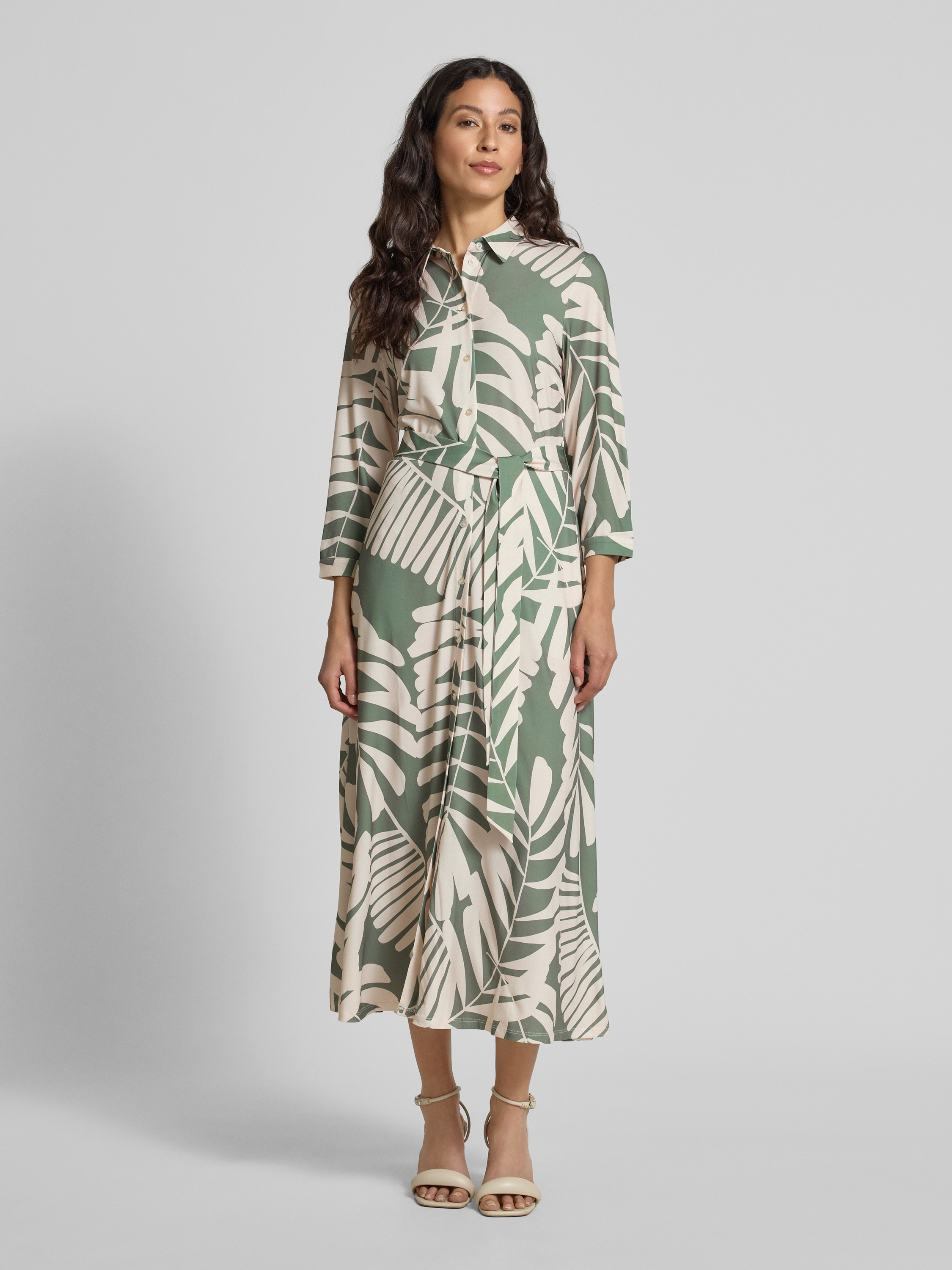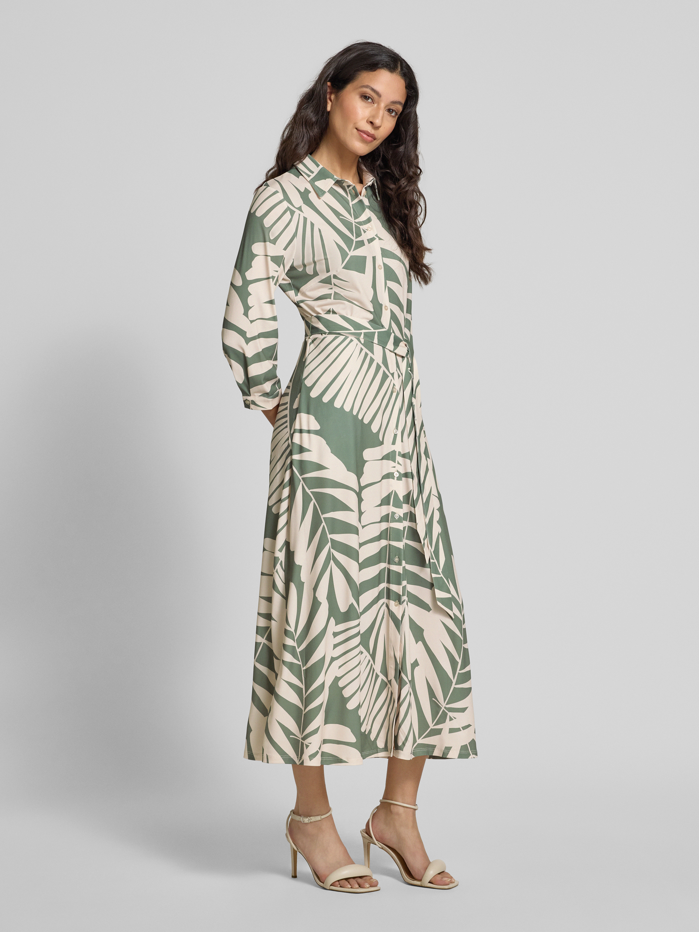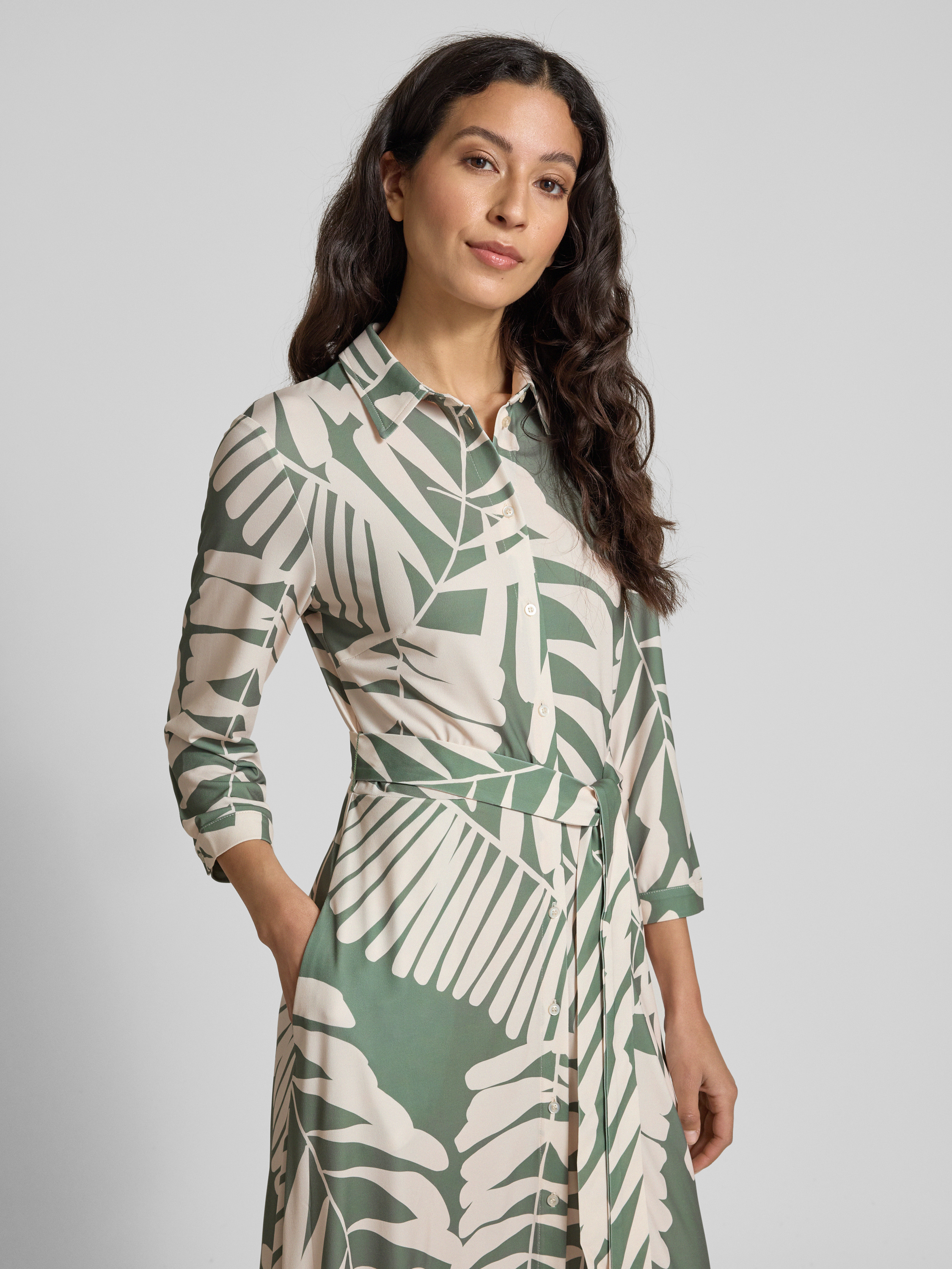 Sukienka koszulowa z wiązanym paskiem - khaki