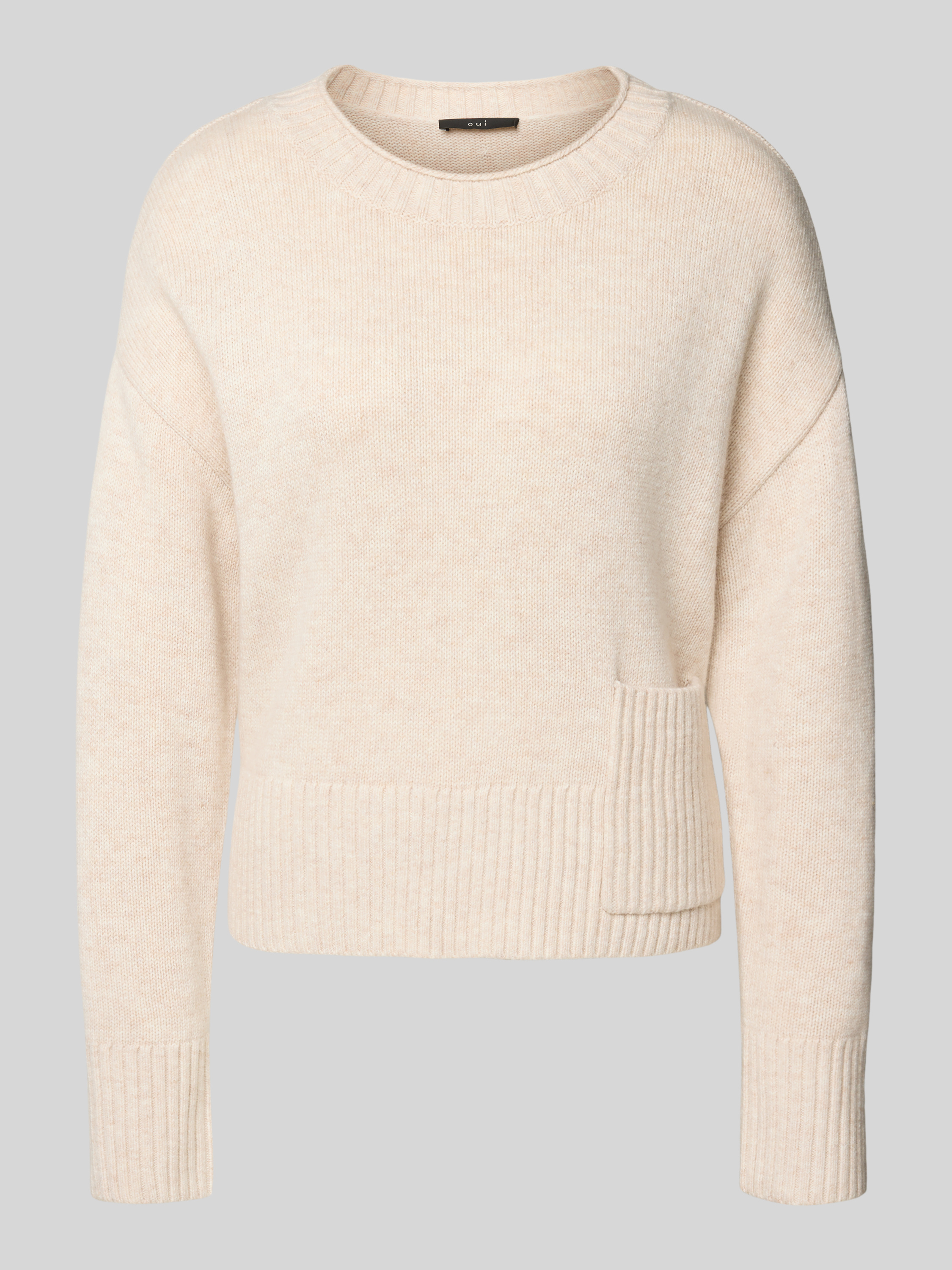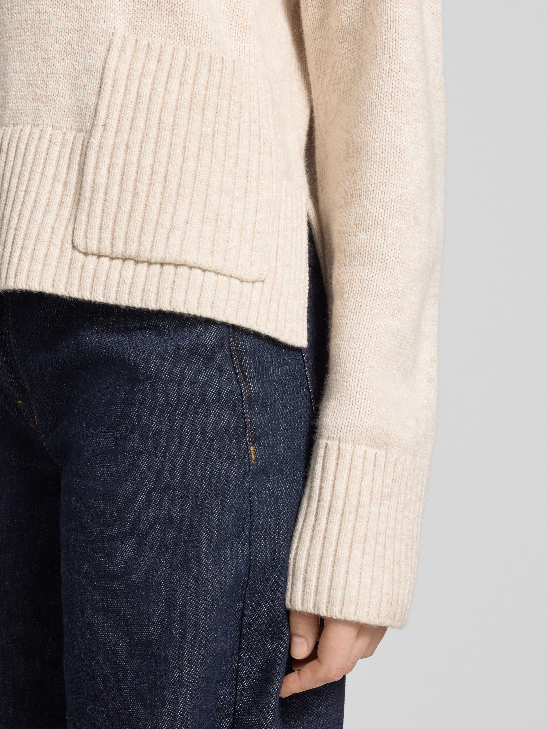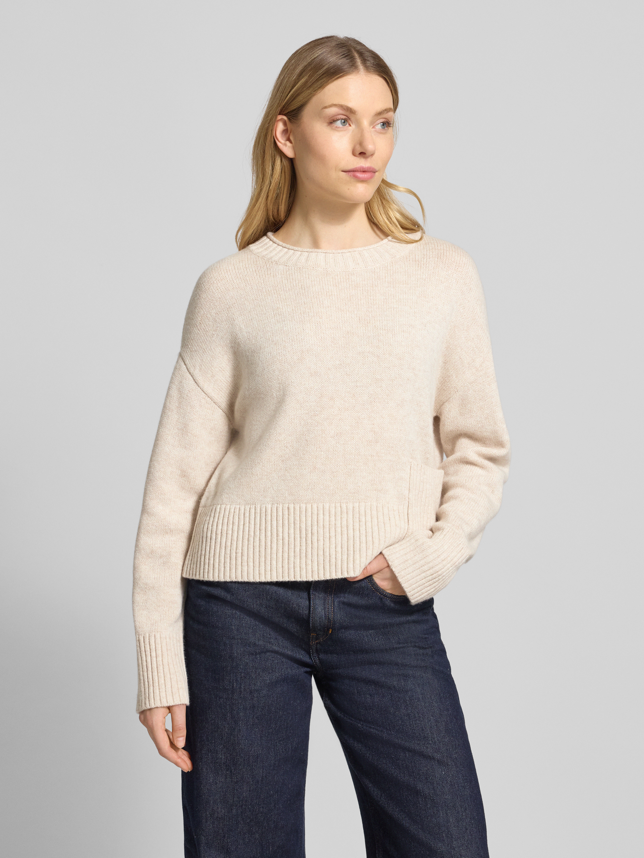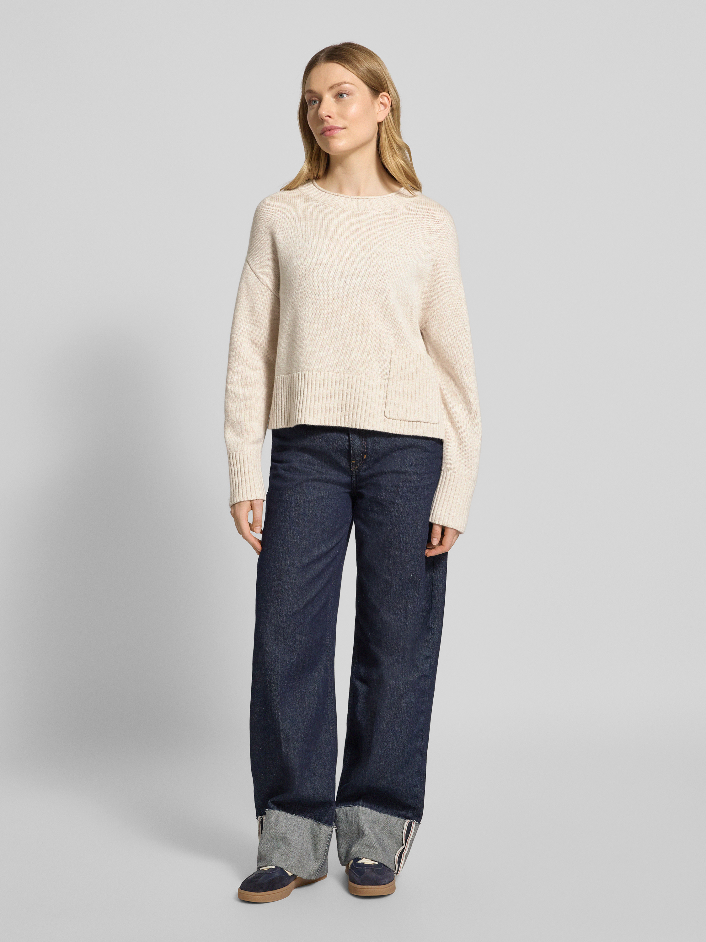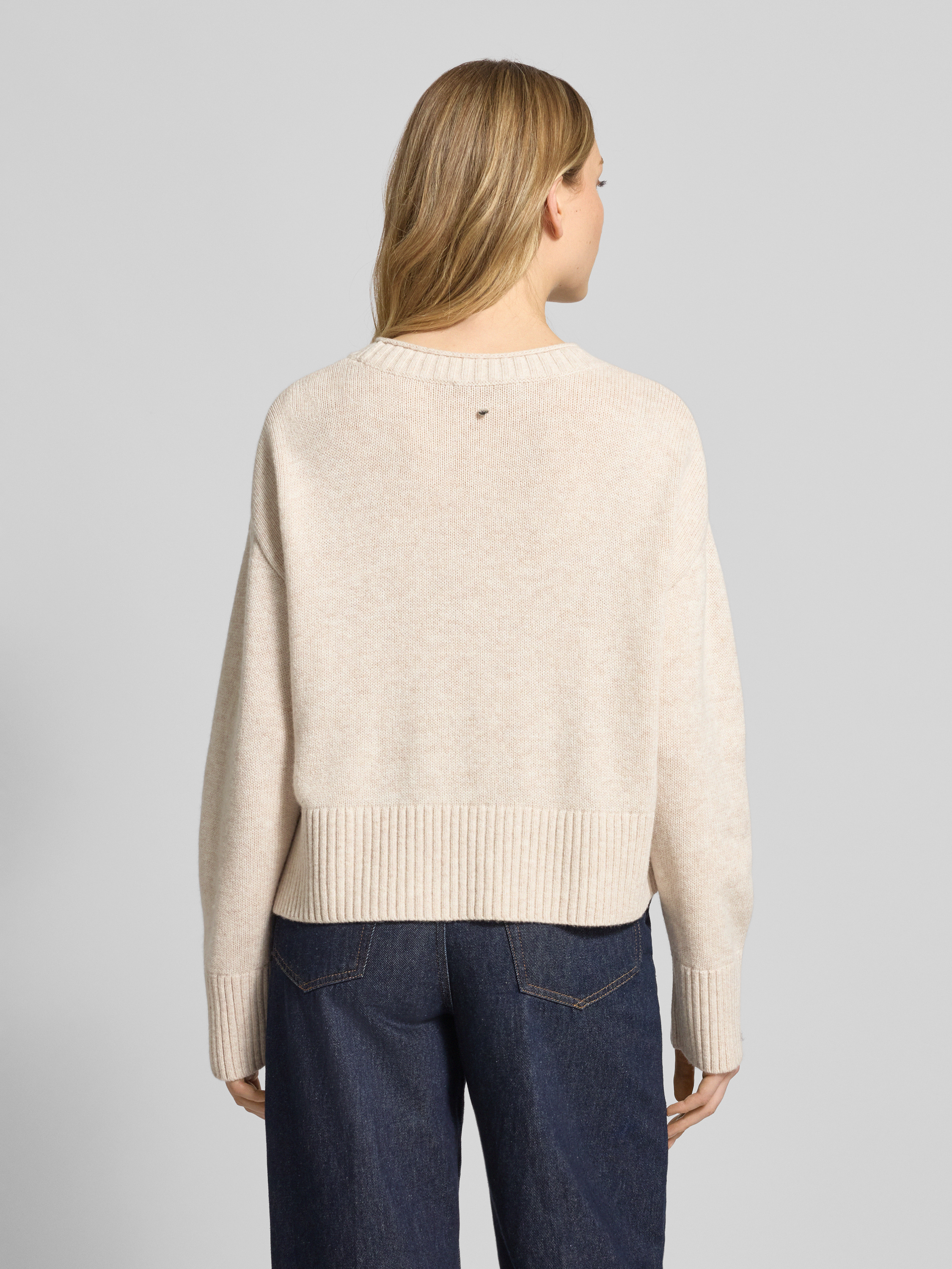 Sweter wełniany z okrągłym dekoltem - beżowy melanż