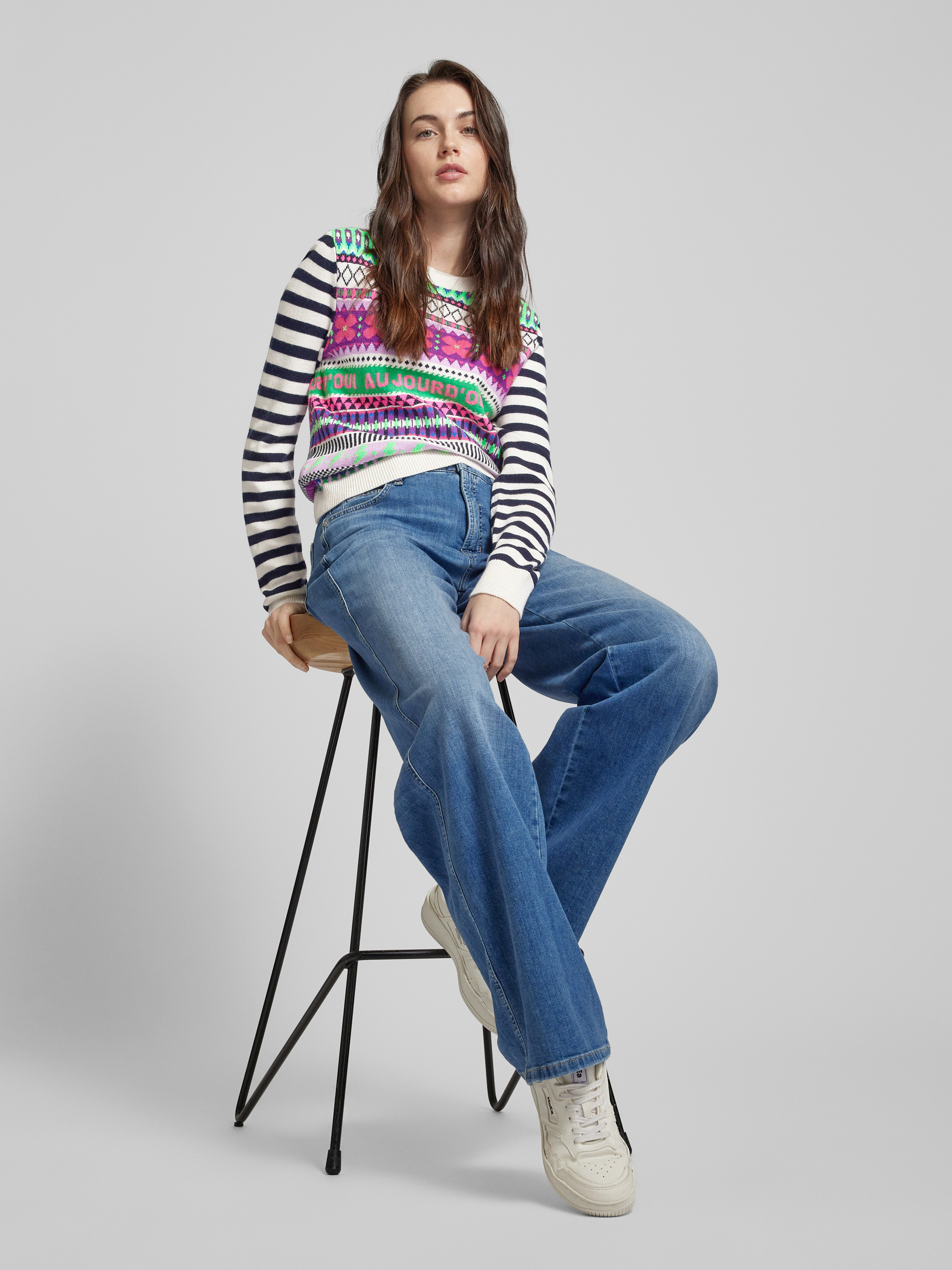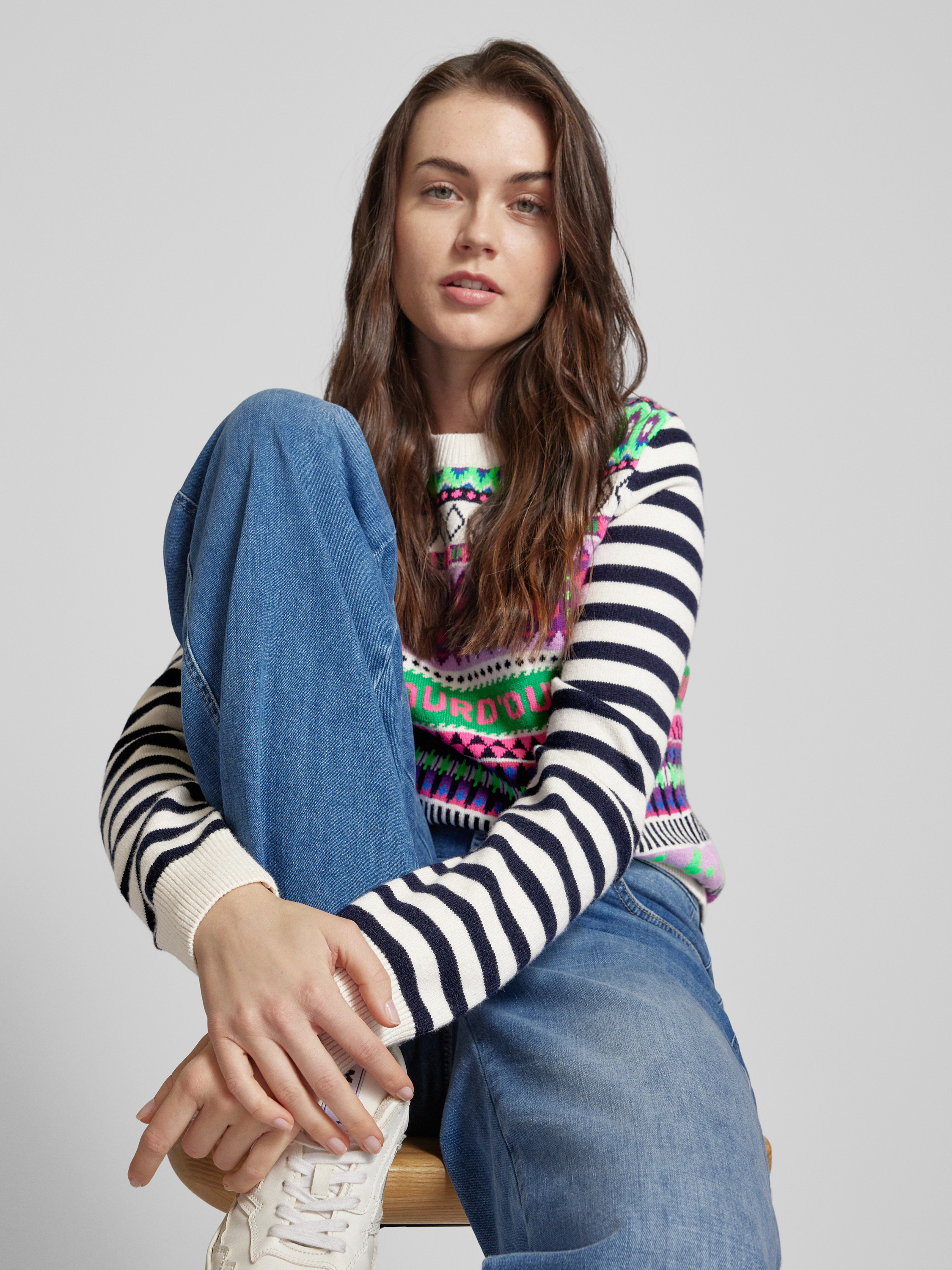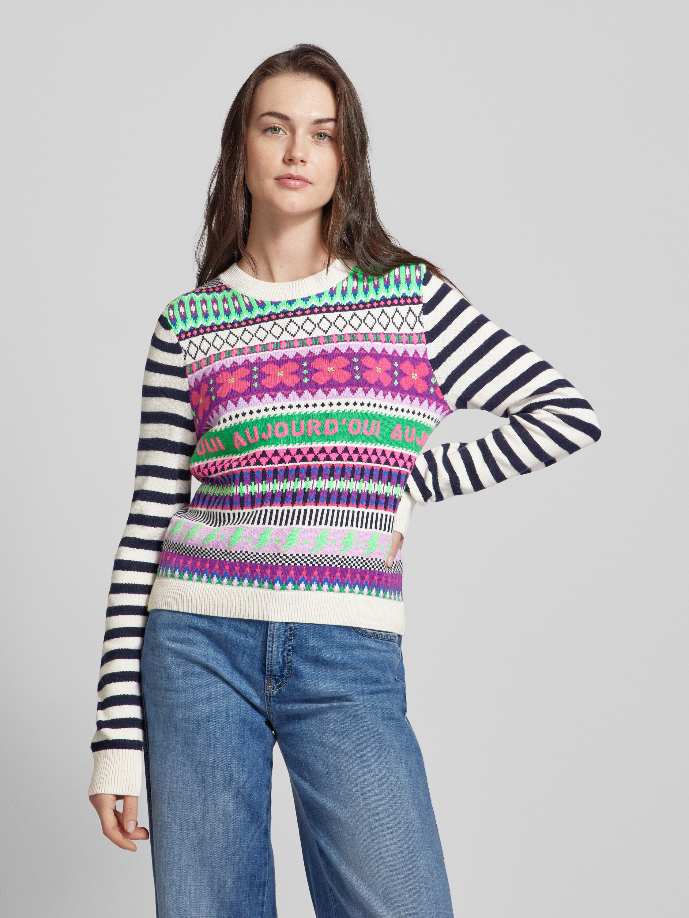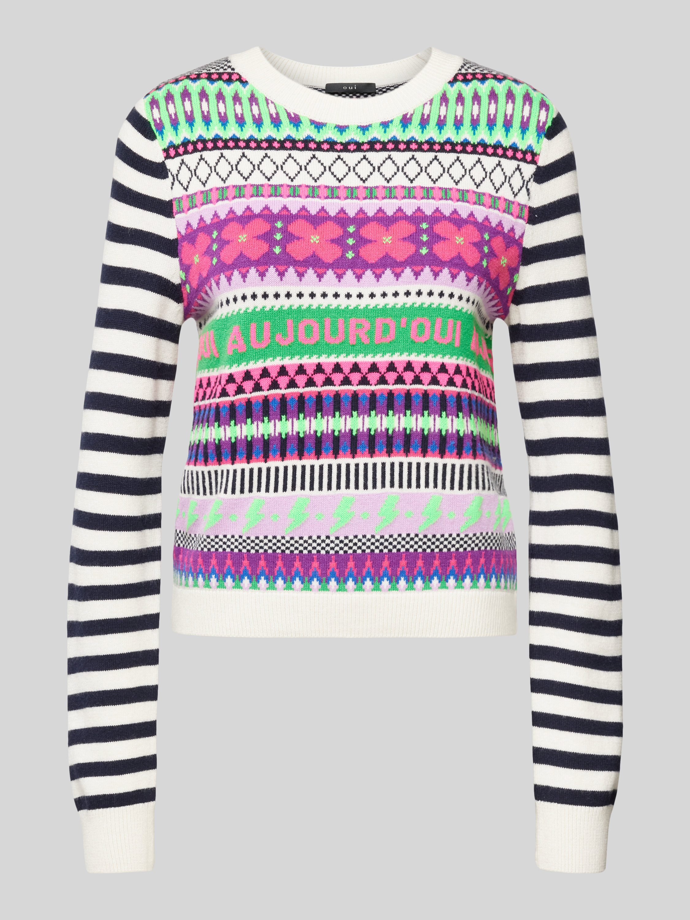 Sweter z dzianiny z okrągłym dekoltem - fioletowy