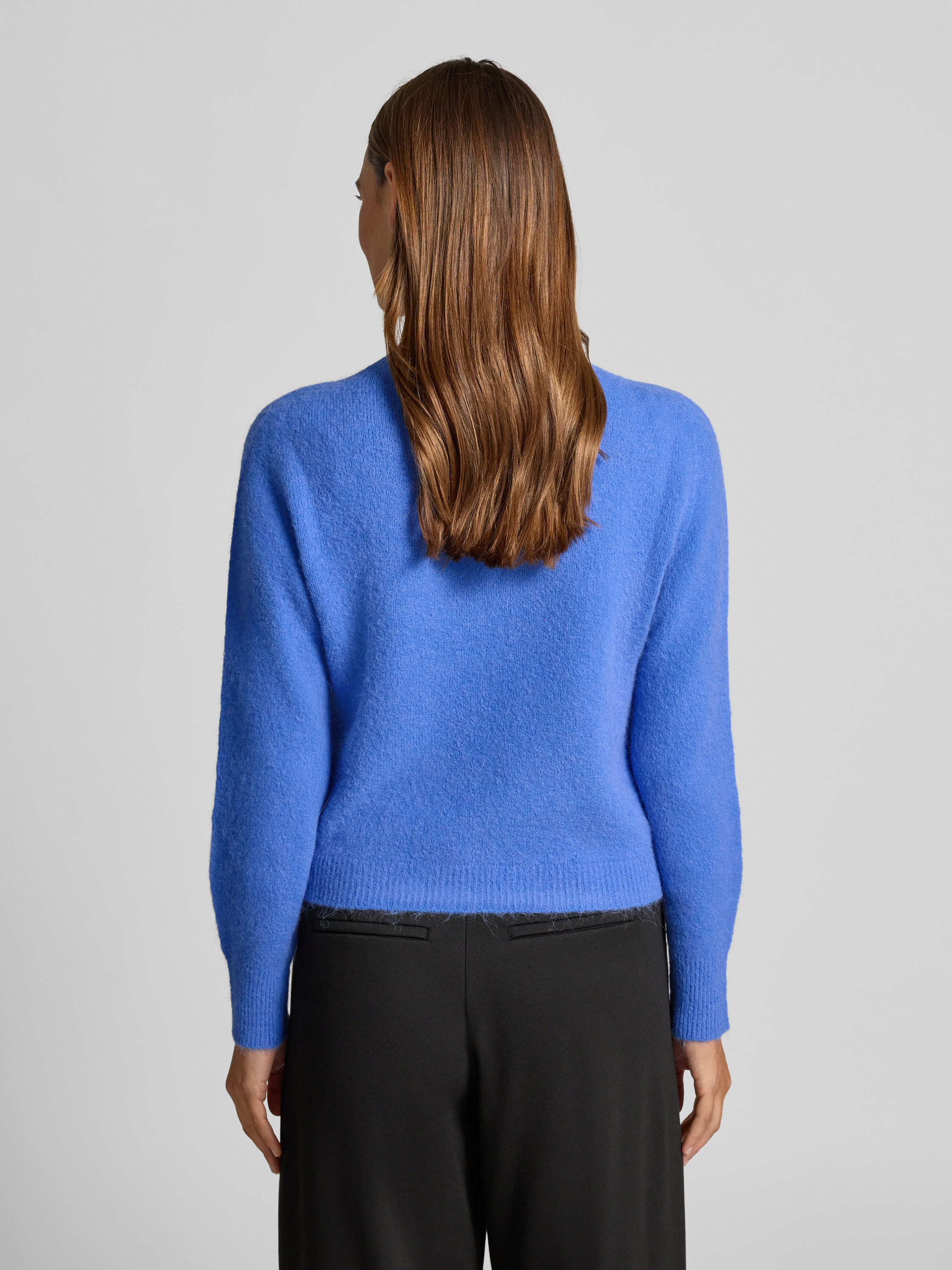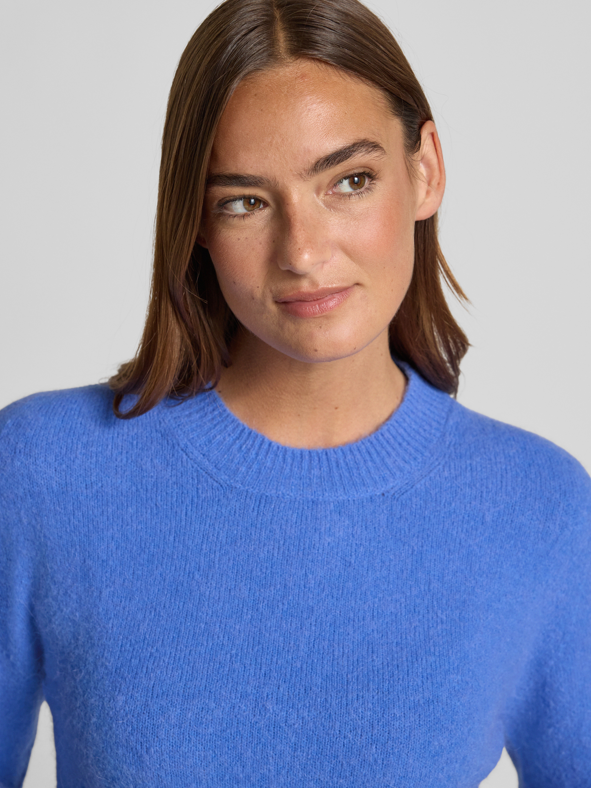 Sweter z dzianiny z okrągłym dekoltem - jasnoniebieski