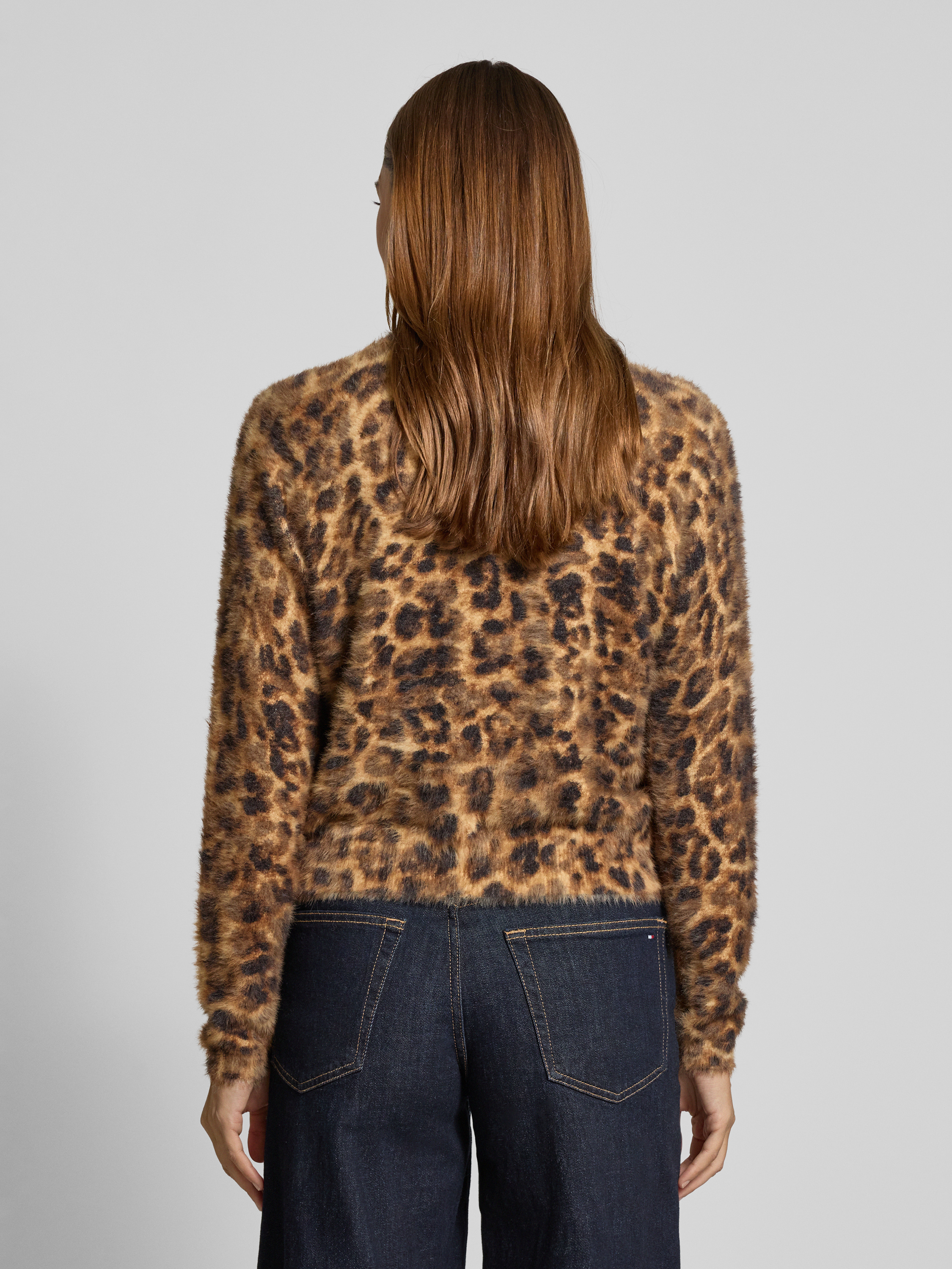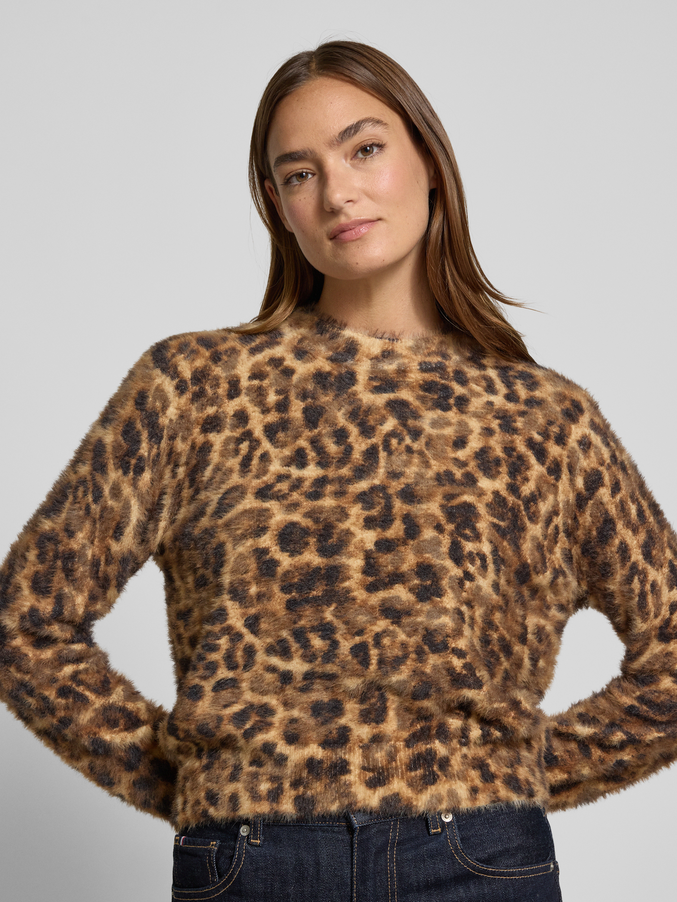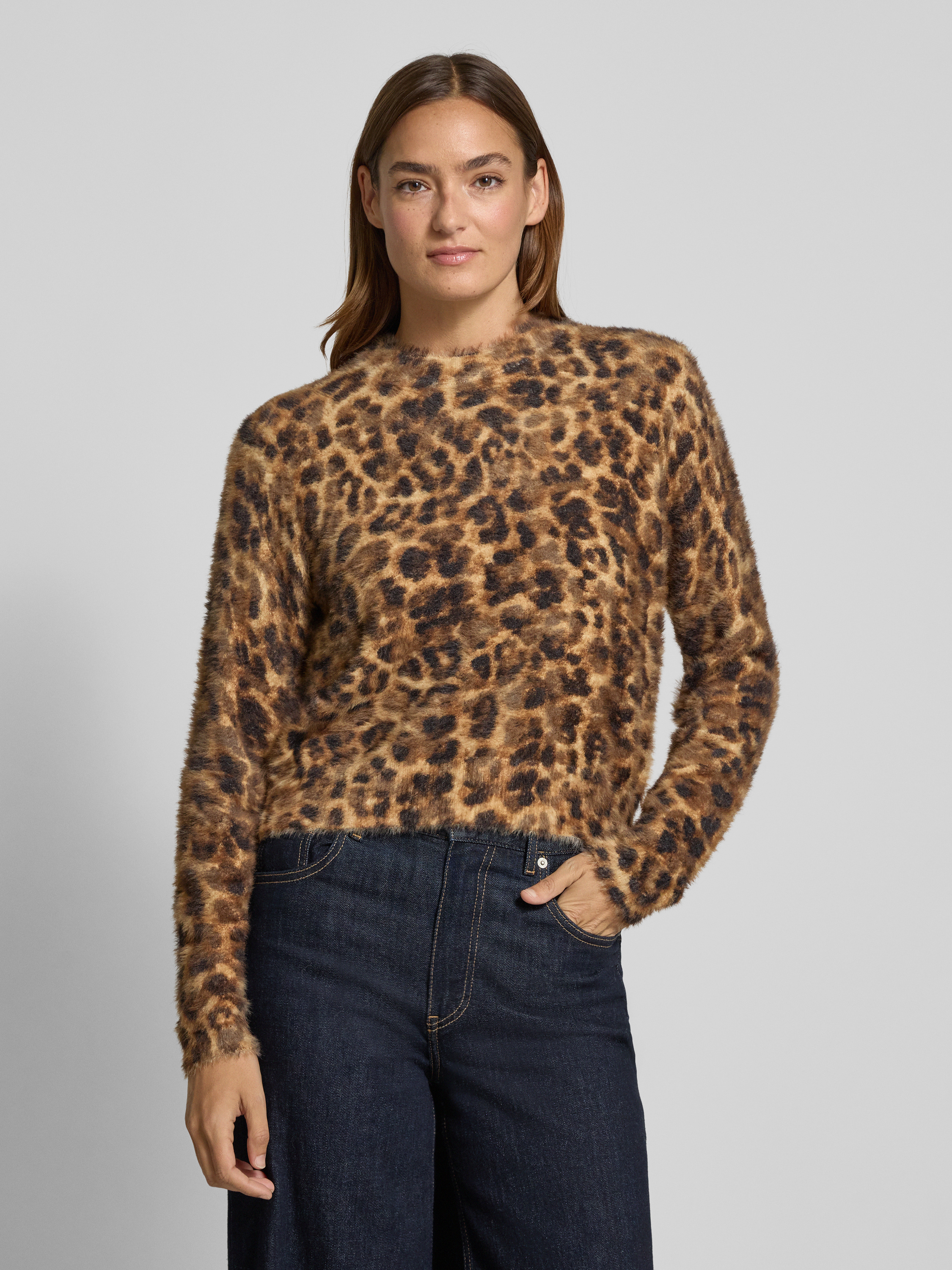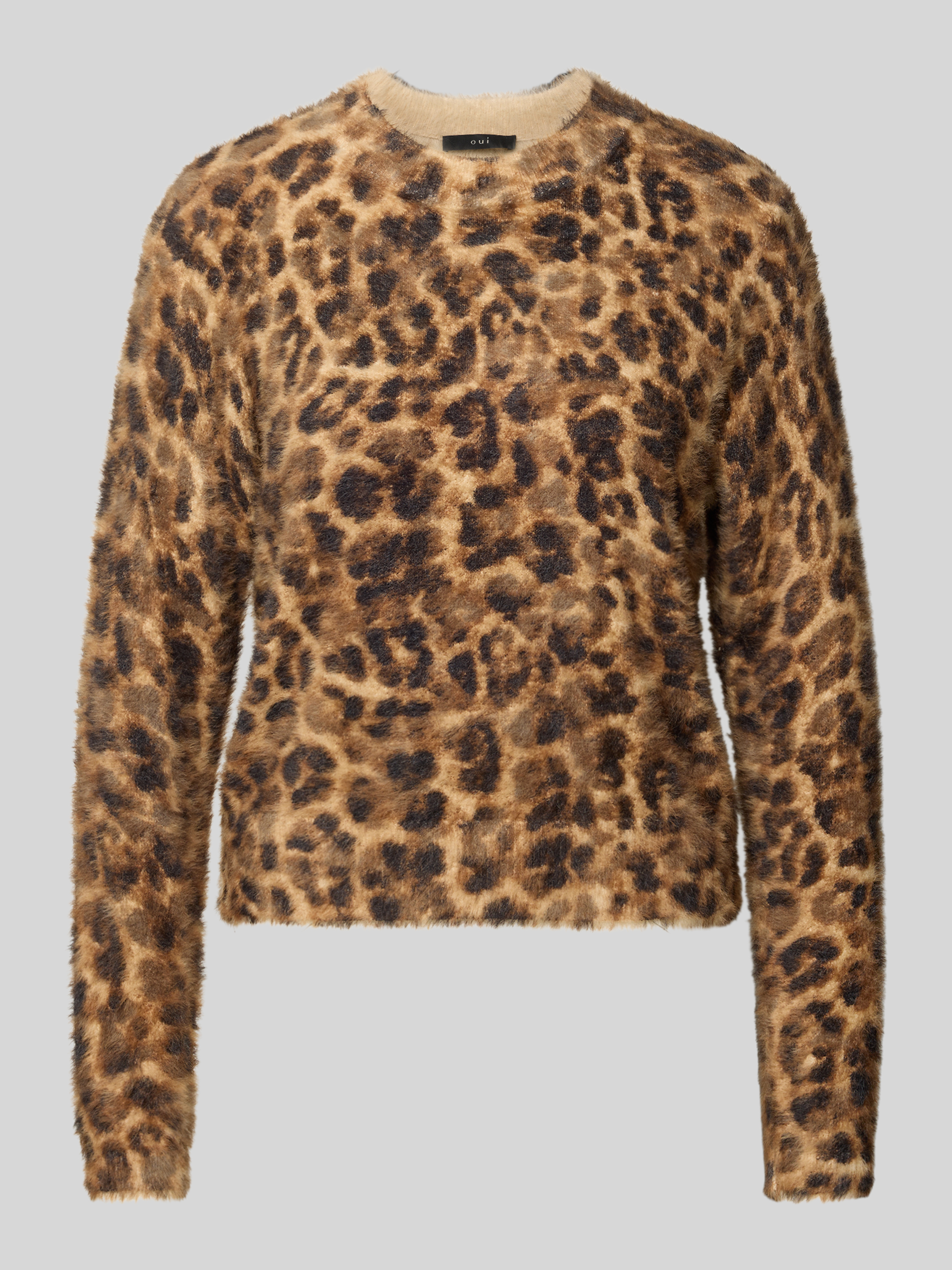 Sweter z dzianiny z prążkowanymi wykończeniami - camel