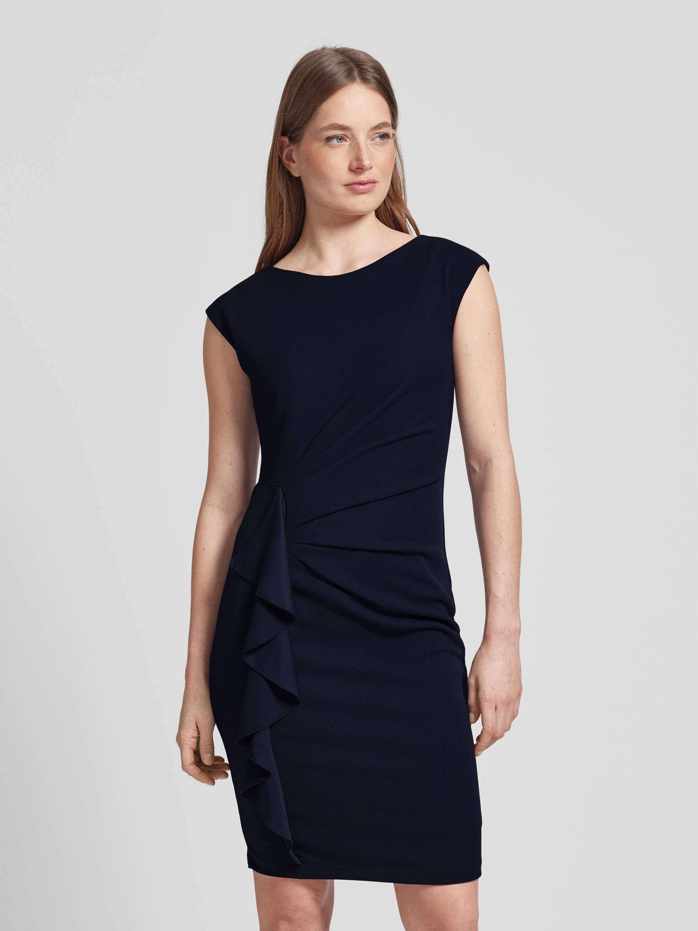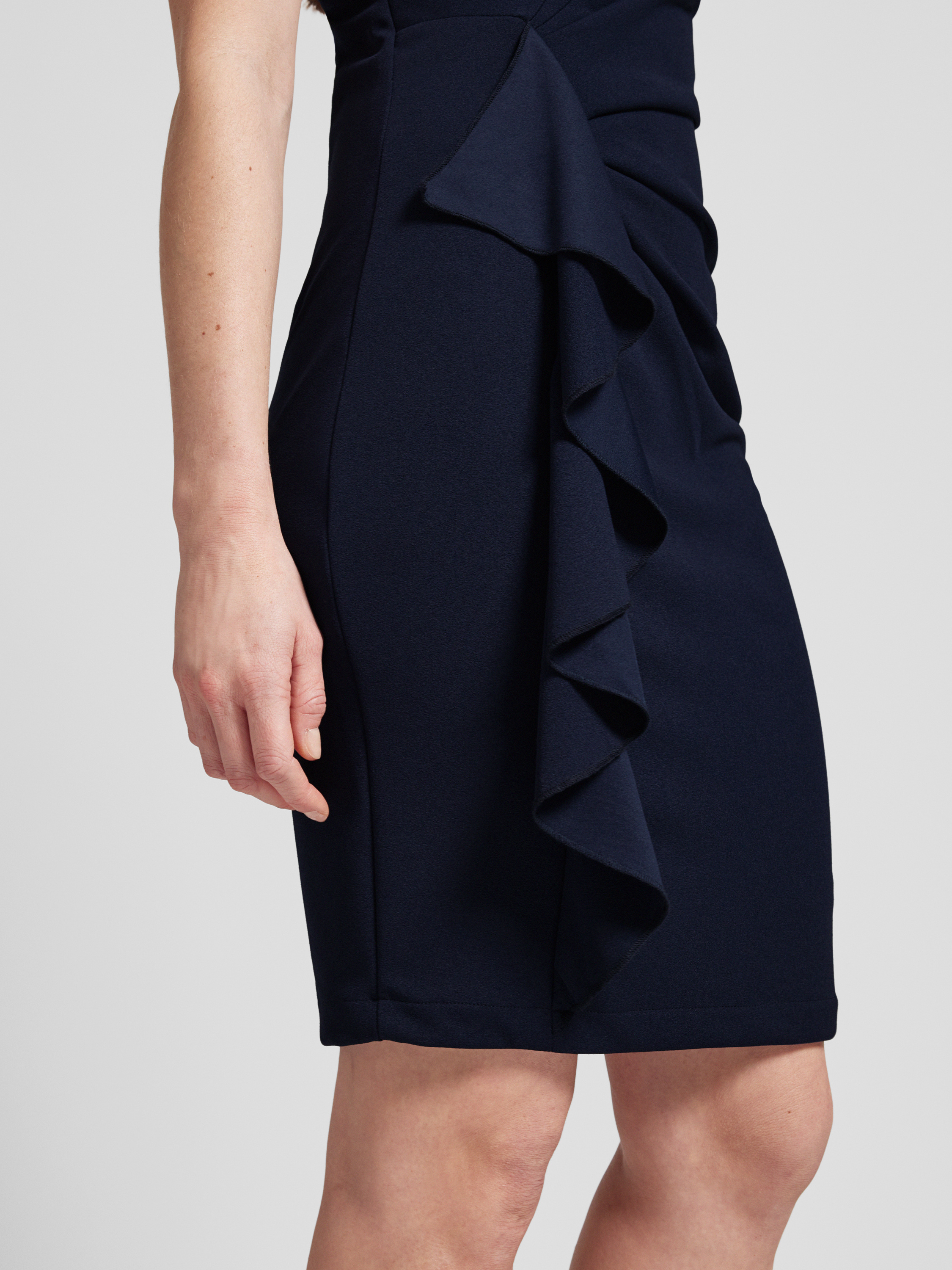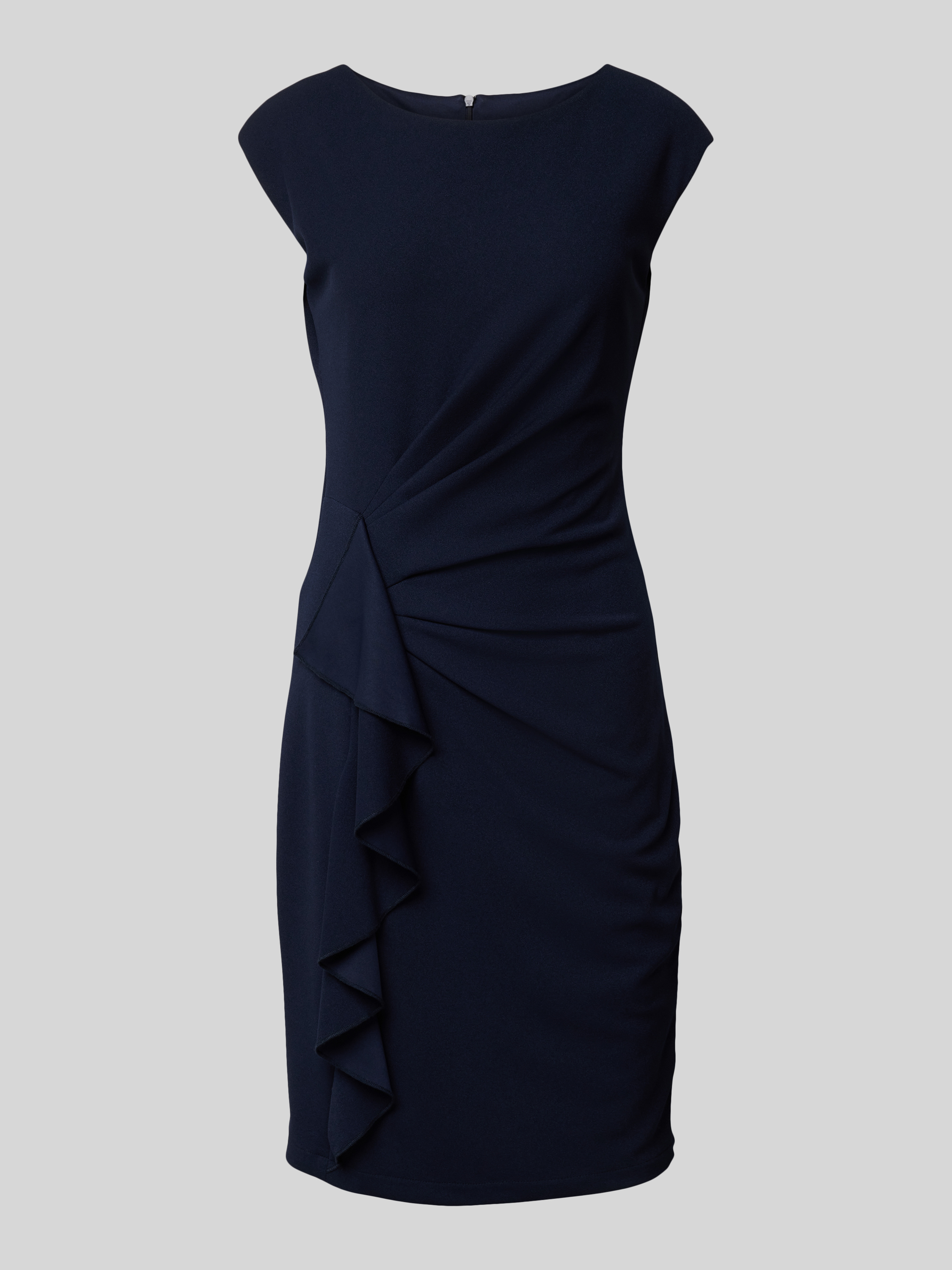 Sukienka koktajlowa z krepy z drapowaniem - ciemnoniebieski