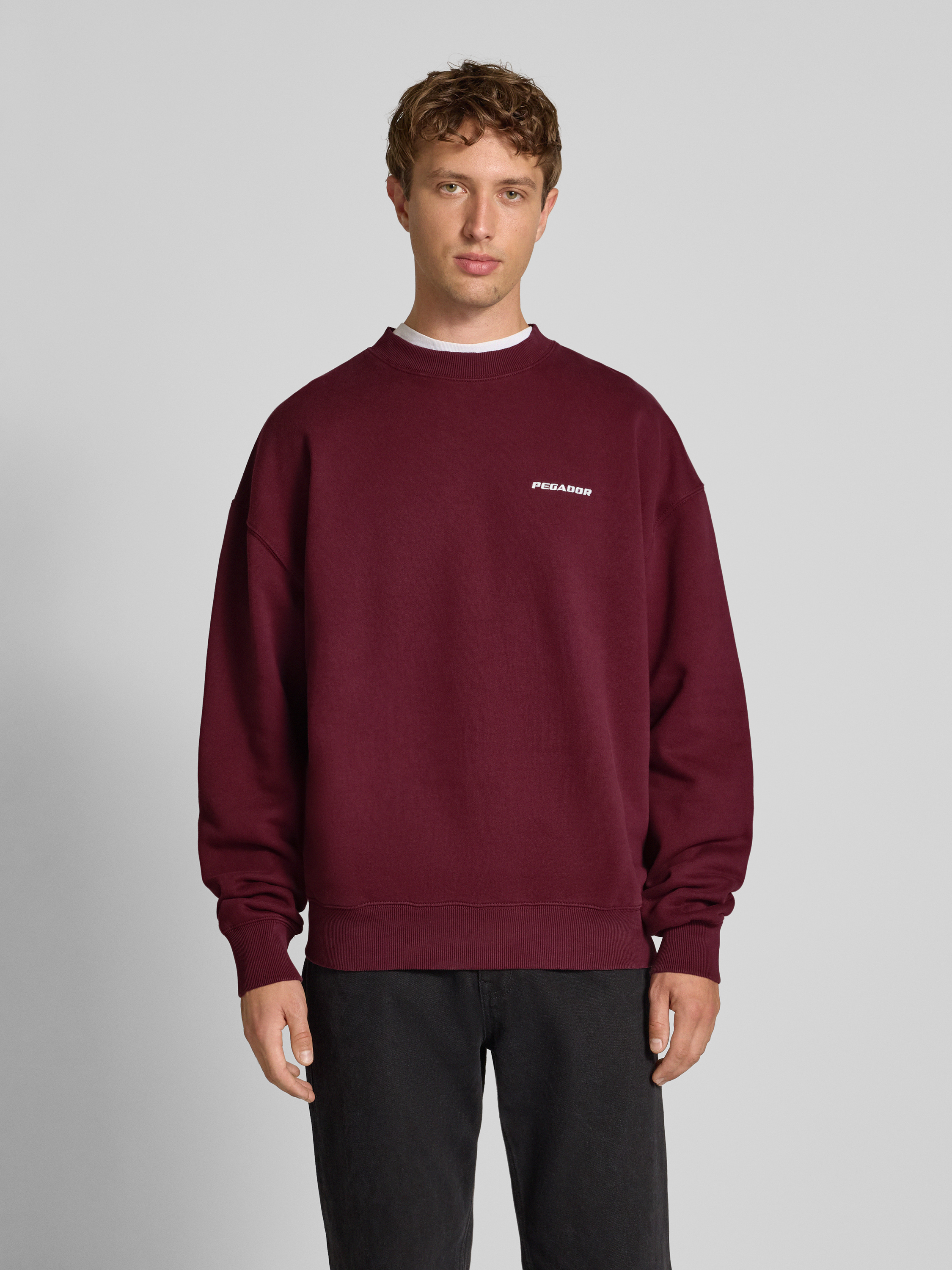 Bluza o kroju oversized z wyhaftowanym logo i okrągłym dekoltem - bordowy