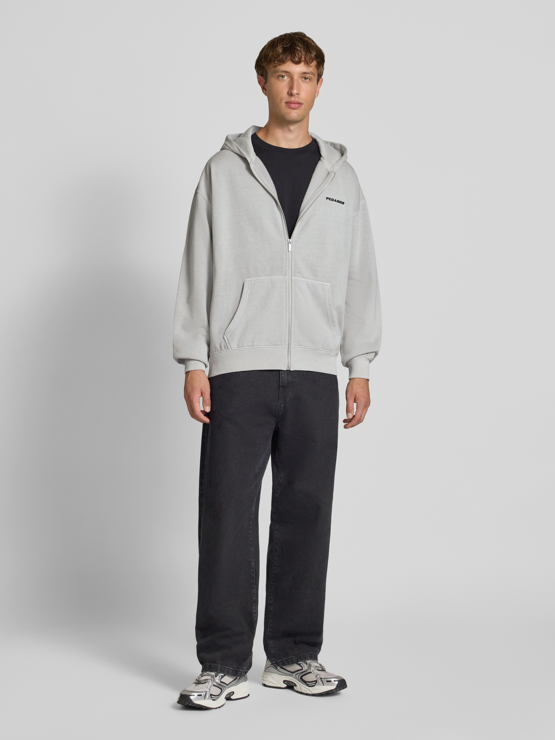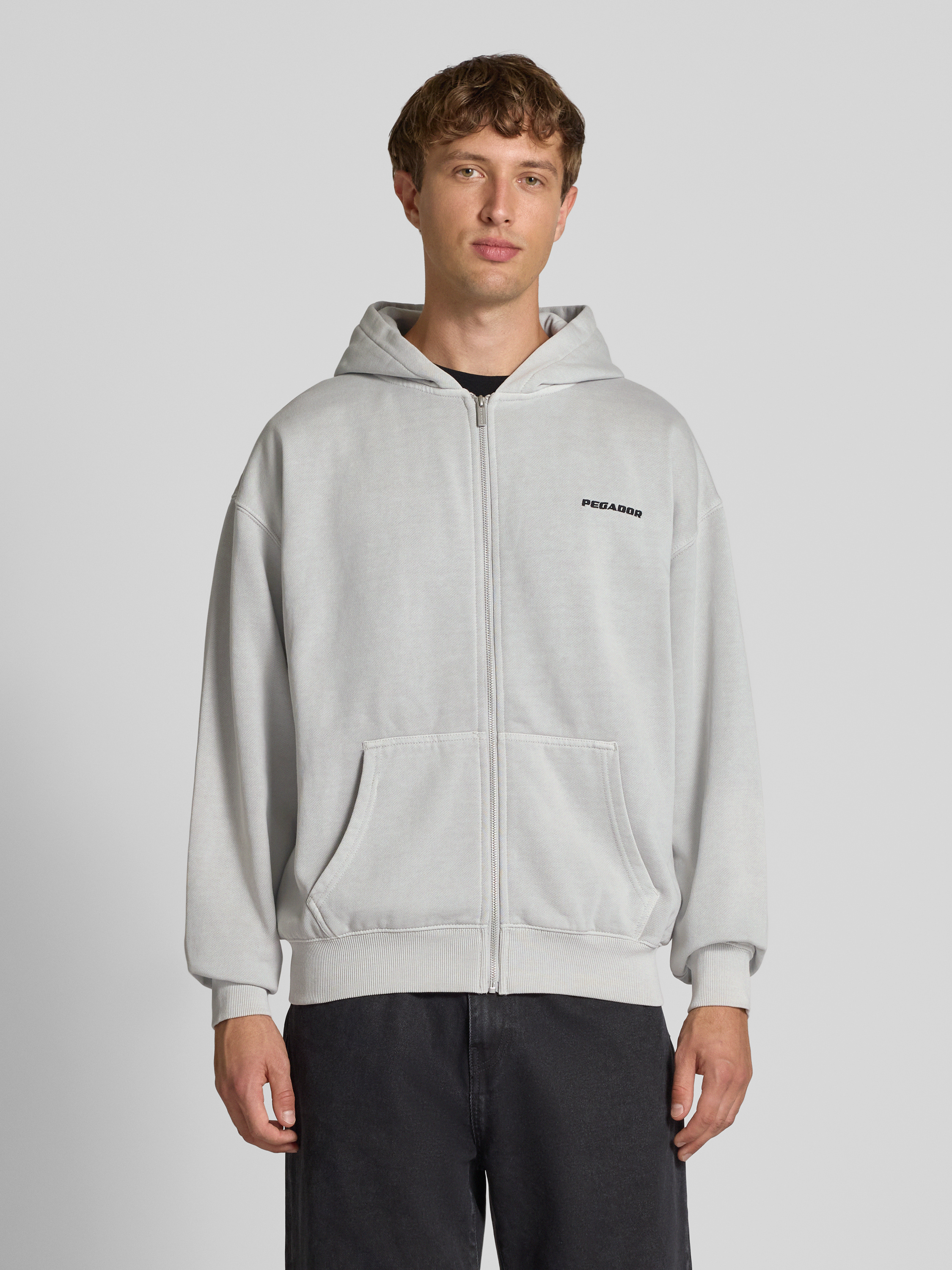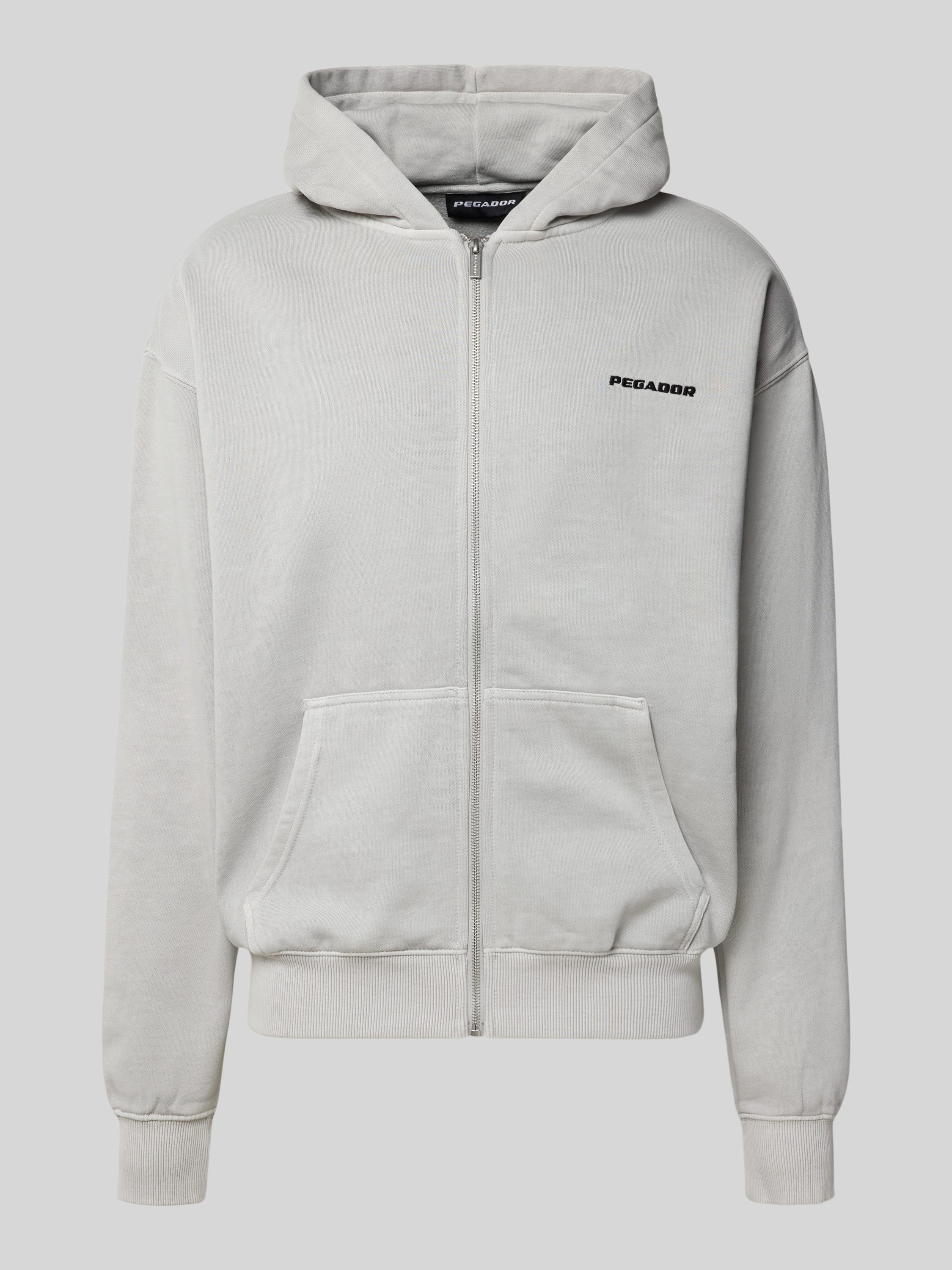 Bluza rozpinana o kroju oversized z kapturem i wyhaftowanym logo - jasnoszary