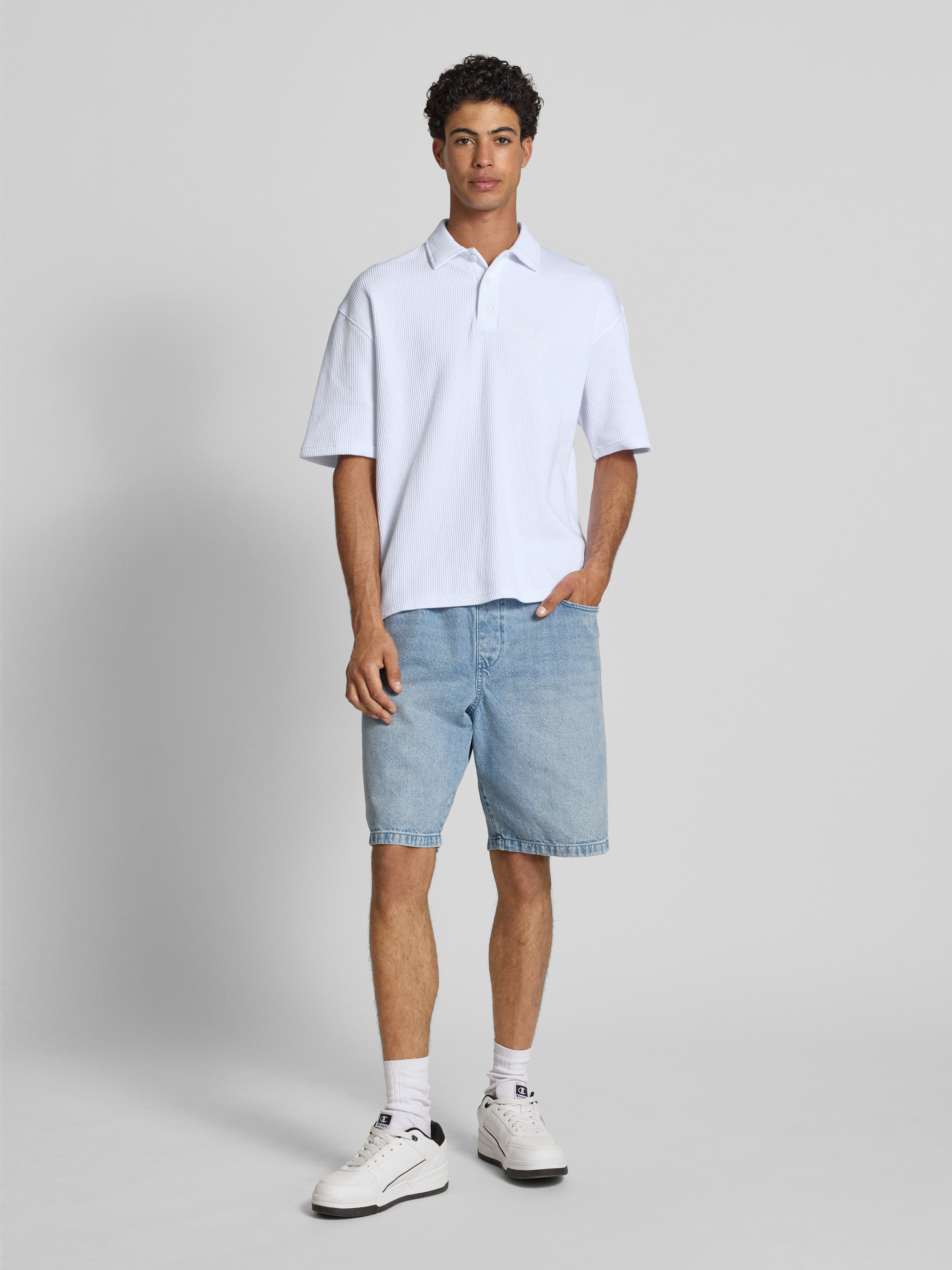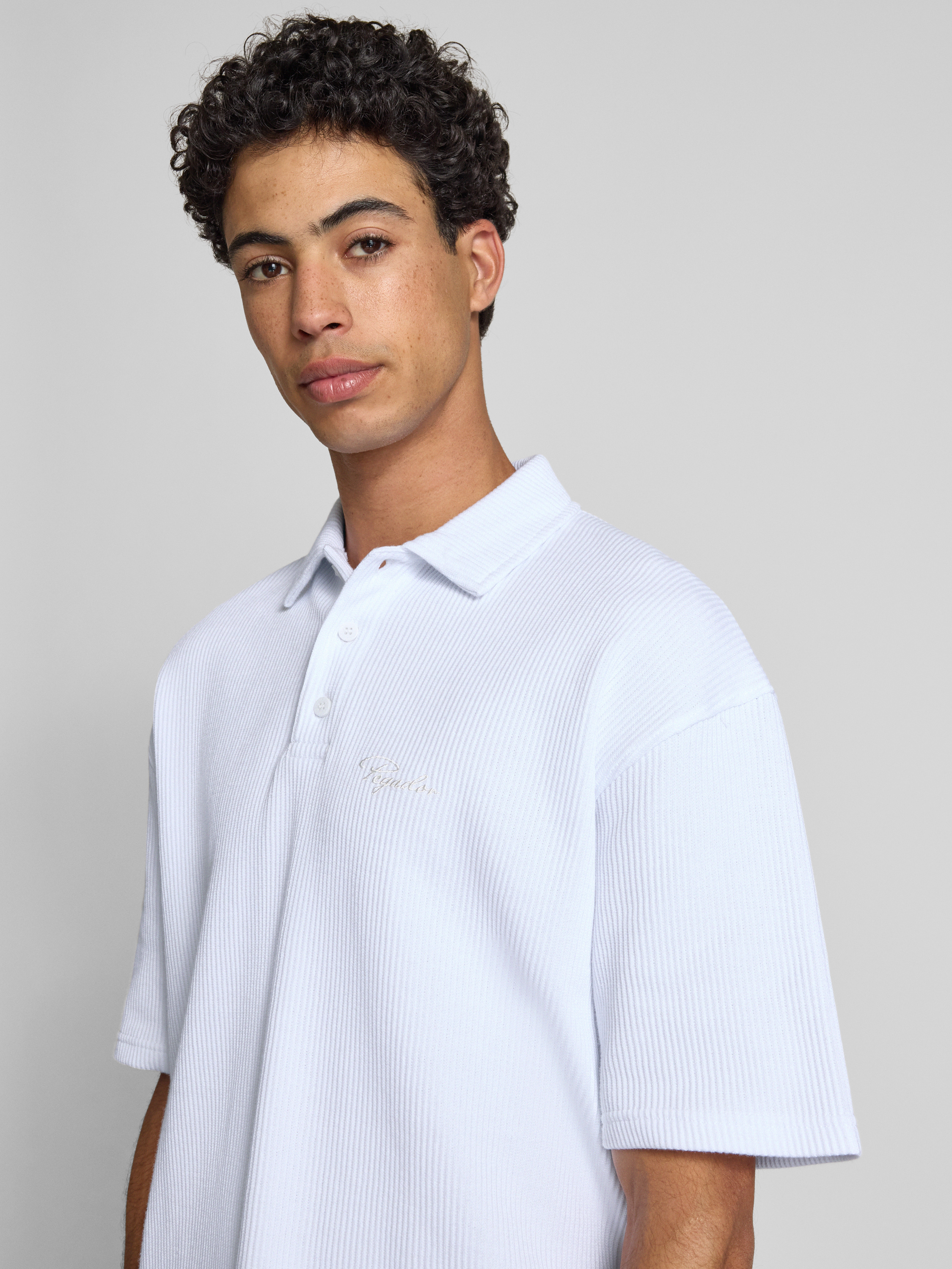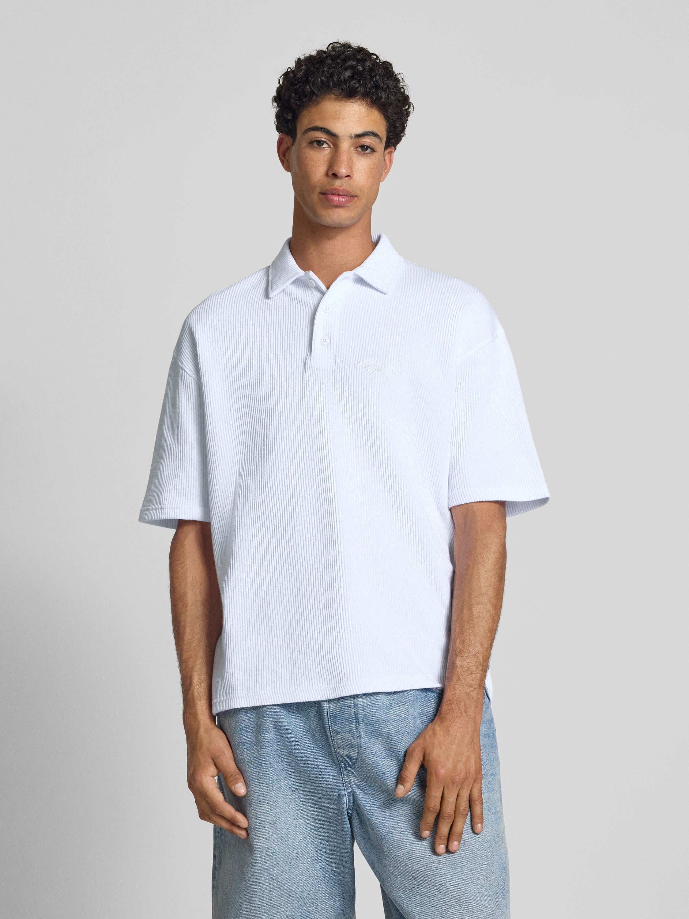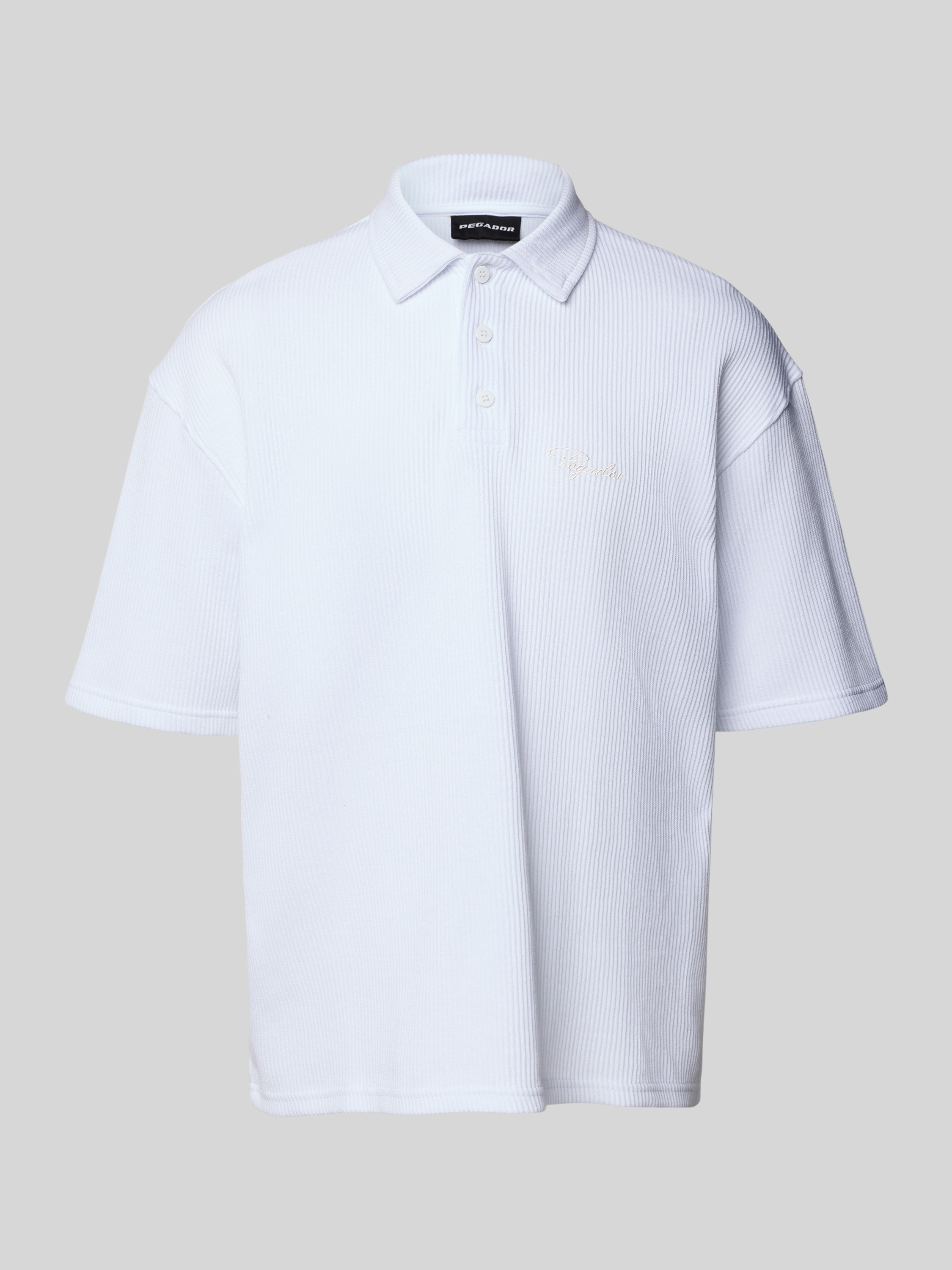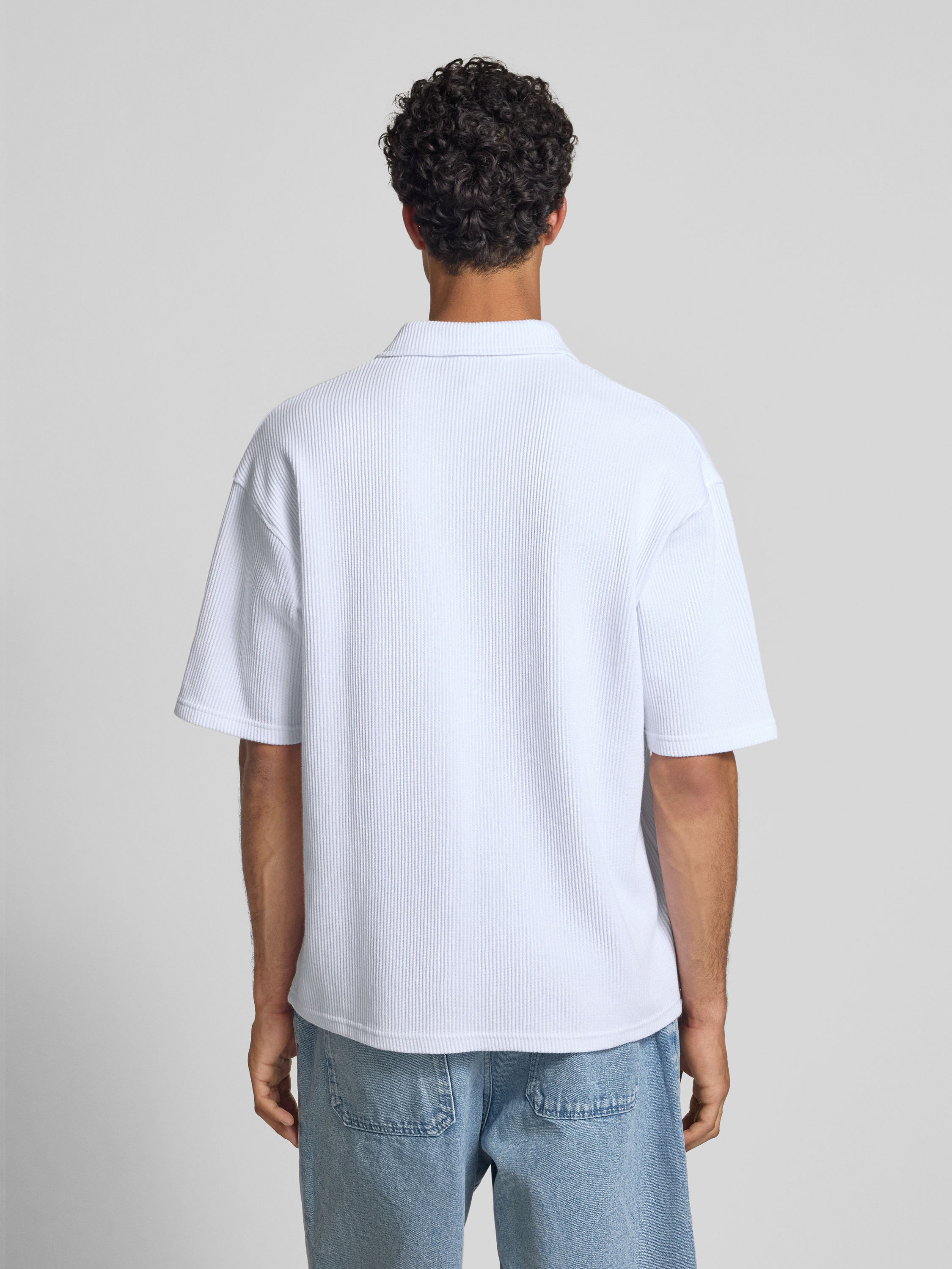 Koszulka polo o pudełkowym kroju z fakturowanym wzorem model ‘Signar’ - biały
