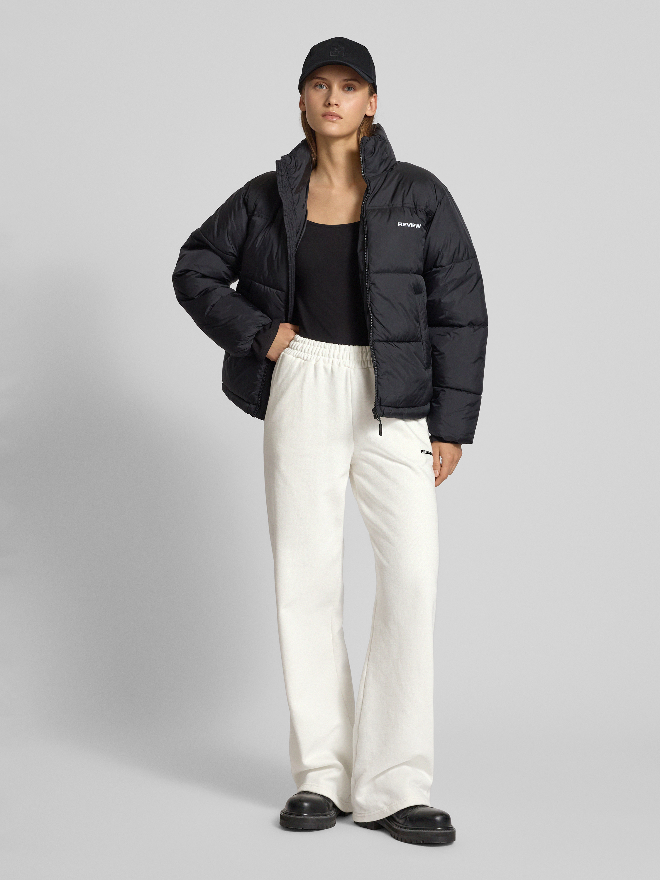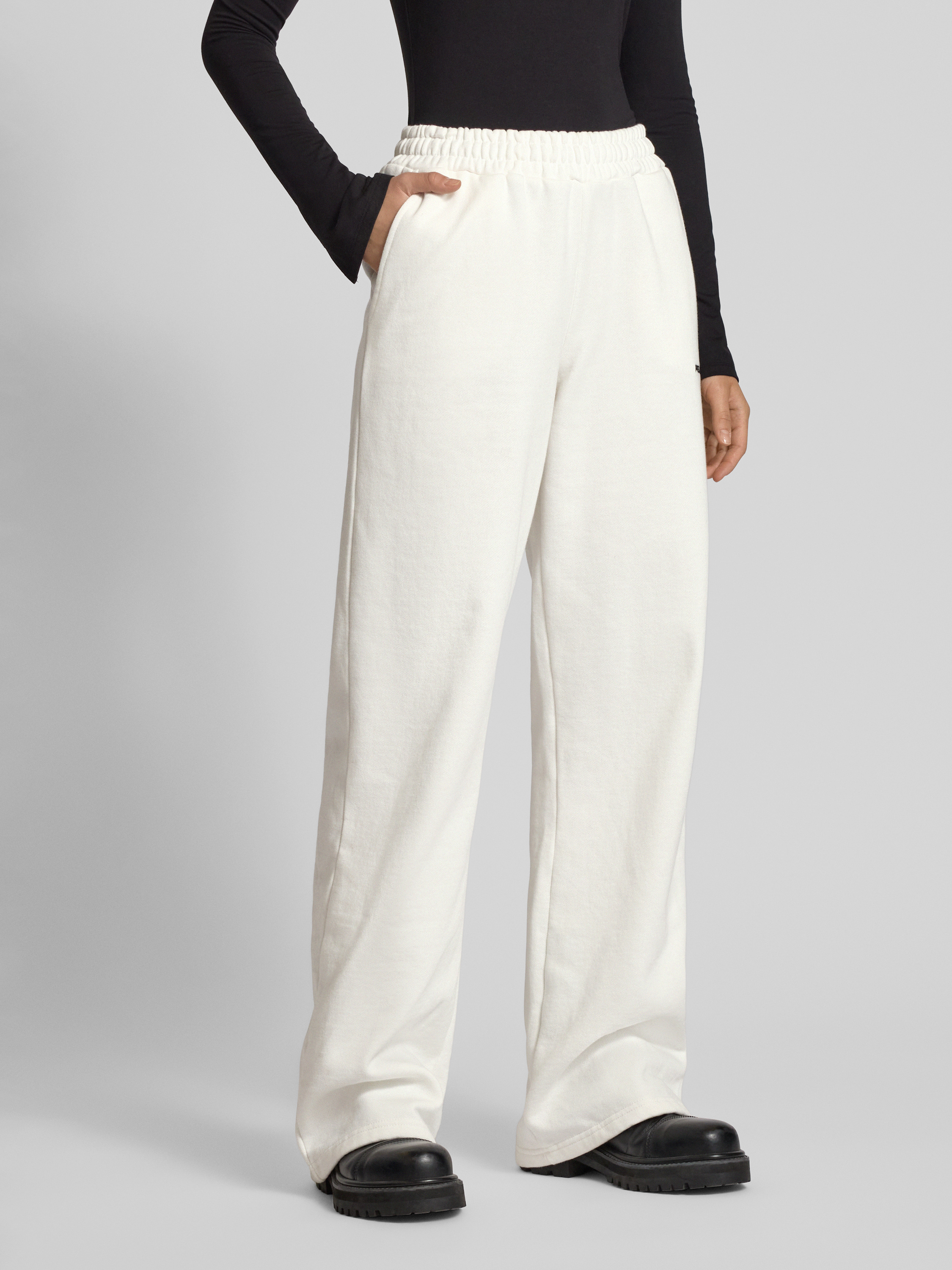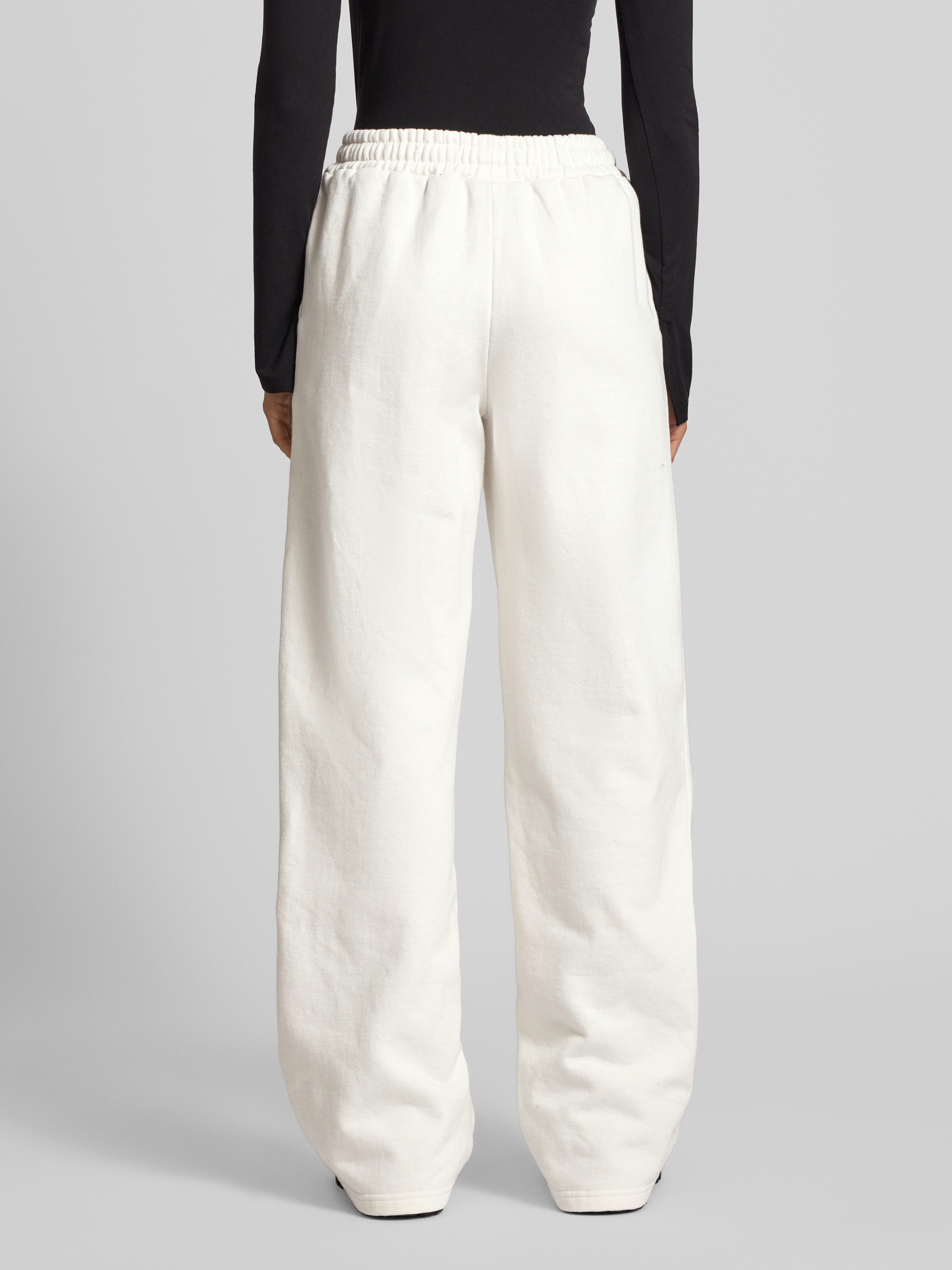 Spodnie dresowe o szerokim kroju z wyhaftowanym logo model ‘Anni’ - beżowy