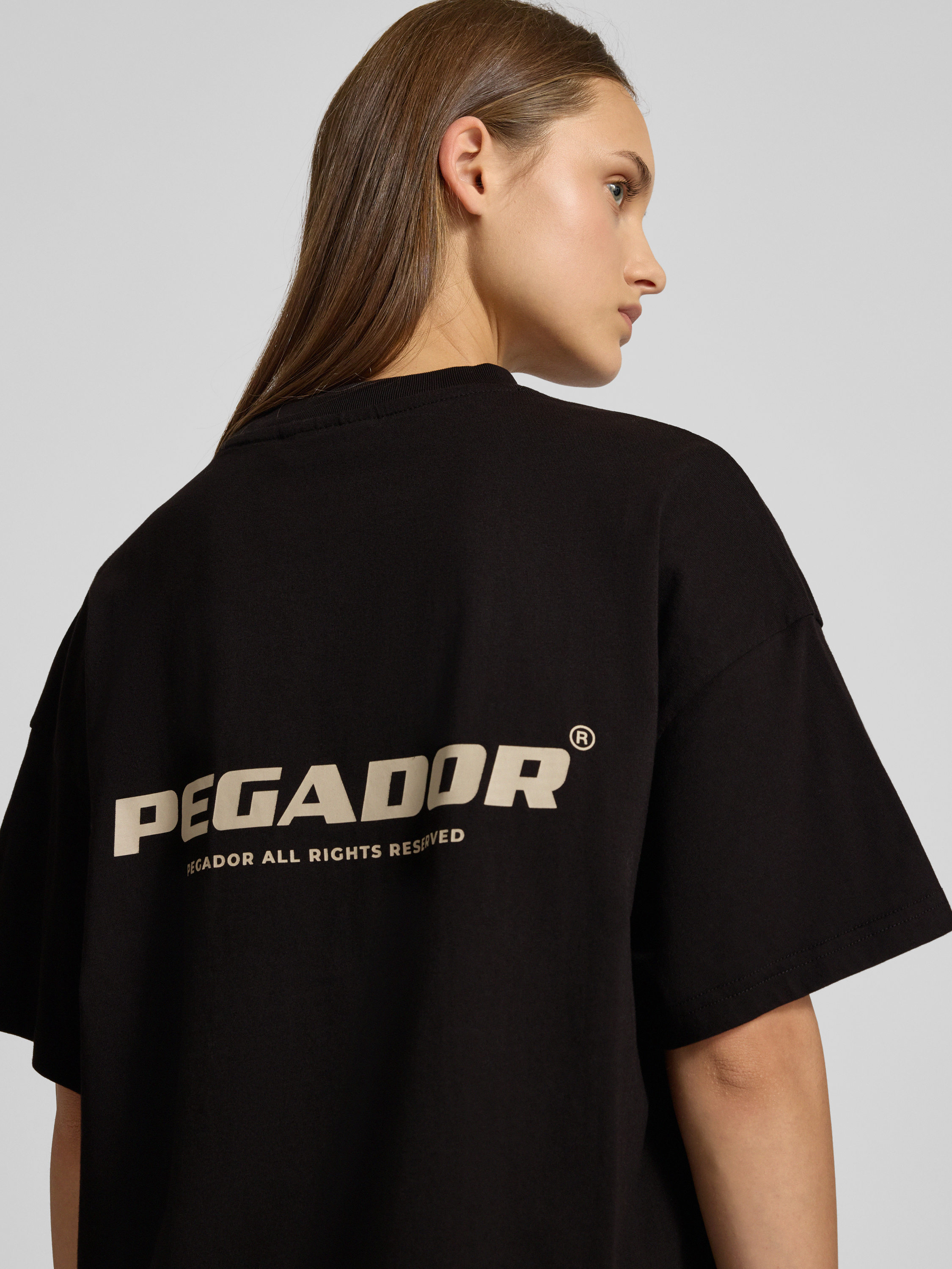 T-shirt o kroju oversized z nadrukiem z logo model ‘Ardendal’ - czarny