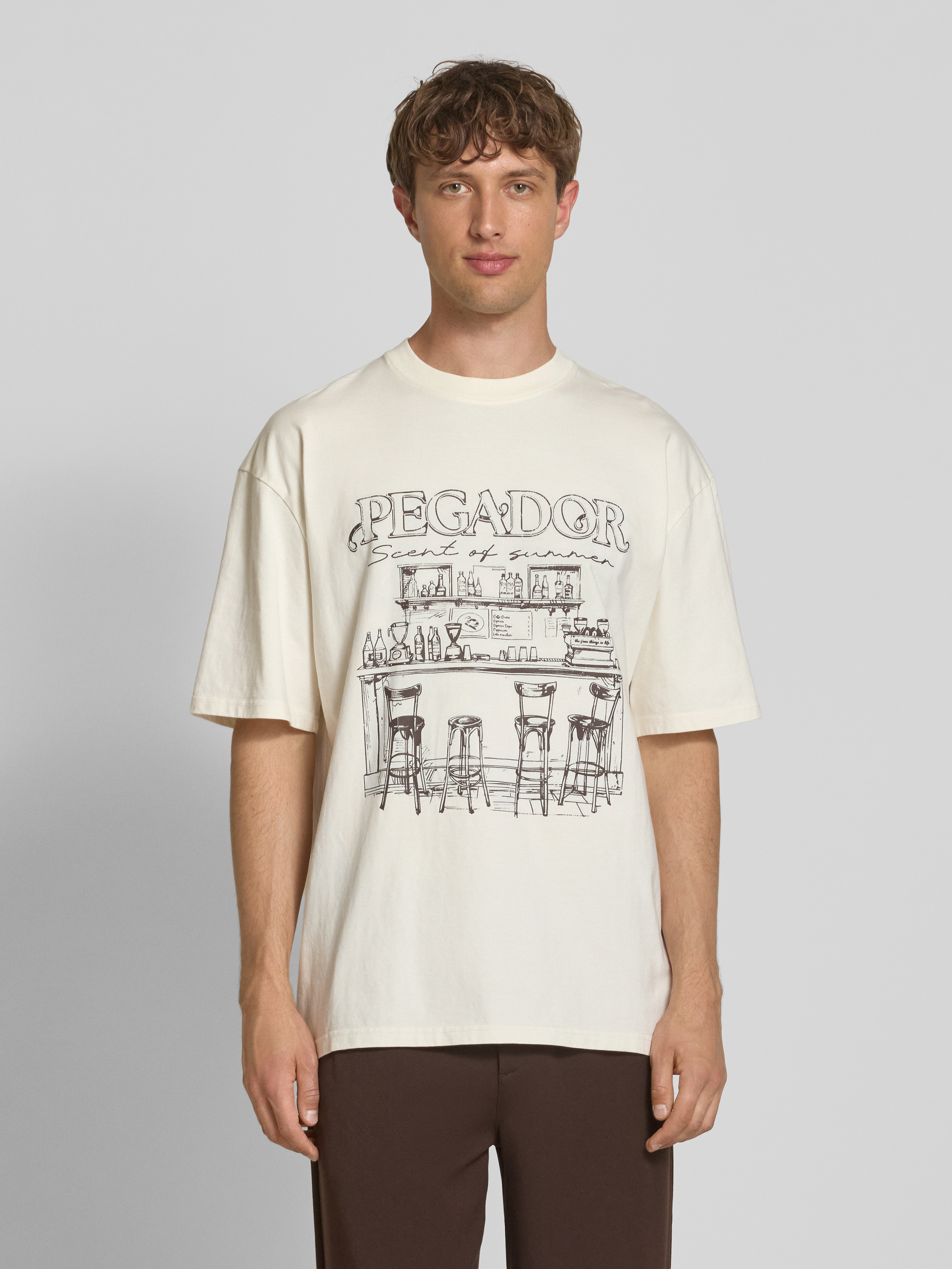 T-shirt o kroju oversized z nadrukiem z logo model ‘Barno’ - złamany biały