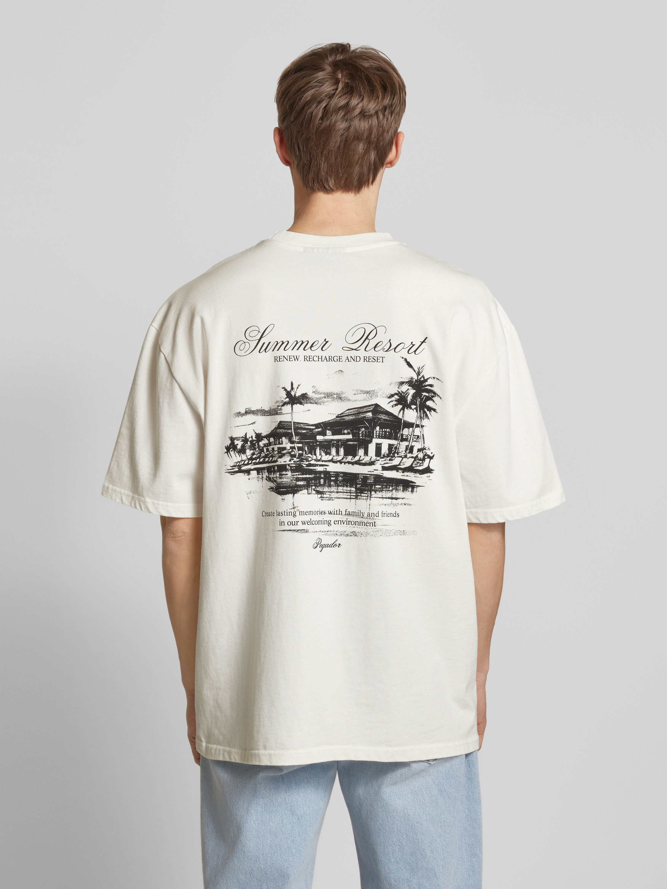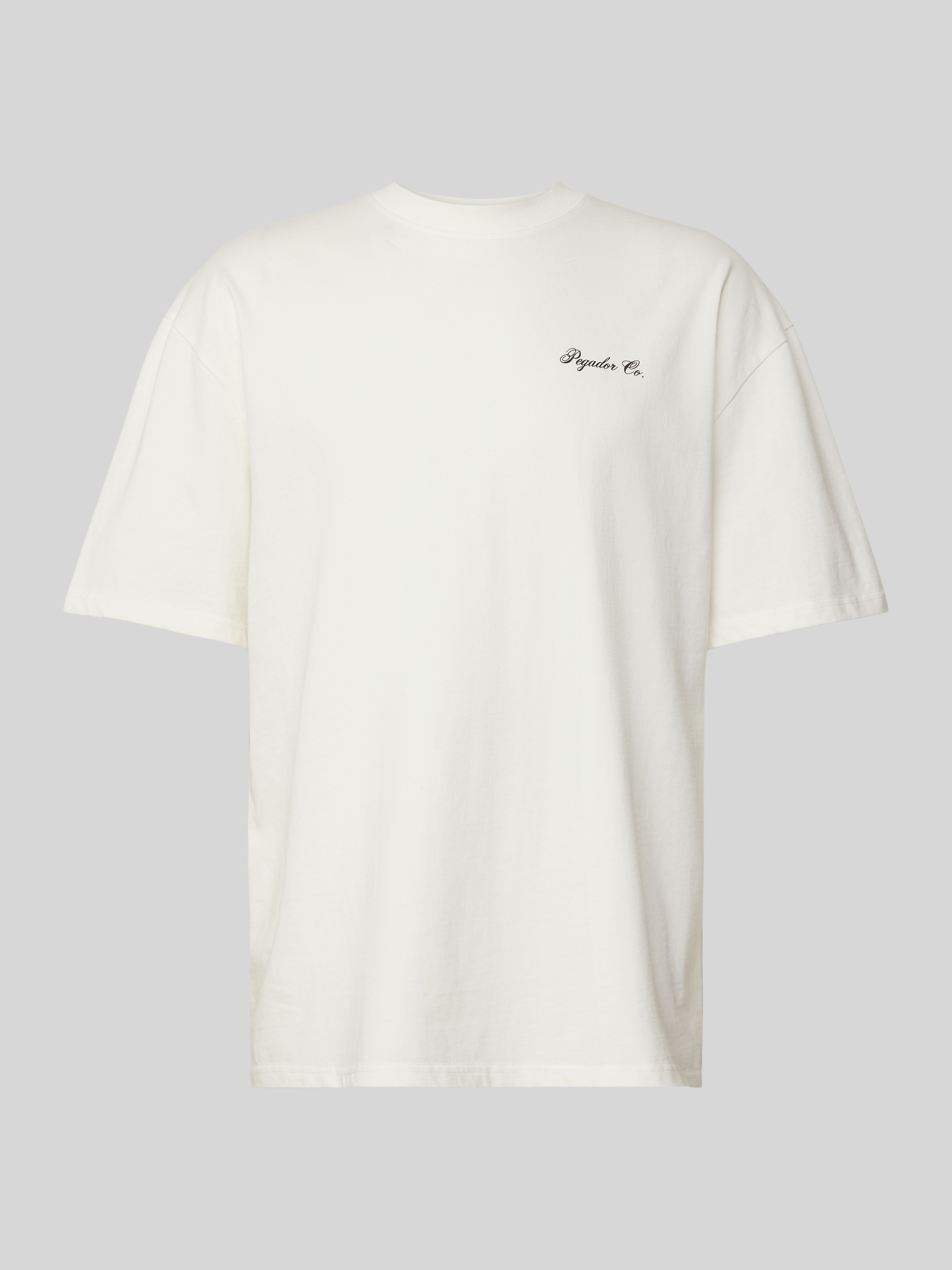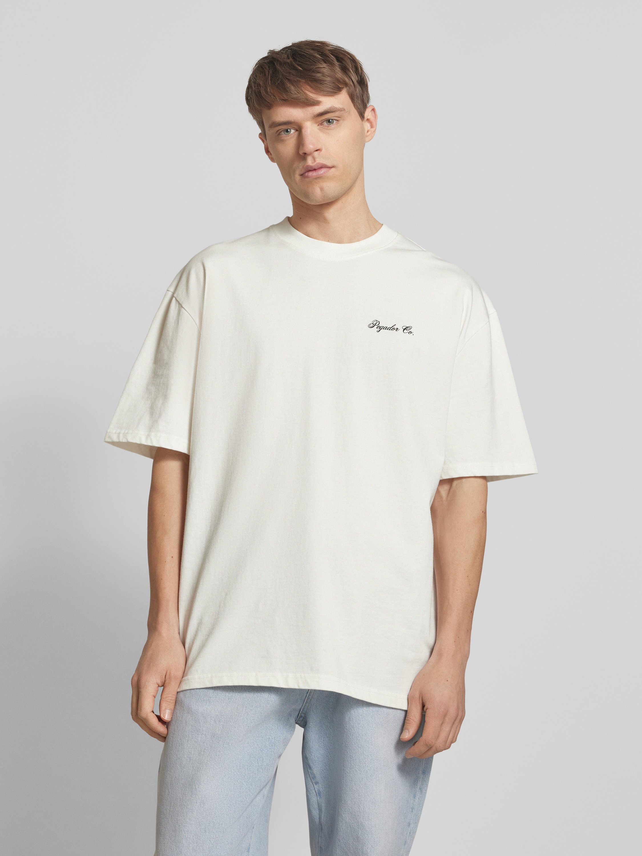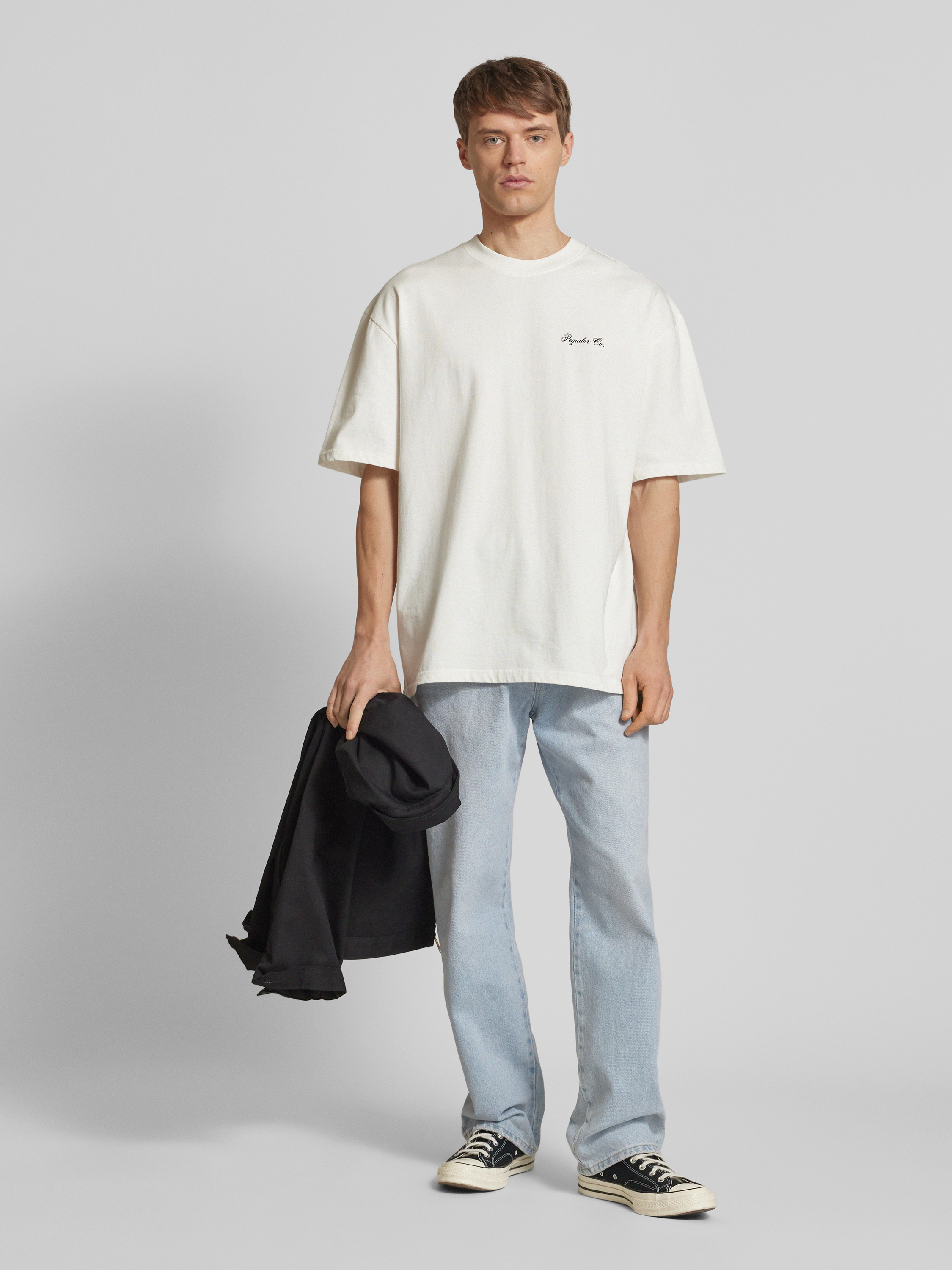 T-shirt o kroju oversized z nadrukiem z logo model ‘POLION’ - złamany biały