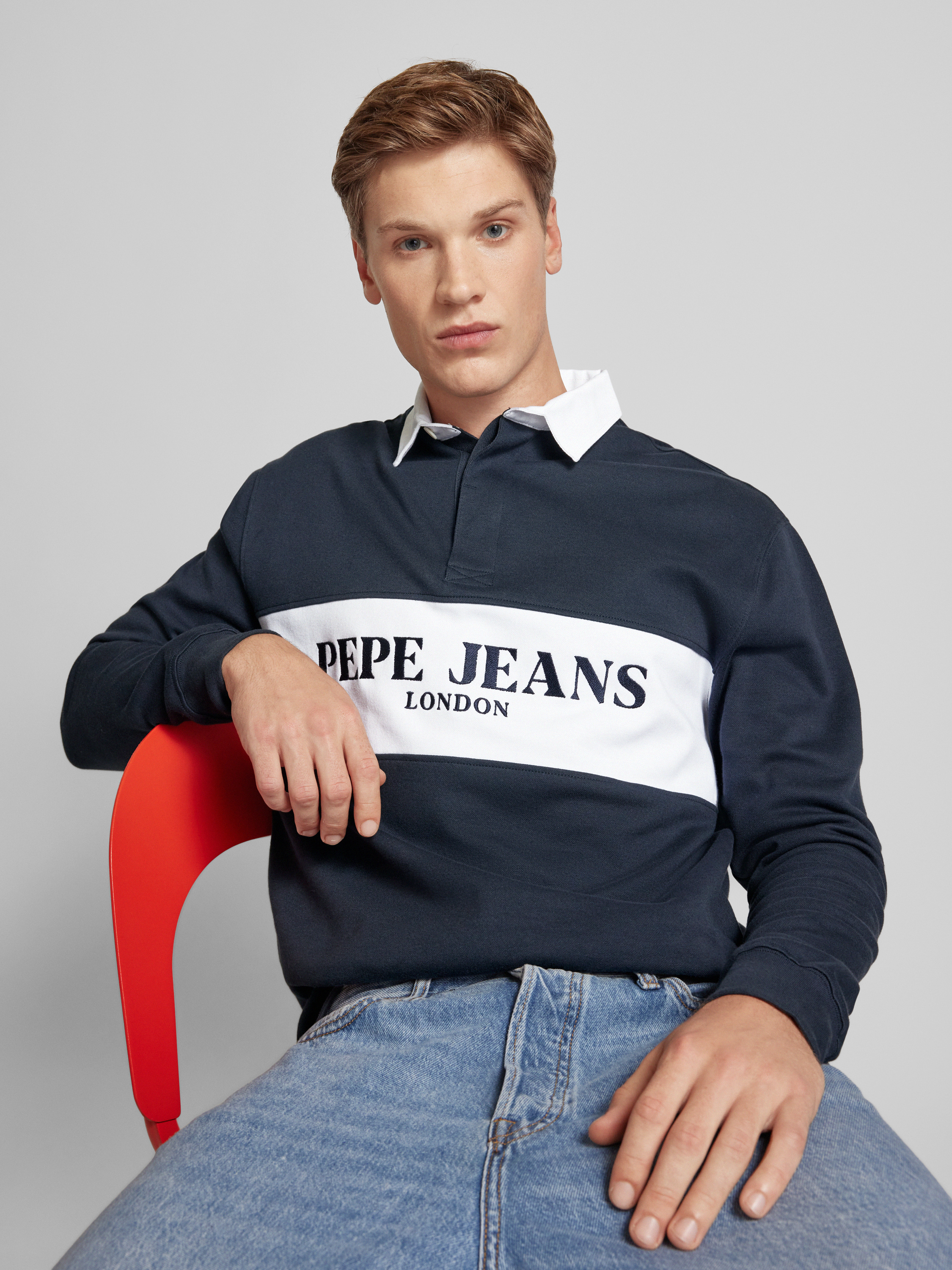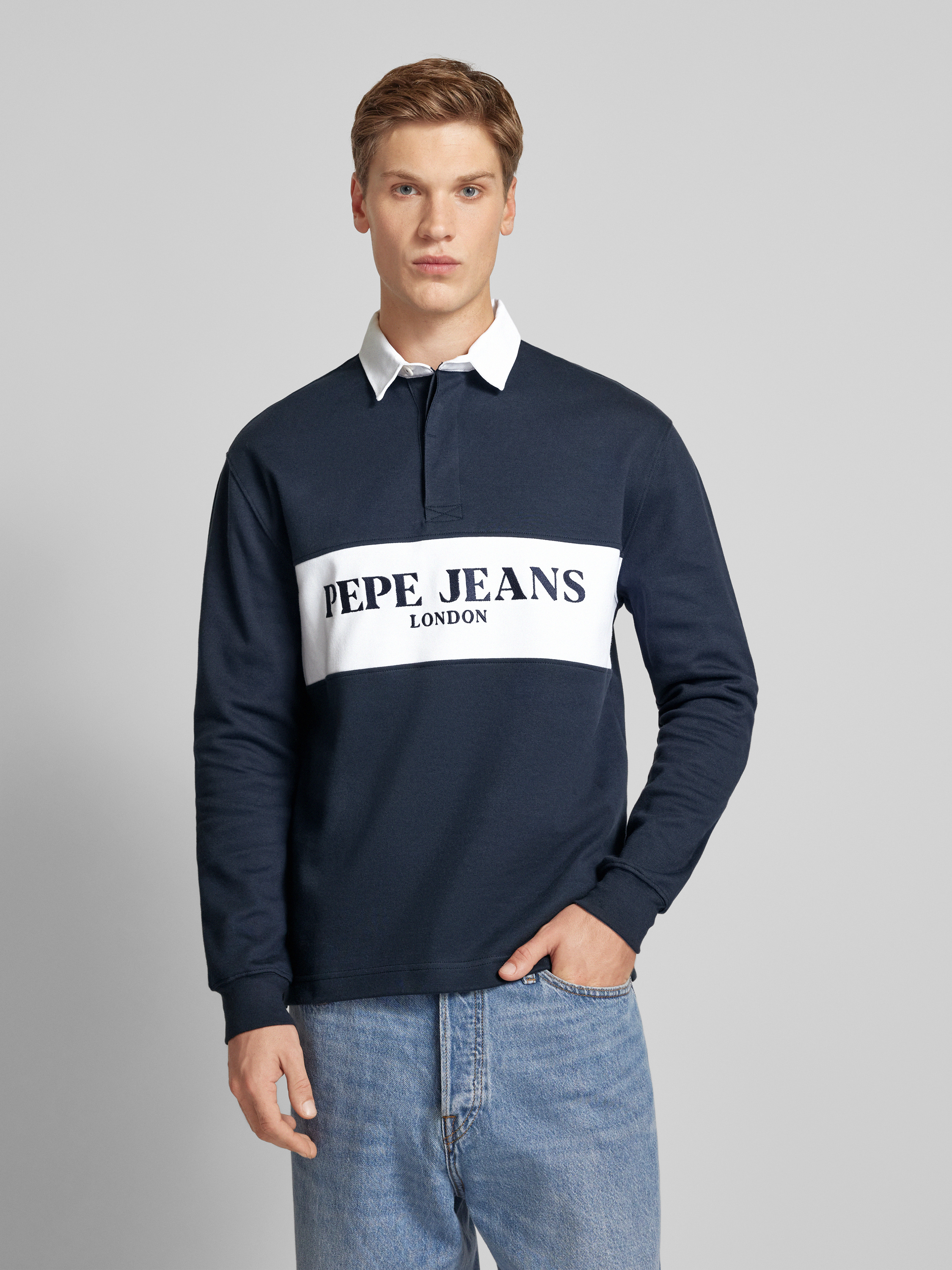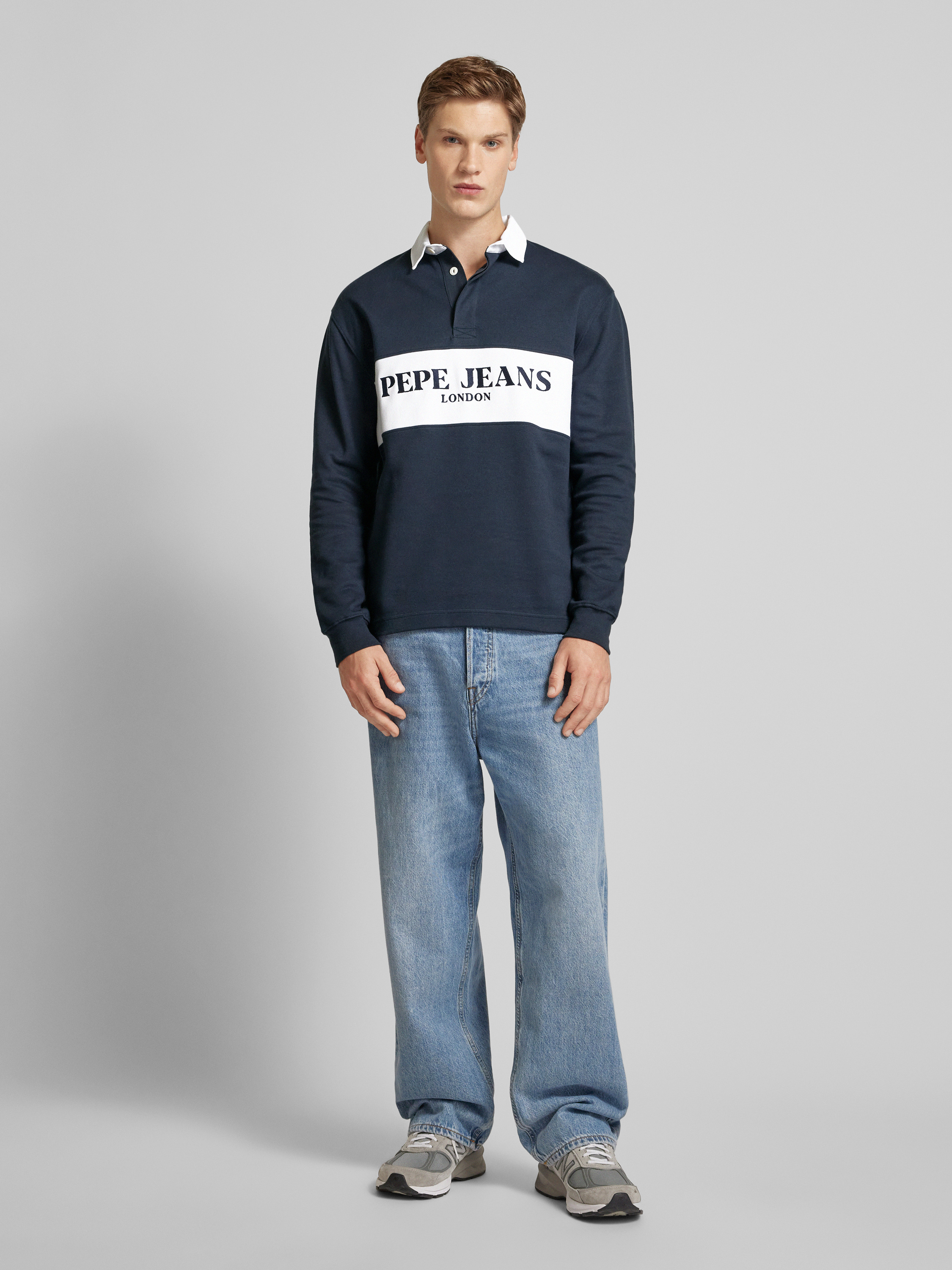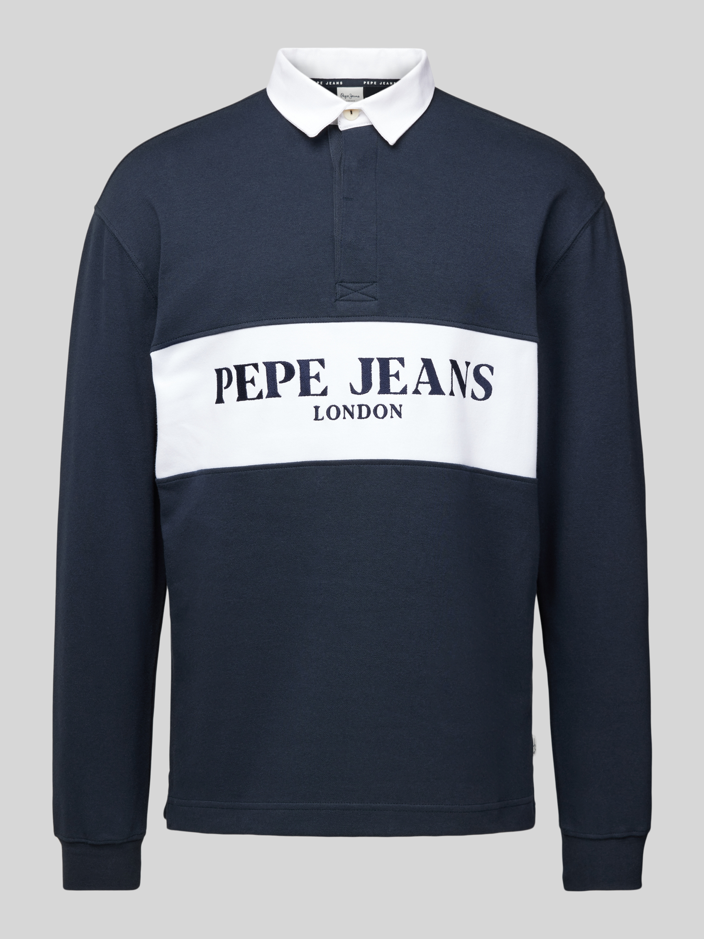 Bluza z kołnierzykiem polo model ‘Joey’ - granatowy