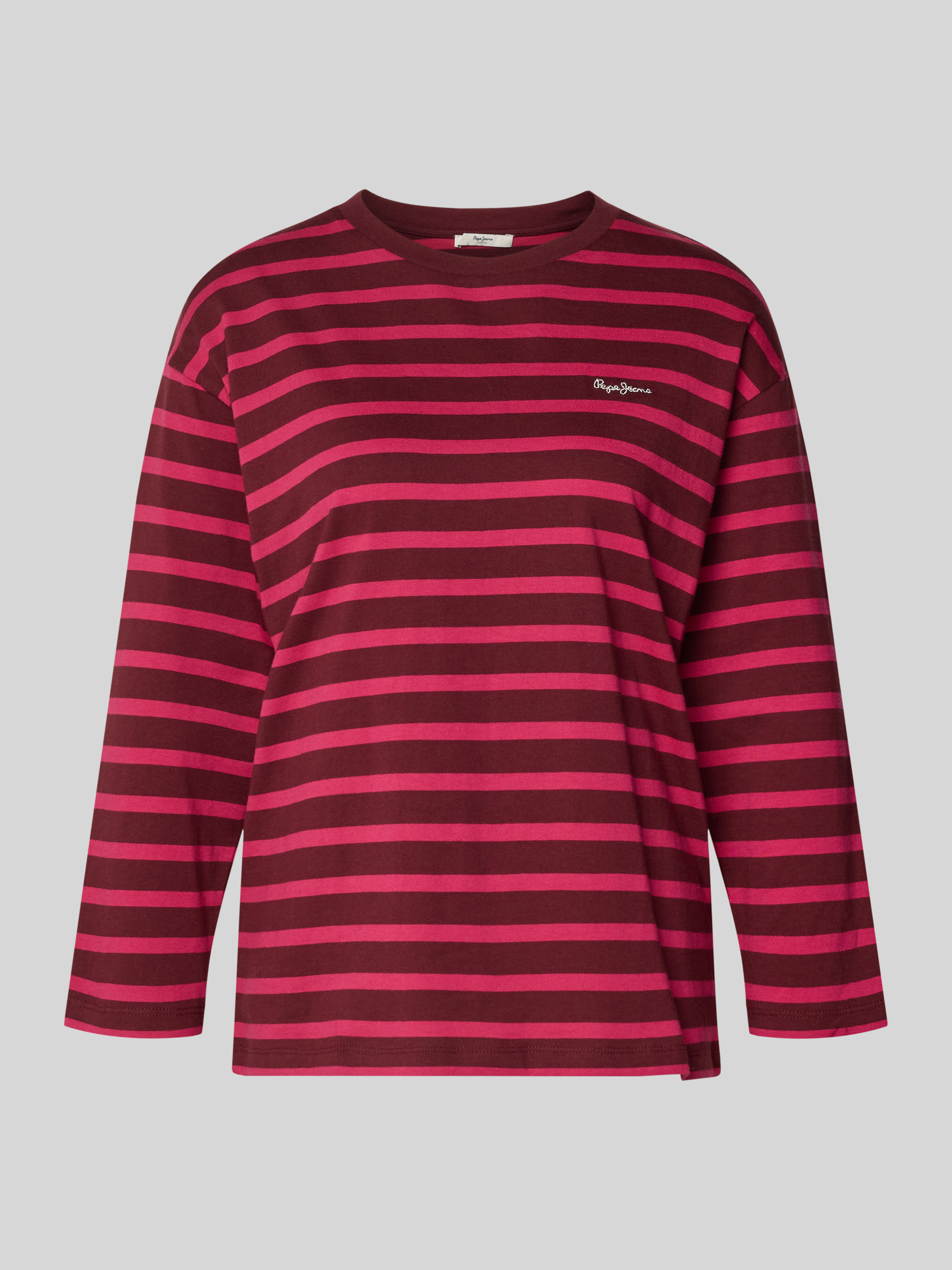 Bluzka z długim rękawem o kroju comfort fit z czystej bawełny model ‘BANILLA’ - mocnoróżowy