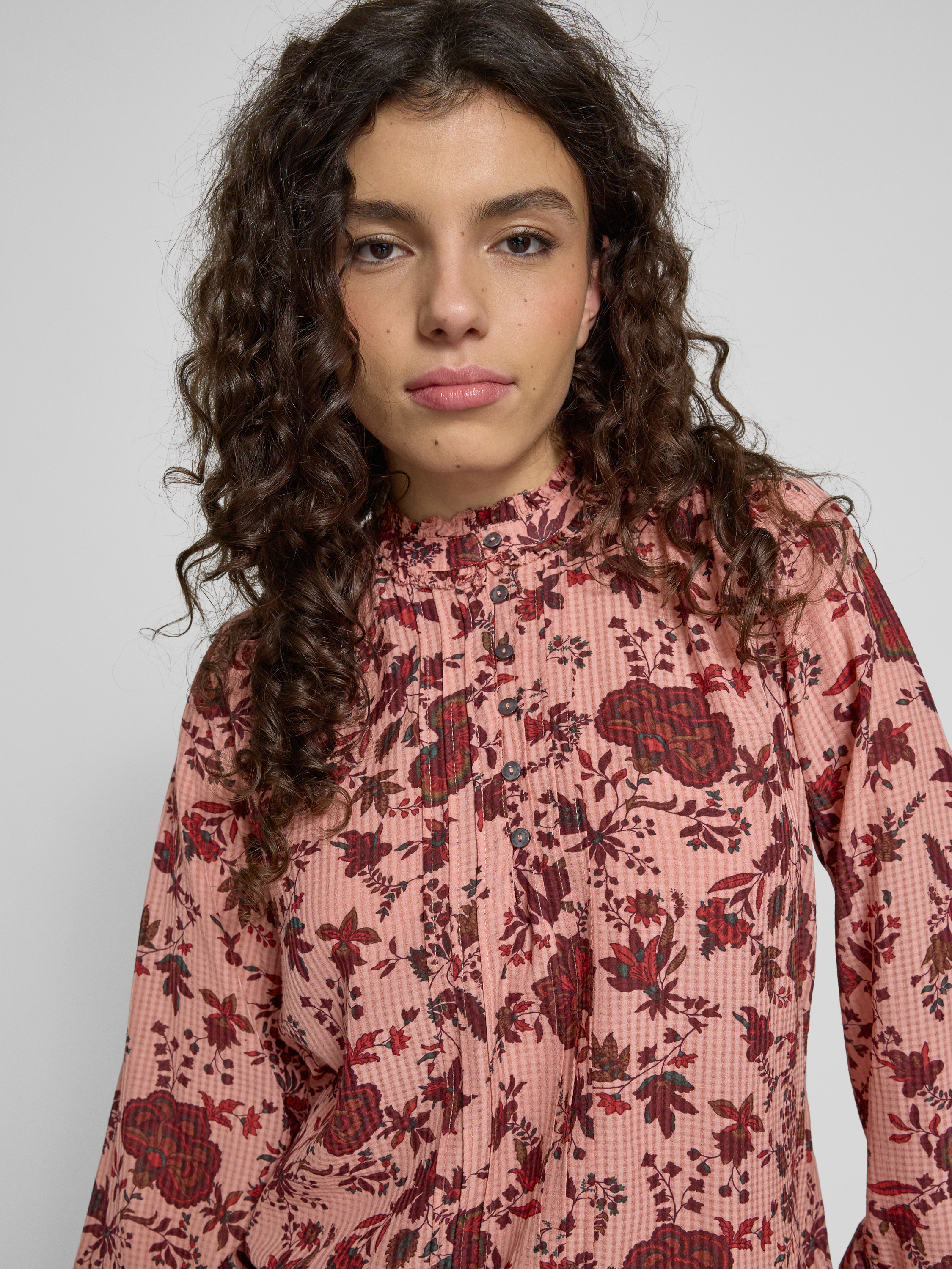 Bluzka z krótką listwą guzikową model ‘BELLA’ - różowawy