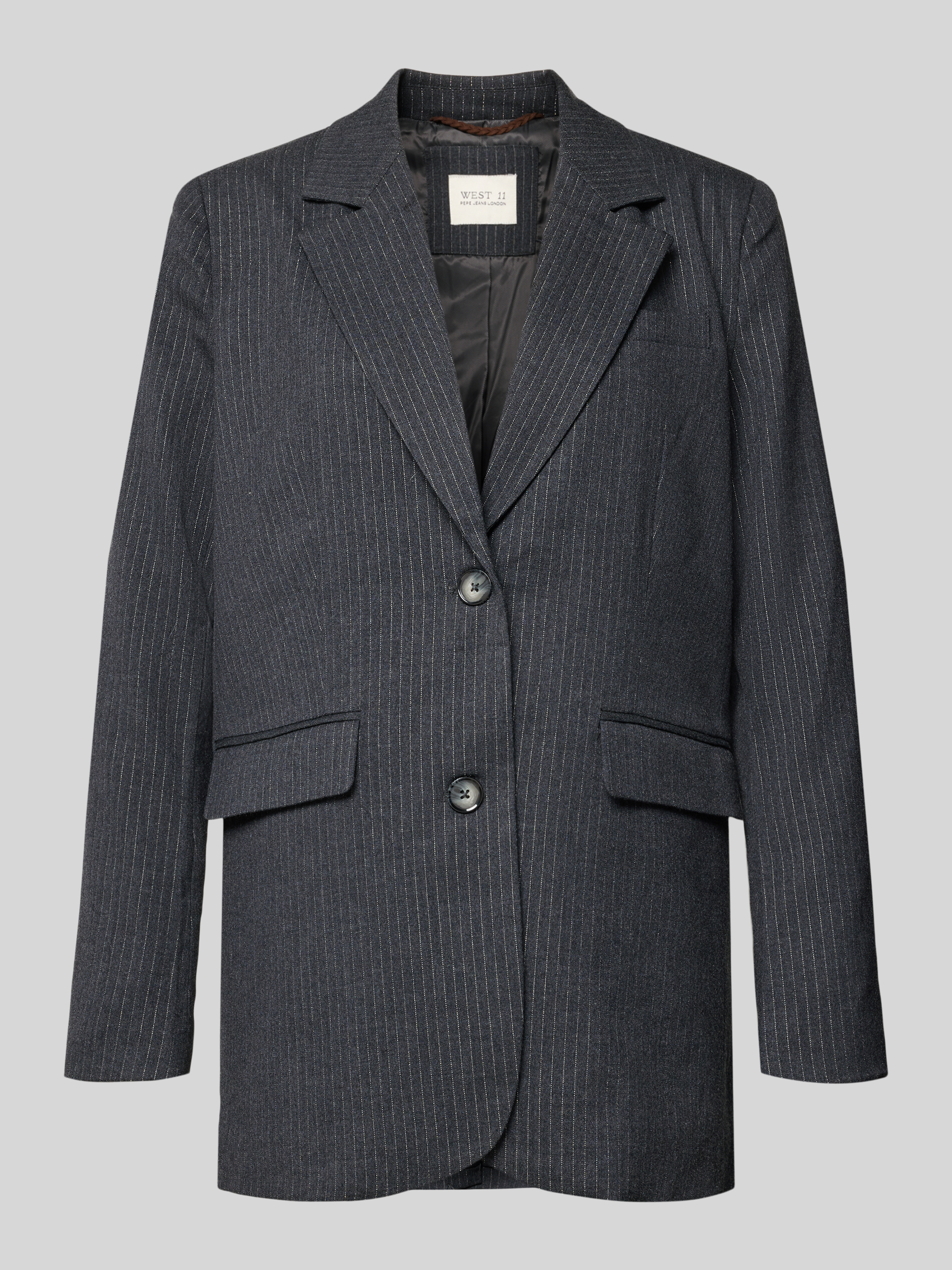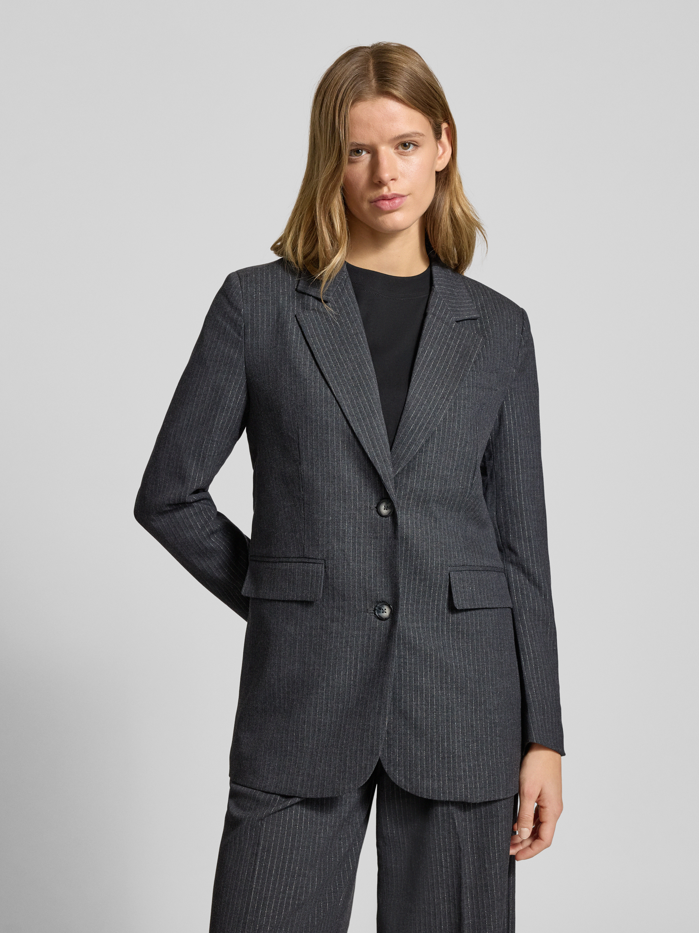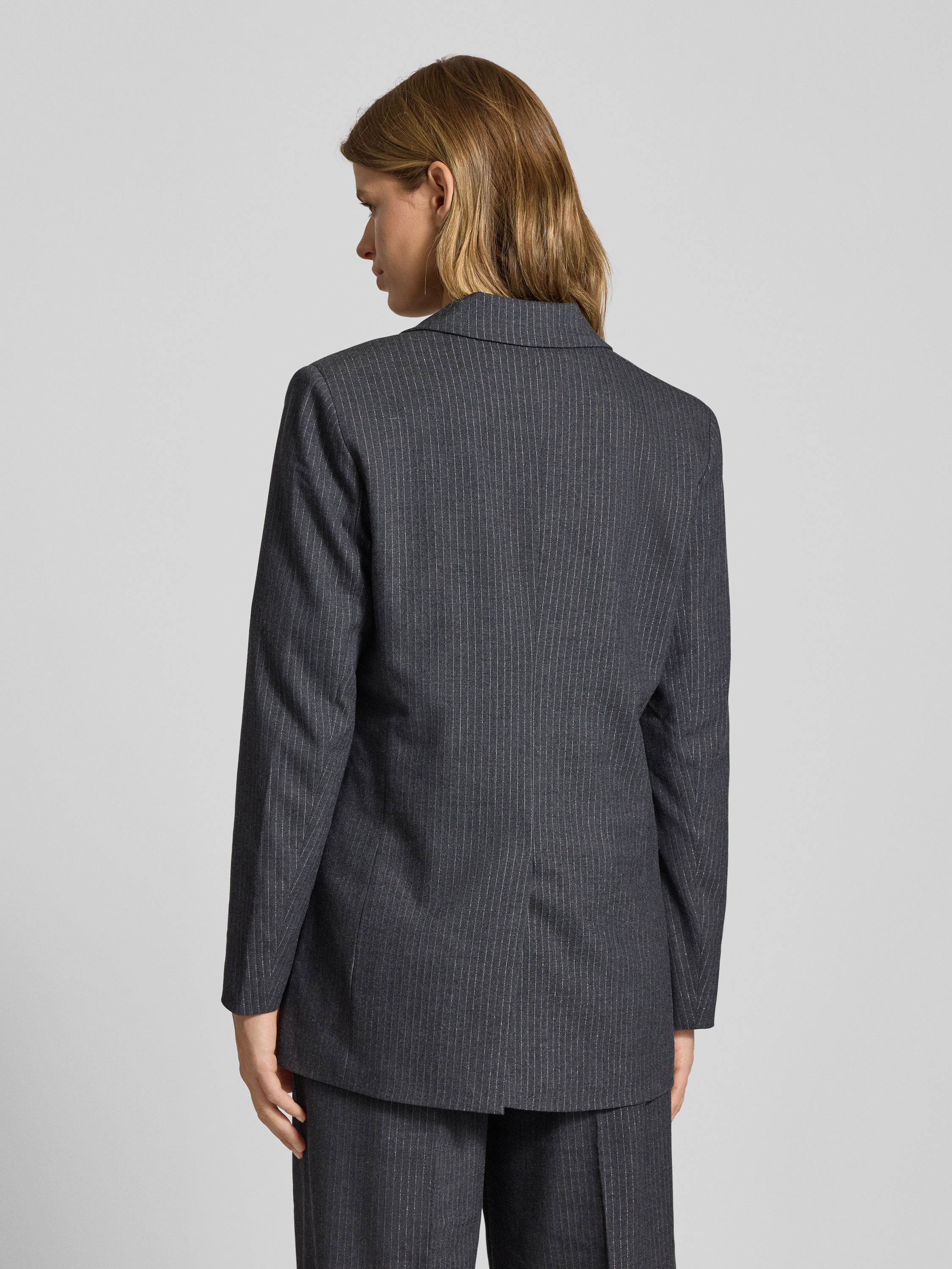 Długi żakiet o kroju relaxed fit ze wzorem w cienkie prążki model ‘PRISCILA’ - średnioszary