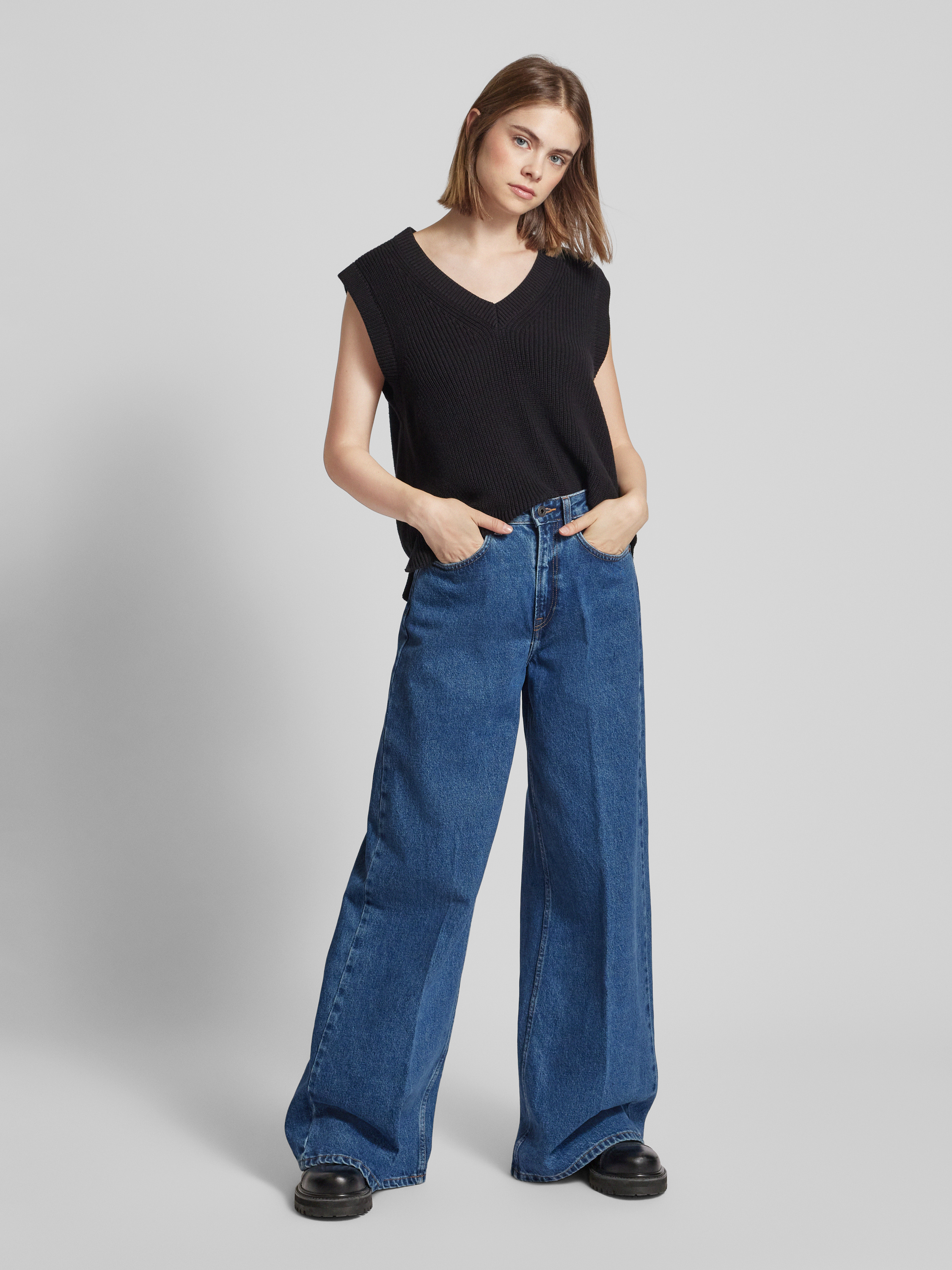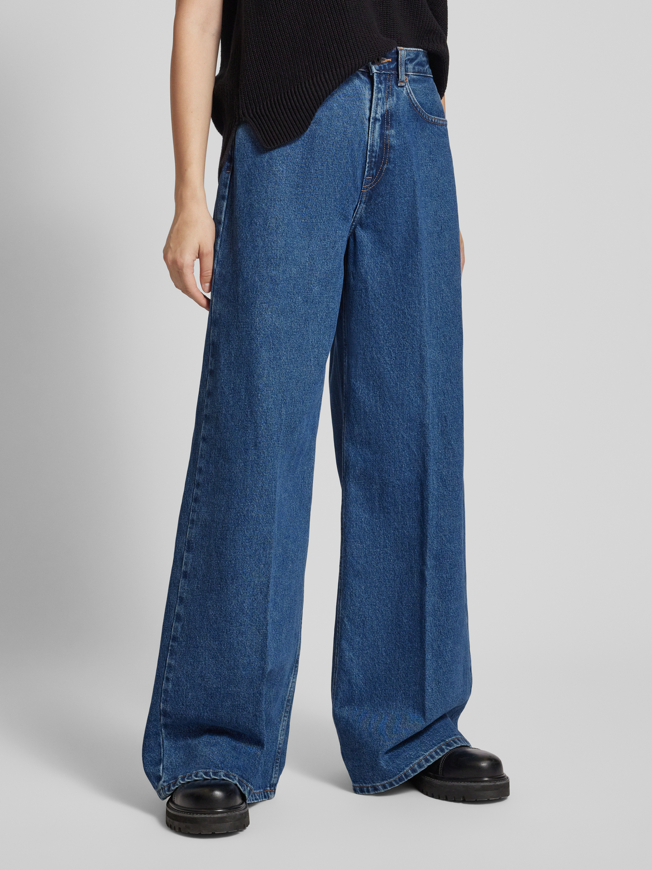 Jeansy z szerokimi nogawkami i 5 kieszeniami - niebieski
