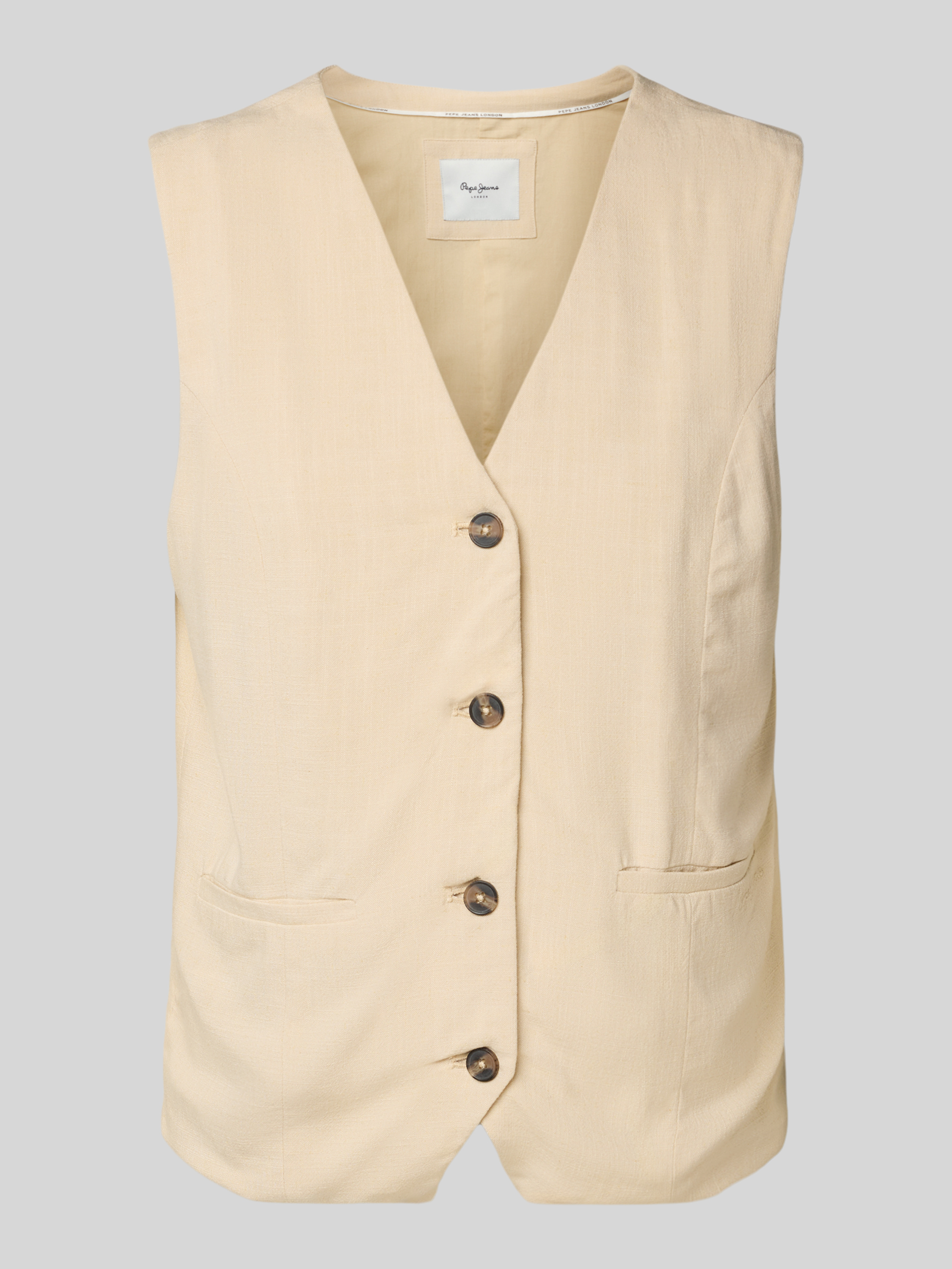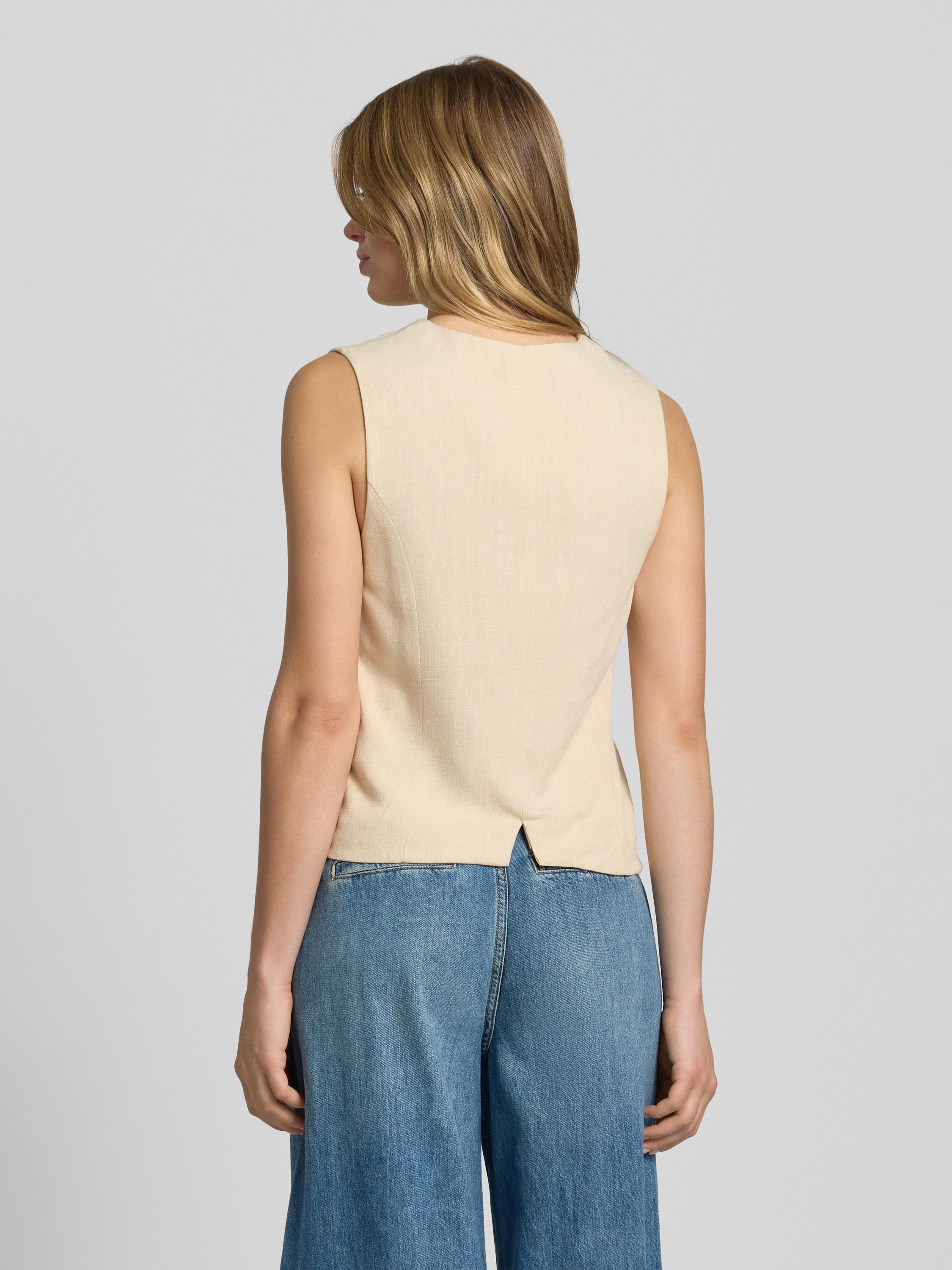 Kamizelka lniana o kroju regular fit z mieszanki wiskozy i lyocellu model ‘STELLA’ - złamany biały