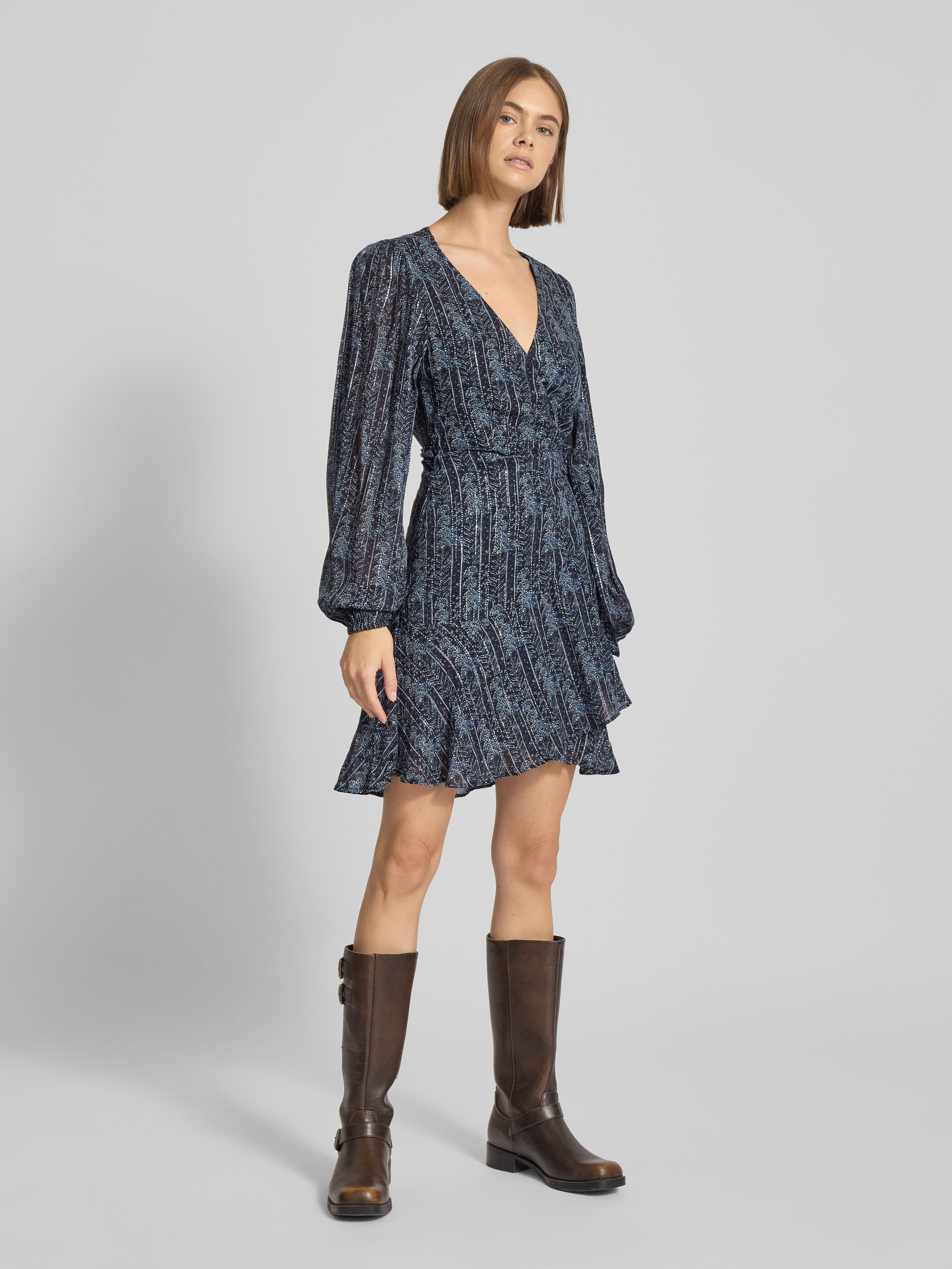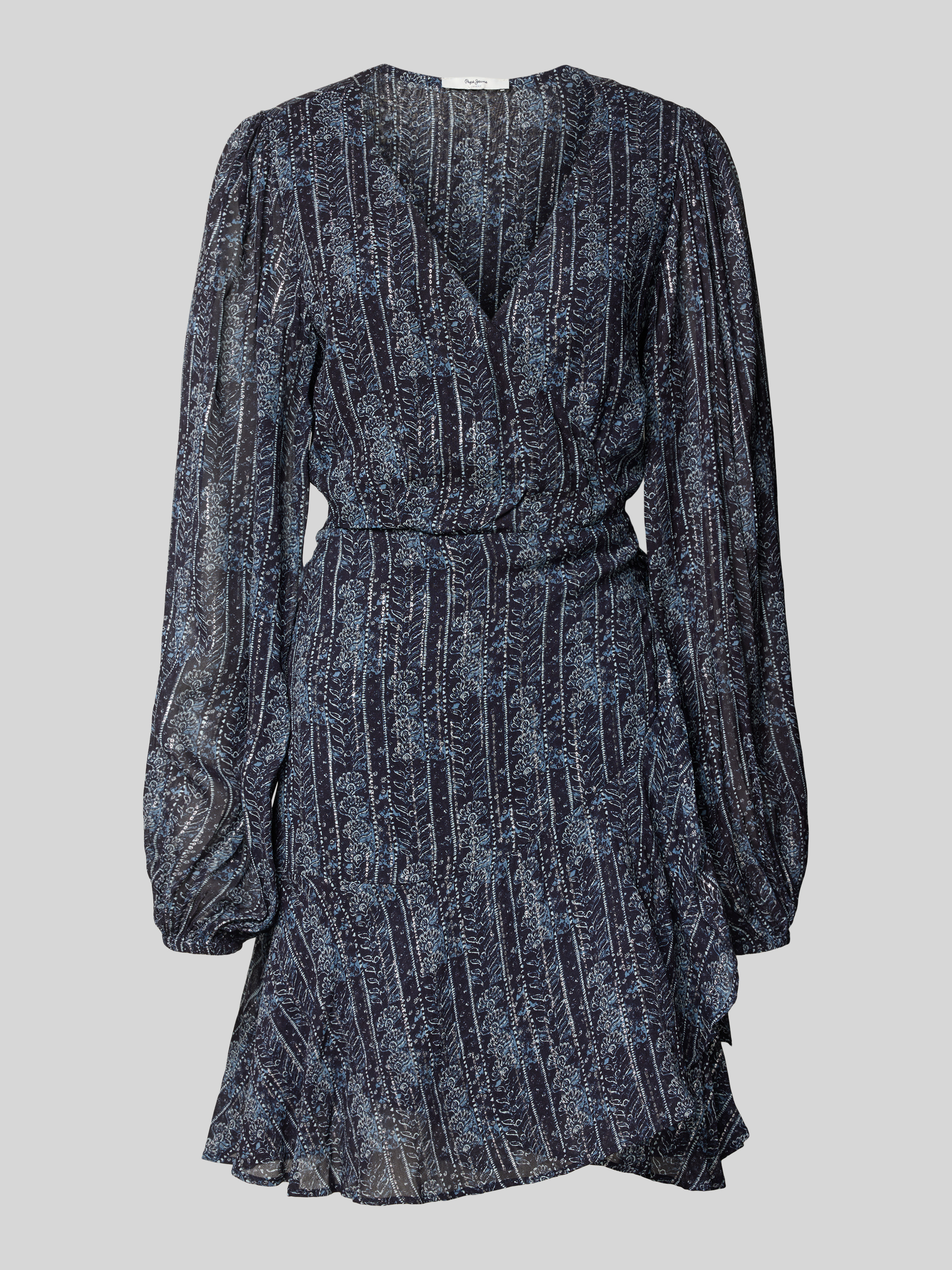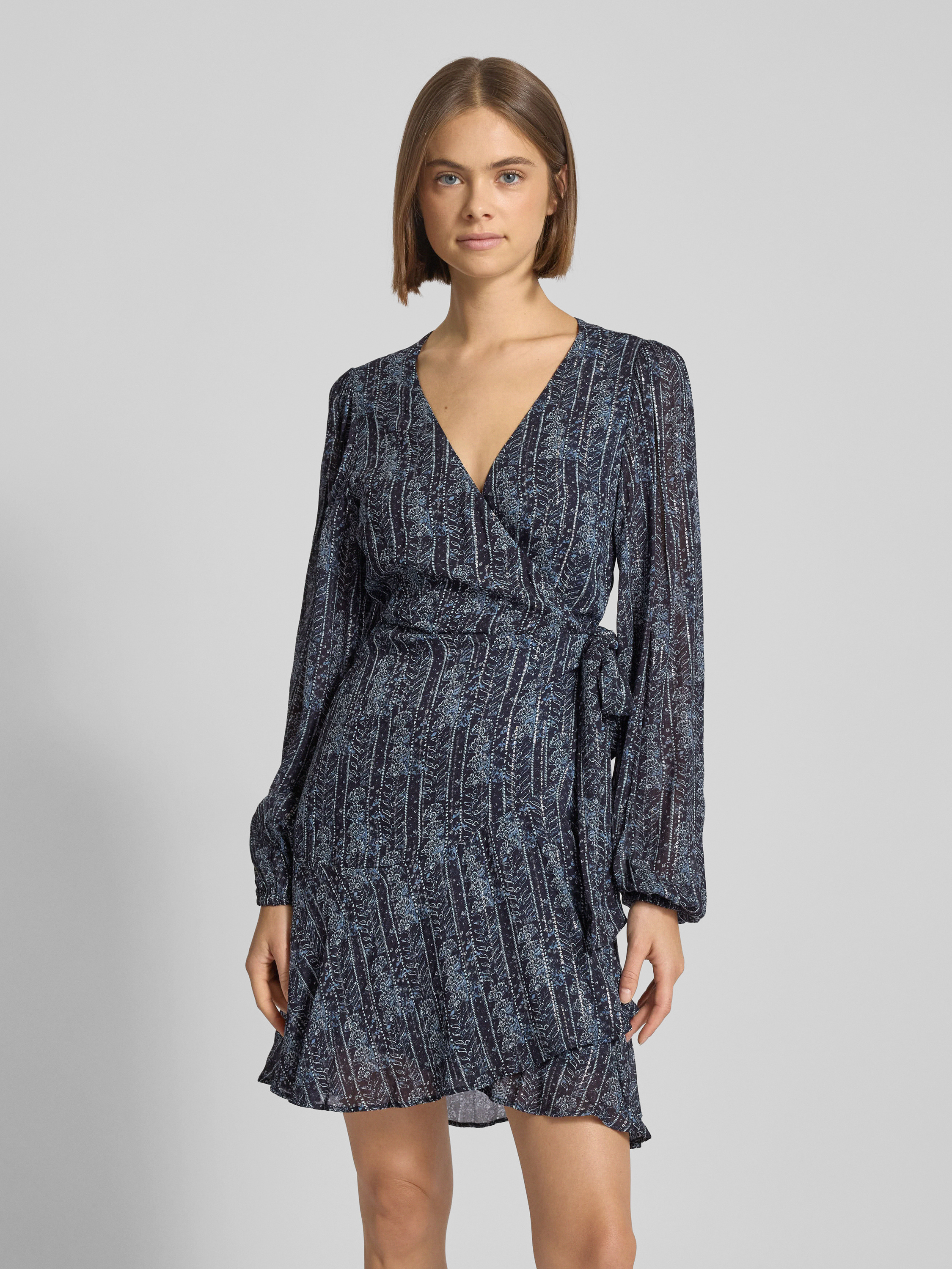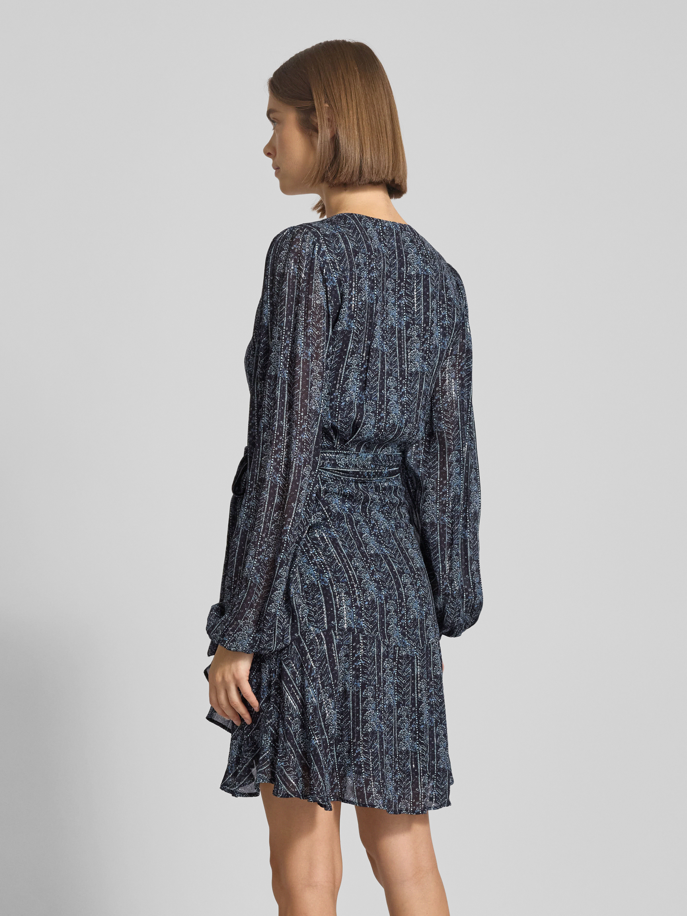 Sukienka kopertowa o dopasowanym kroju z detalami z efektownej przędzy model ‘MAISA’ - ciemnoniebieski