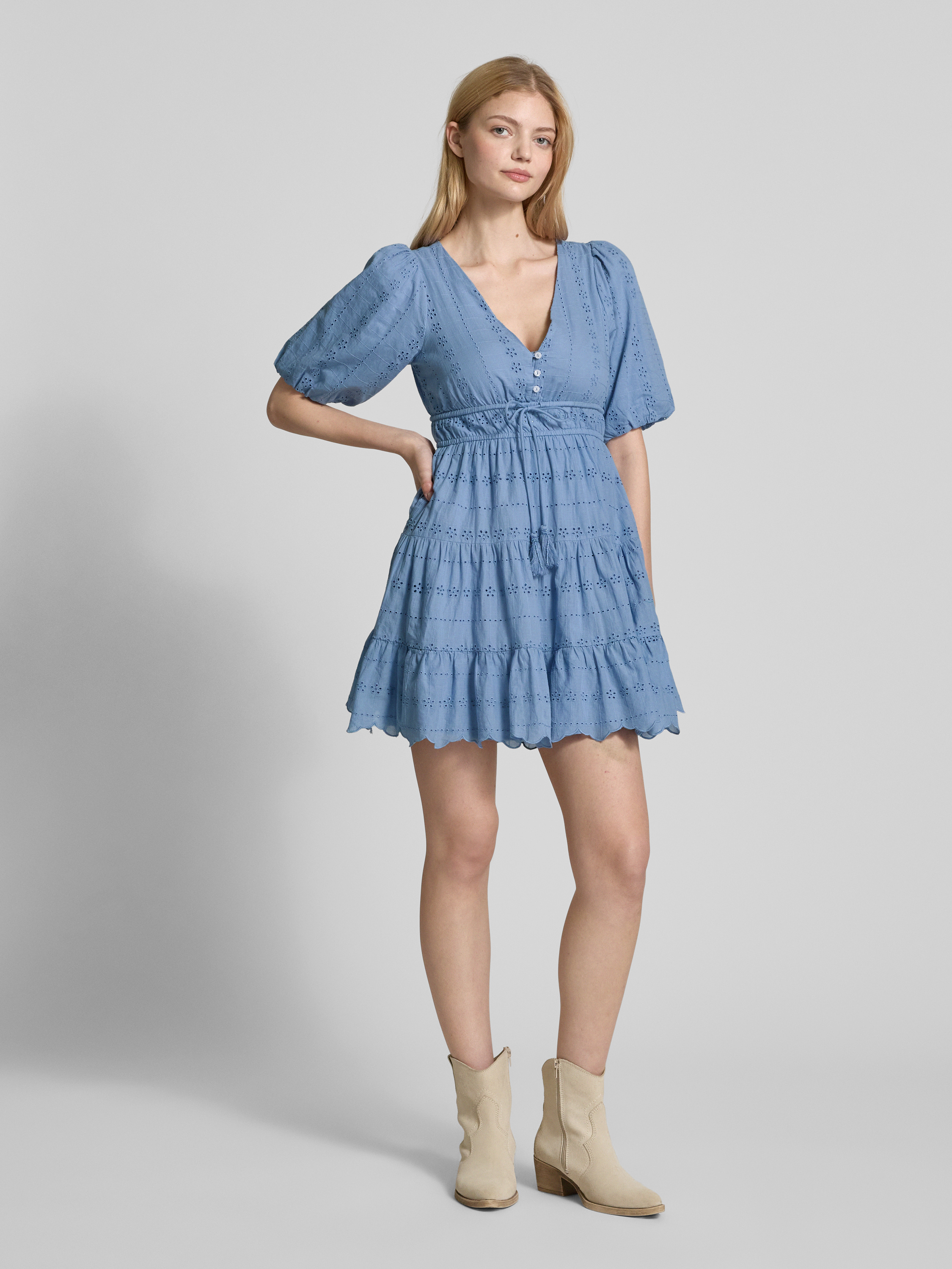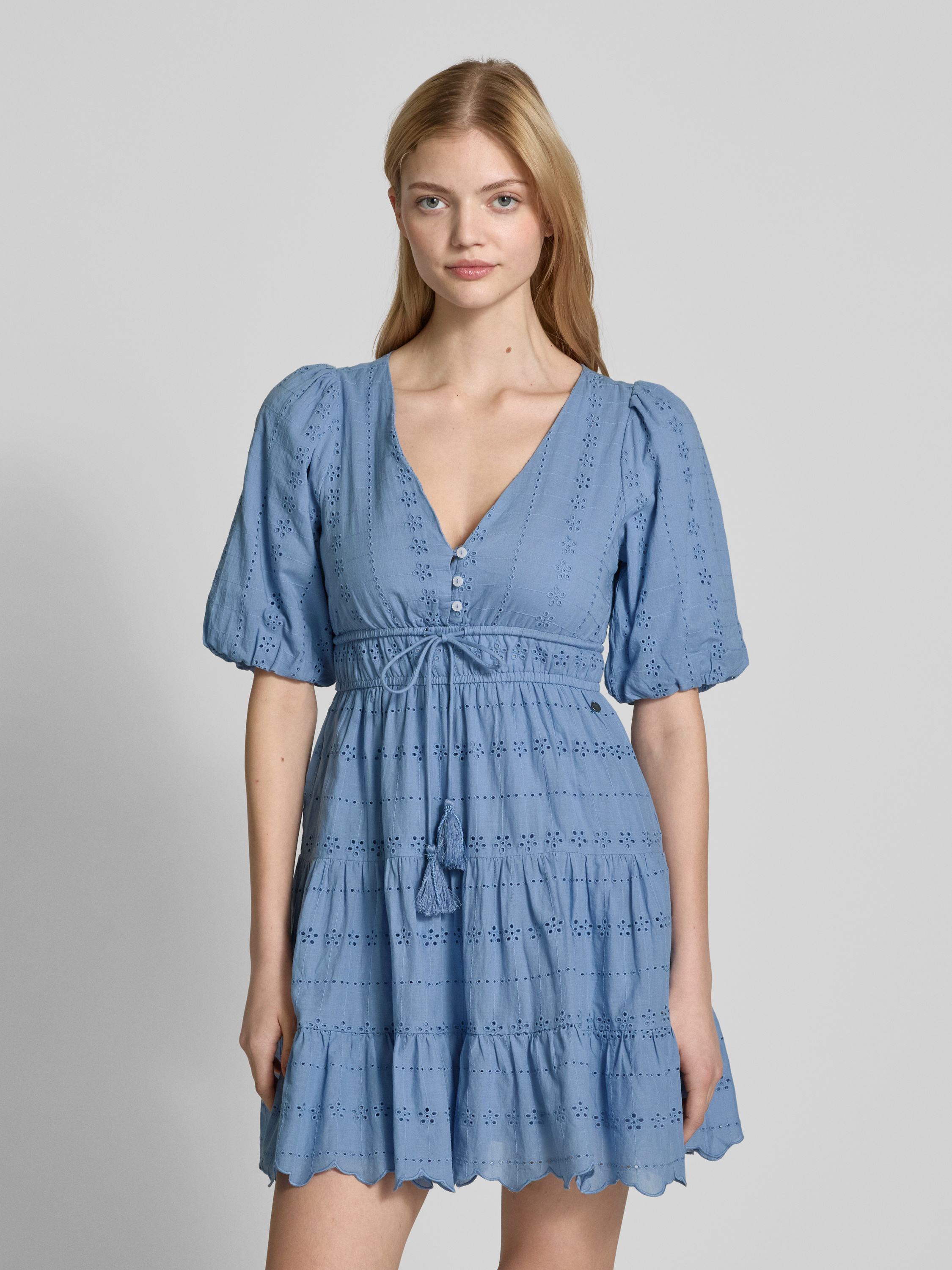 Sukienka mini z dekoltem w serek - niebieski