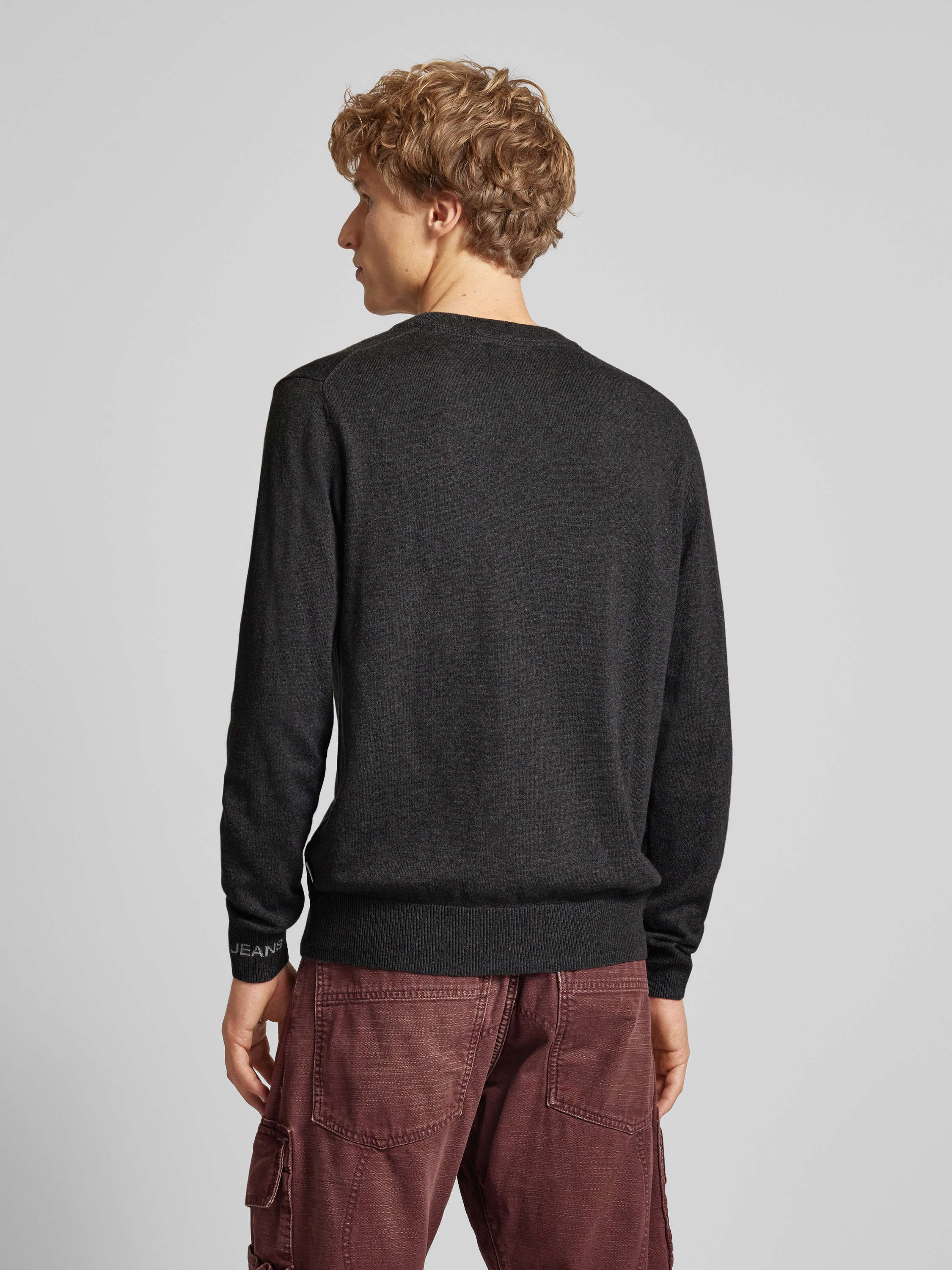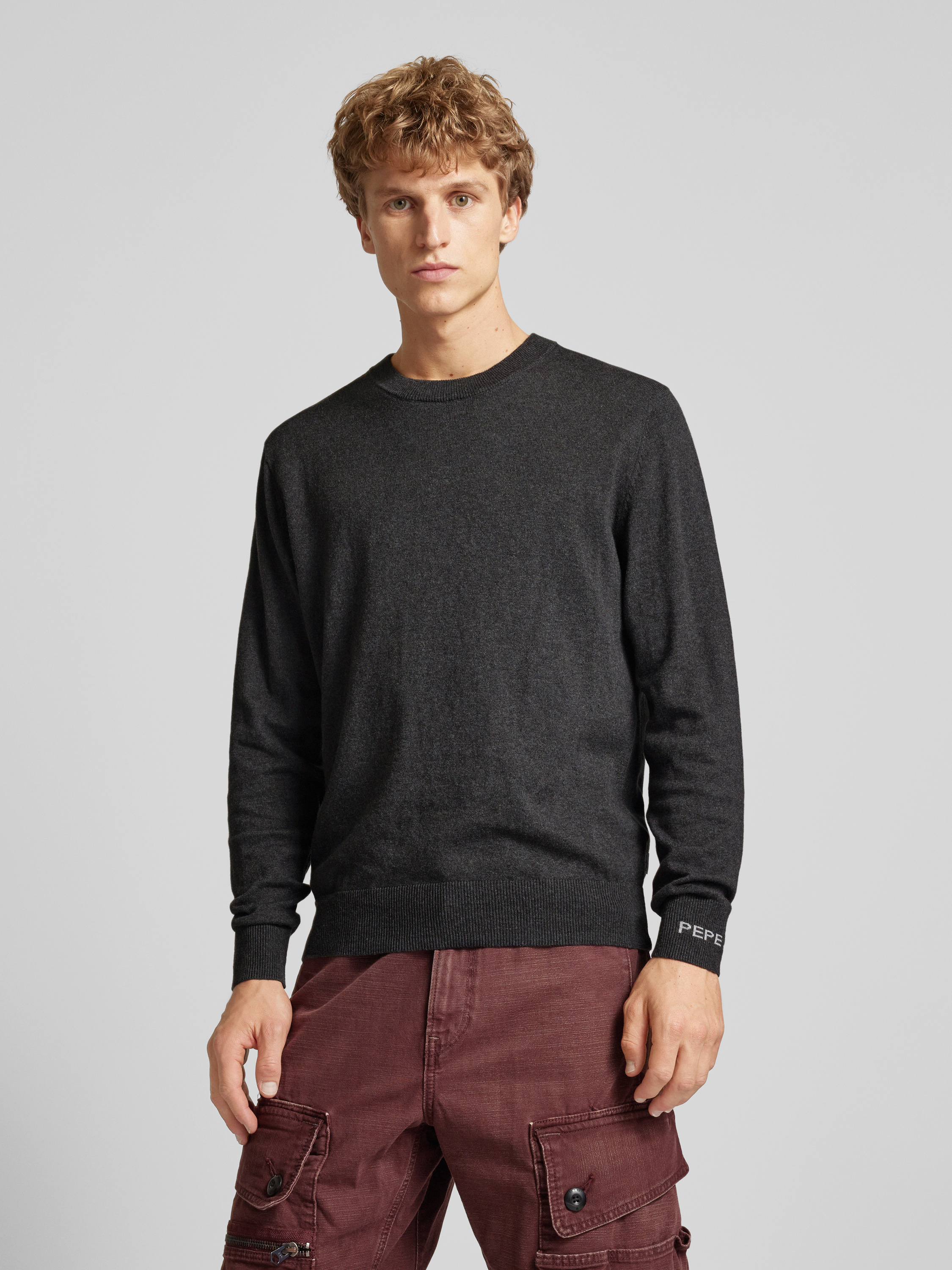 Sweter z dzianiny z okrągłym dekoltem model ‘Andre’ - antracytowy