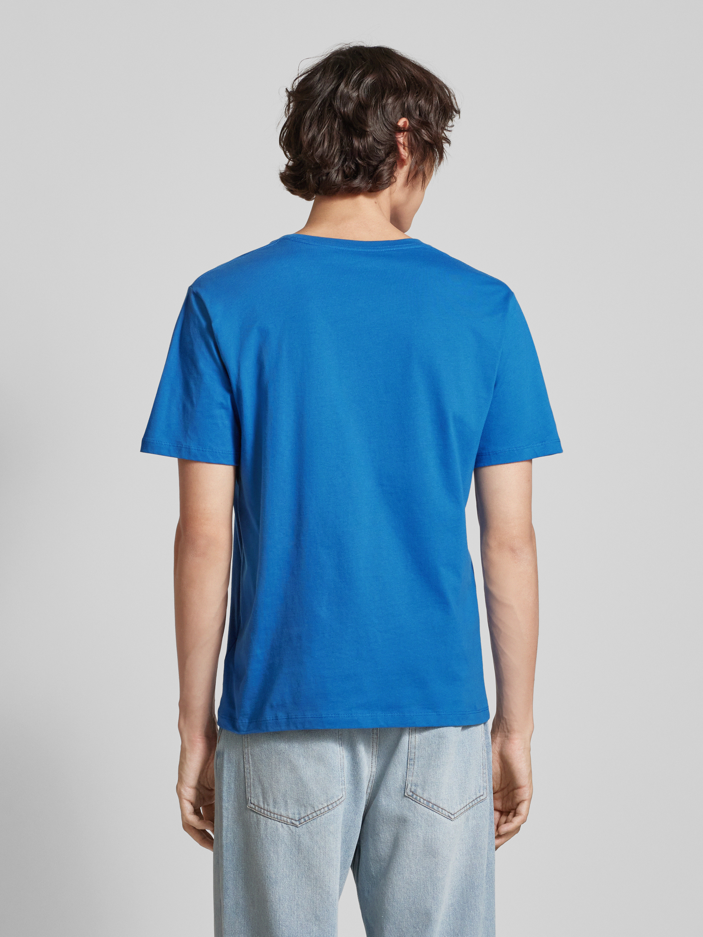 T-shirt z nadrukiem z logo model ‘EGGO’ - jeansowy niebieski