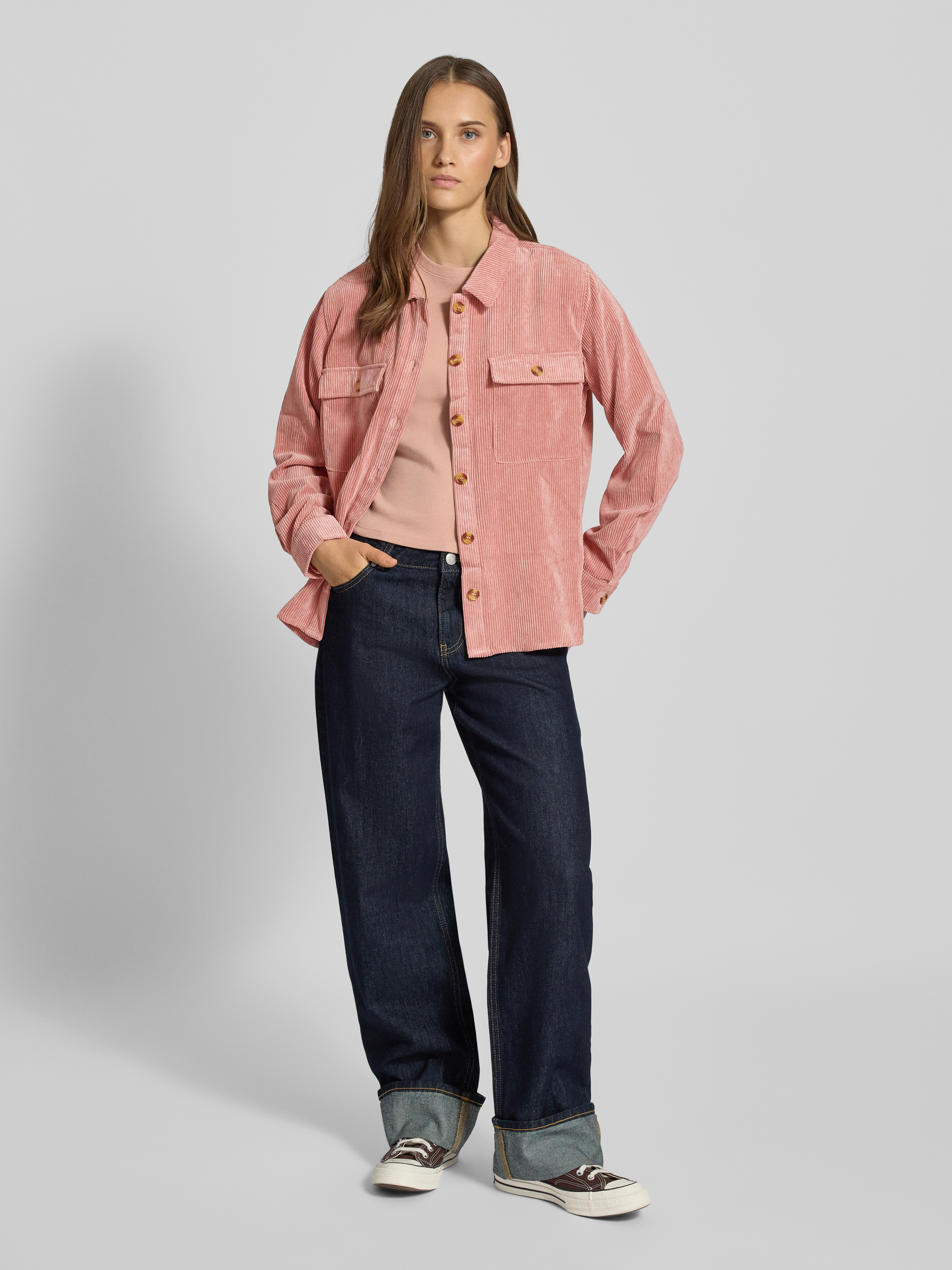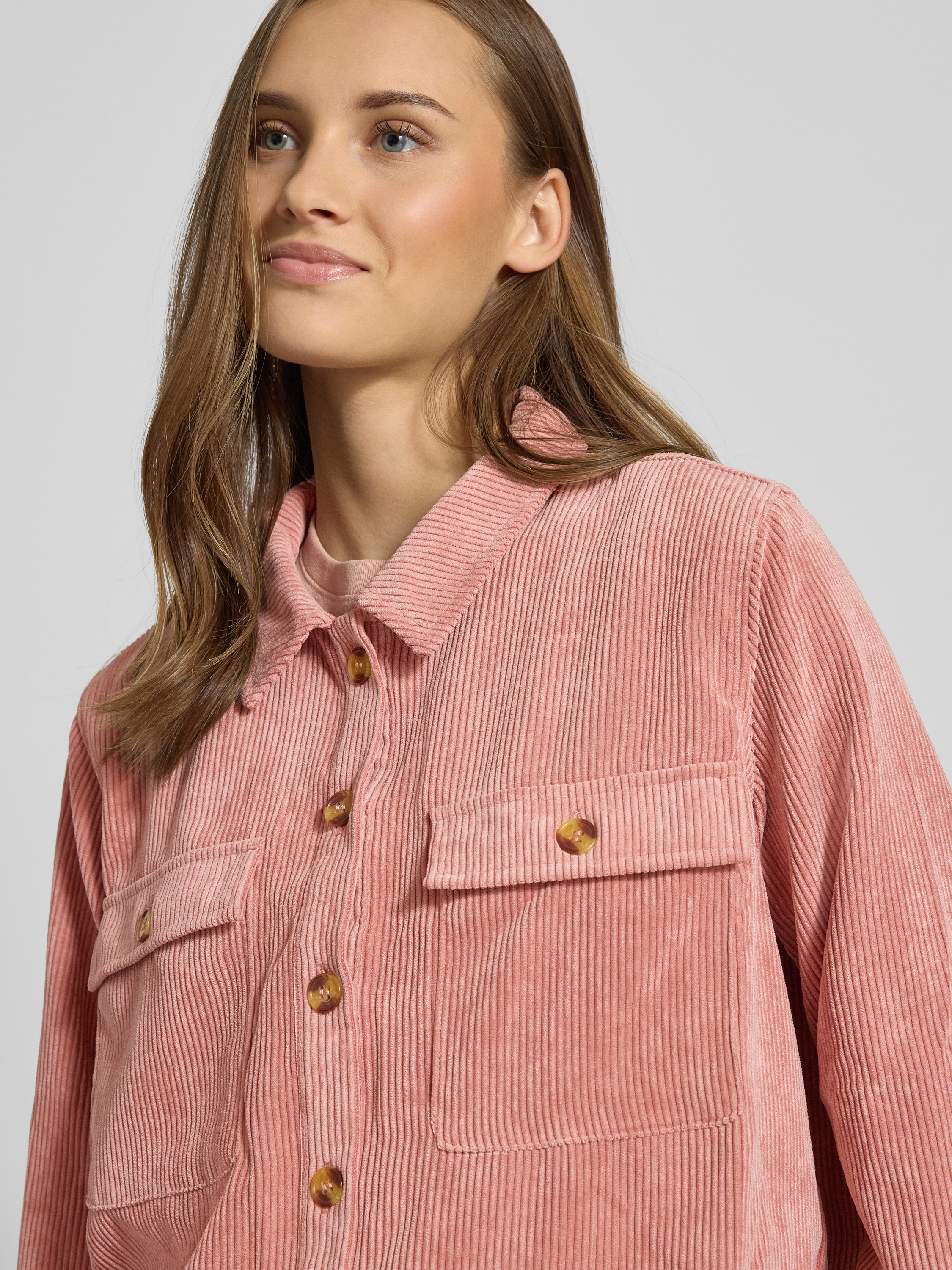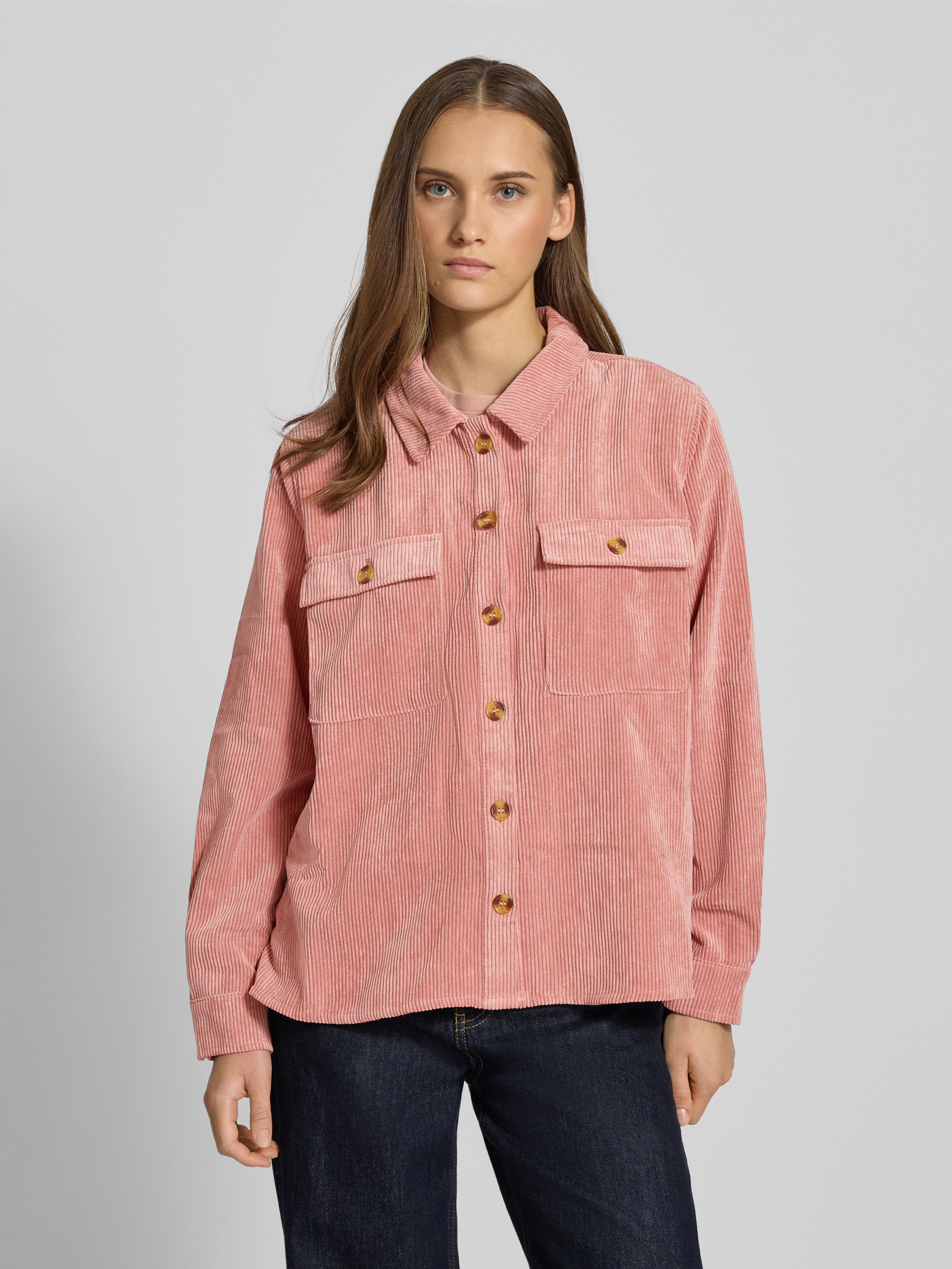 Bluzka koszulowa o luźnym kroju z imitacji sztruksu model ‘EFFI’ - różowawy