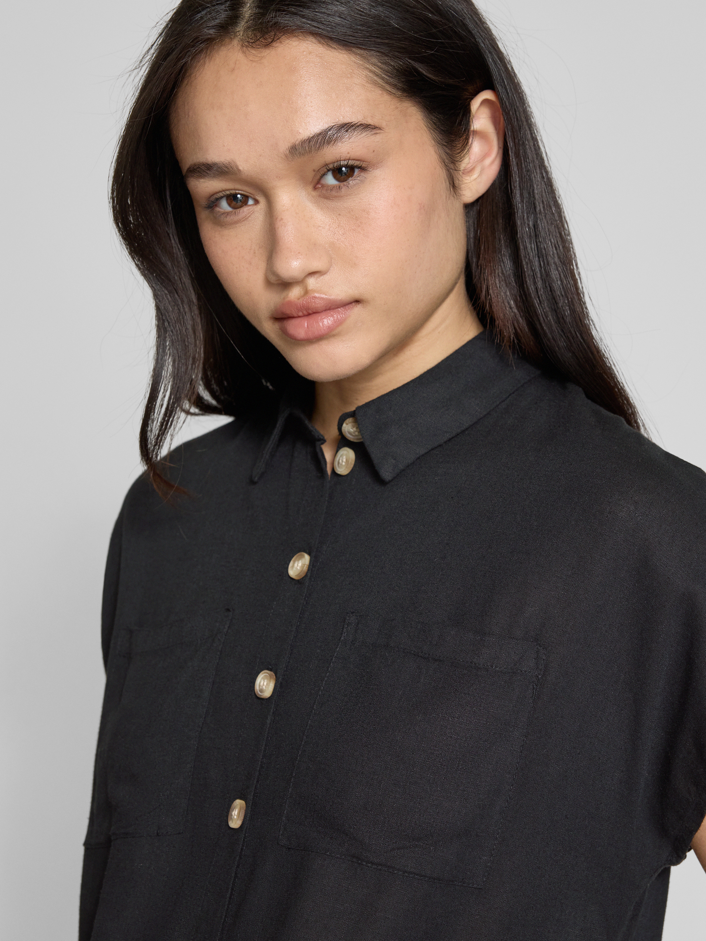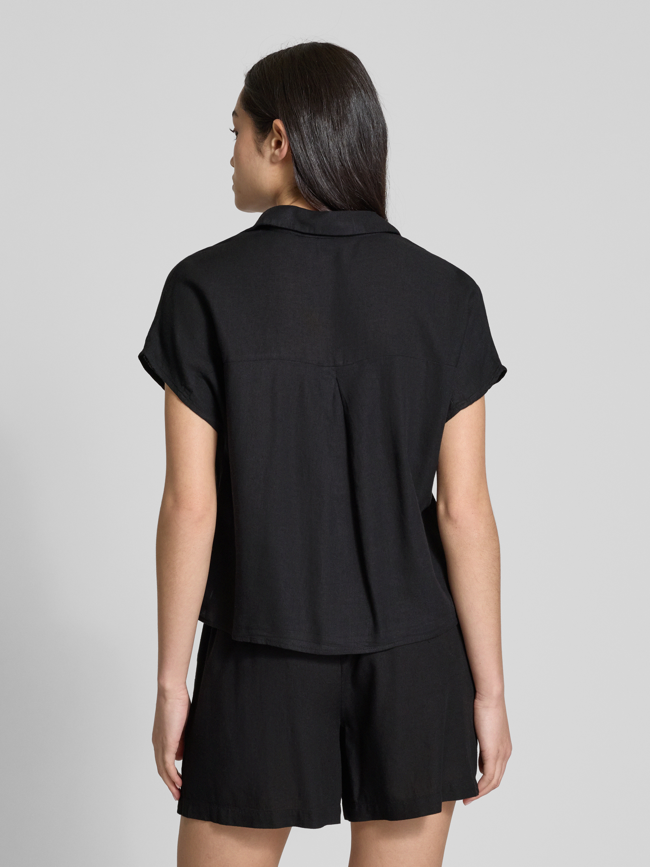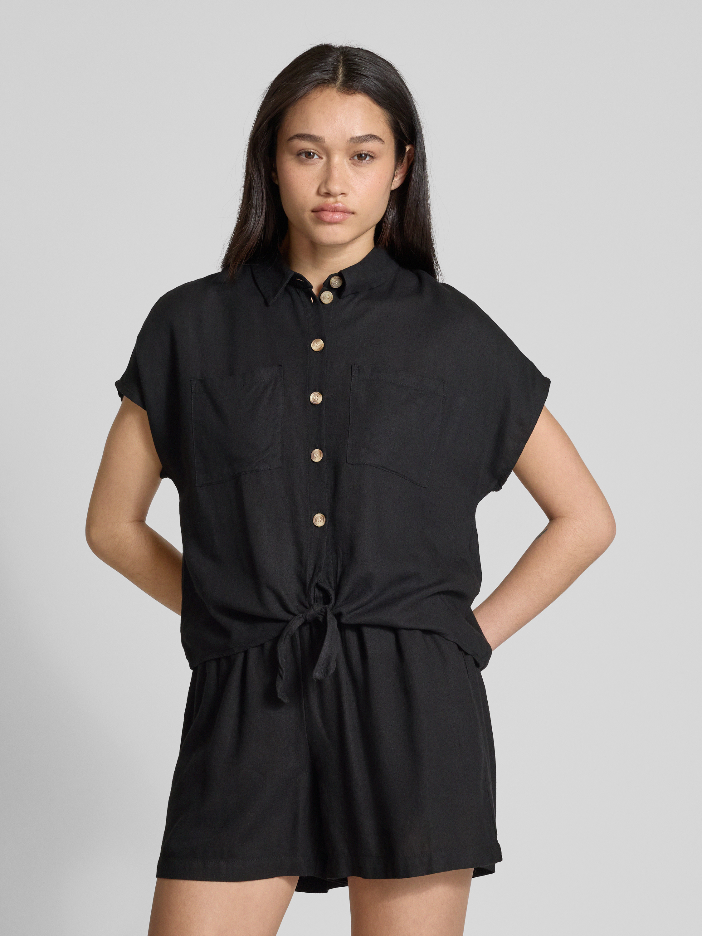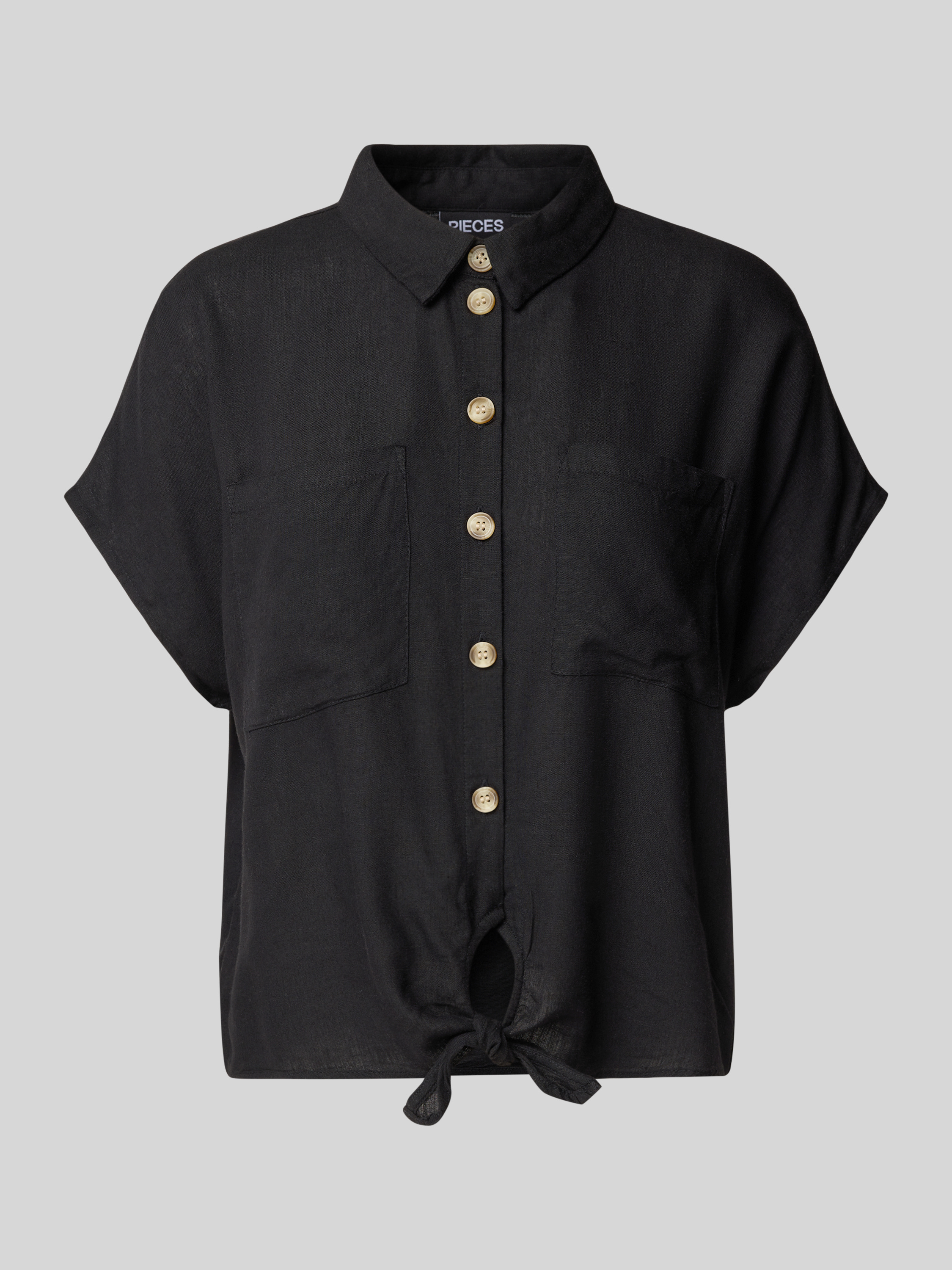 Bluzka koszulowa o pudełkowym kroju z wiązanym detalem model ‘PIA’ - czarny