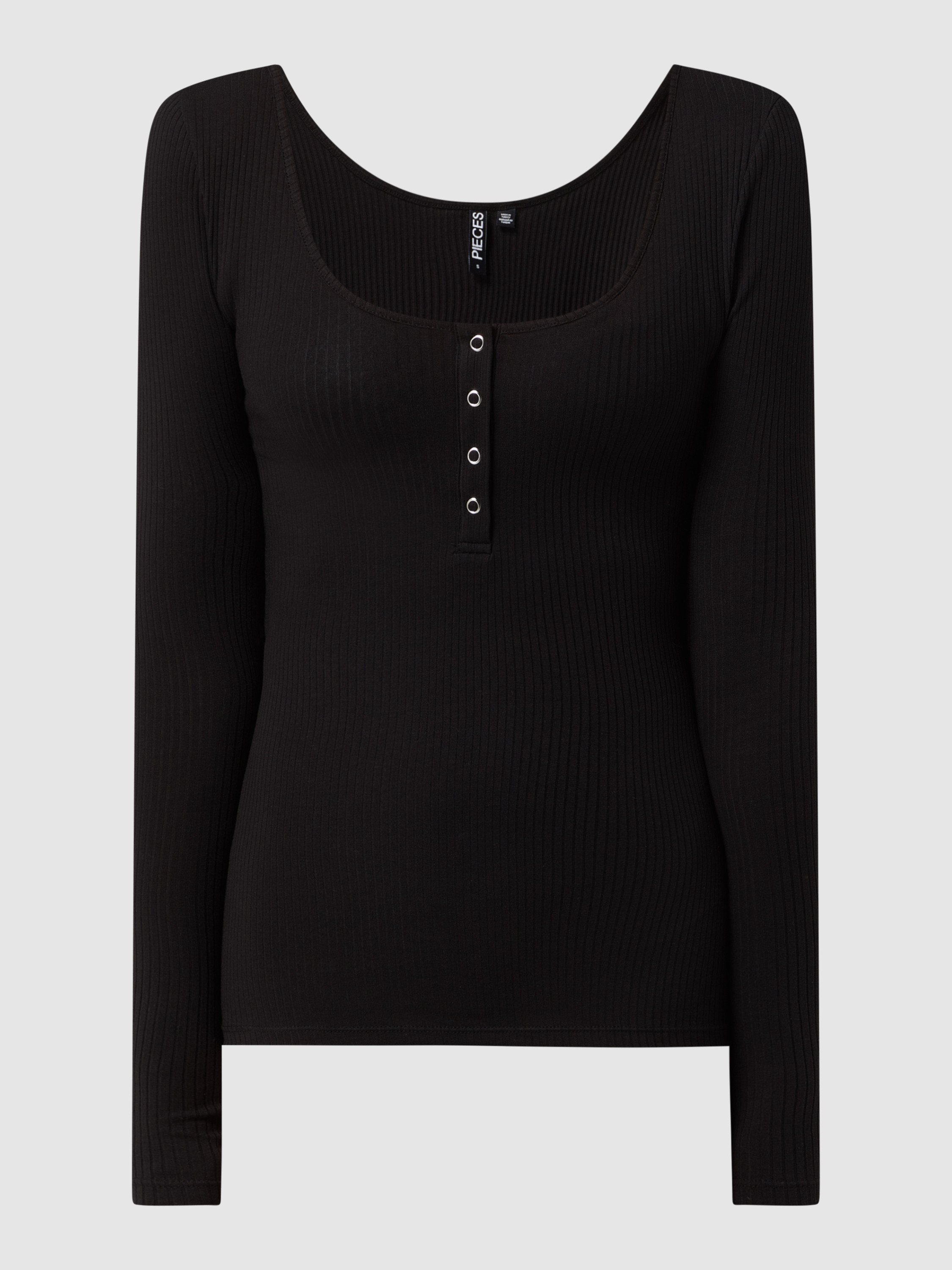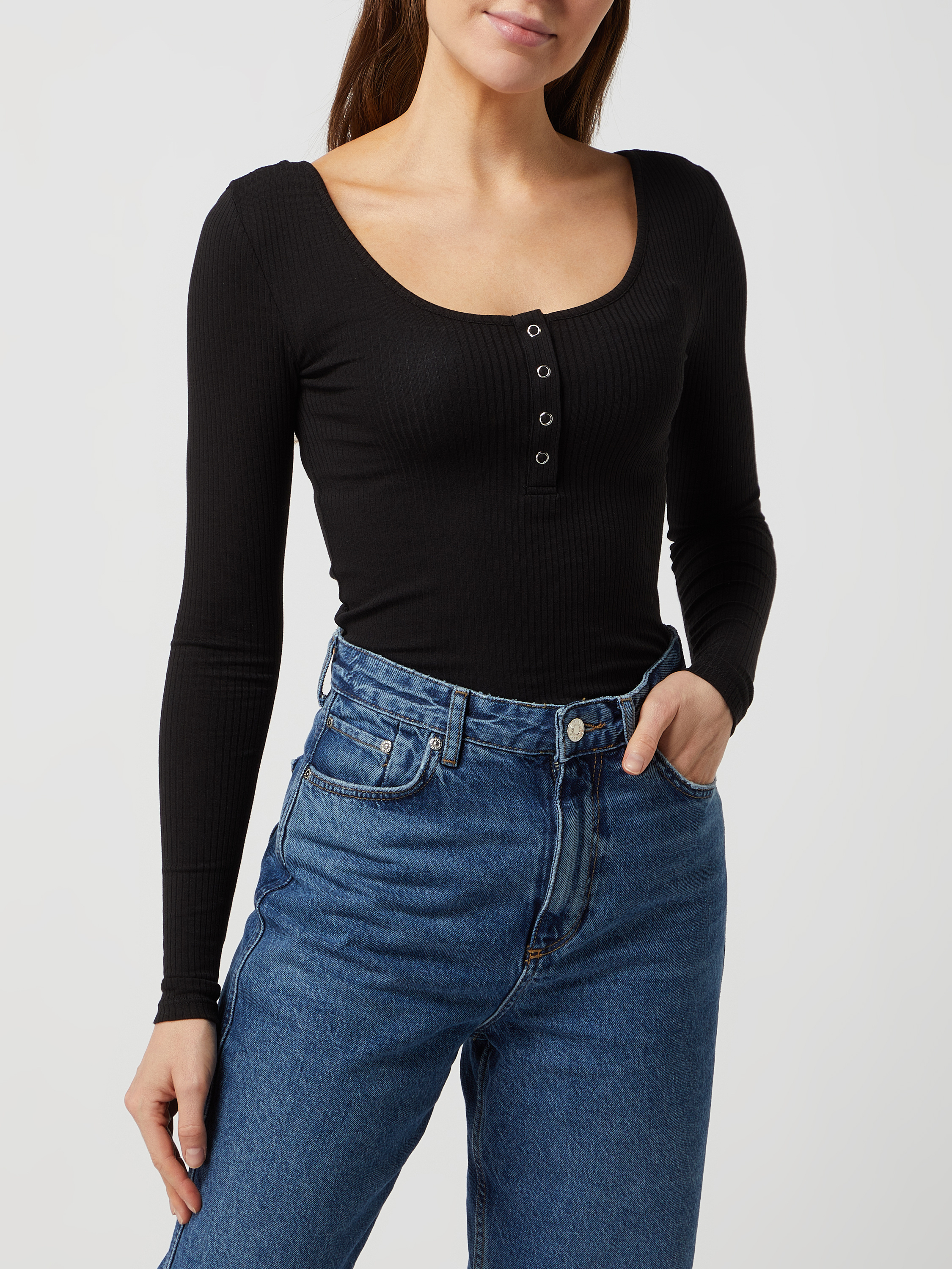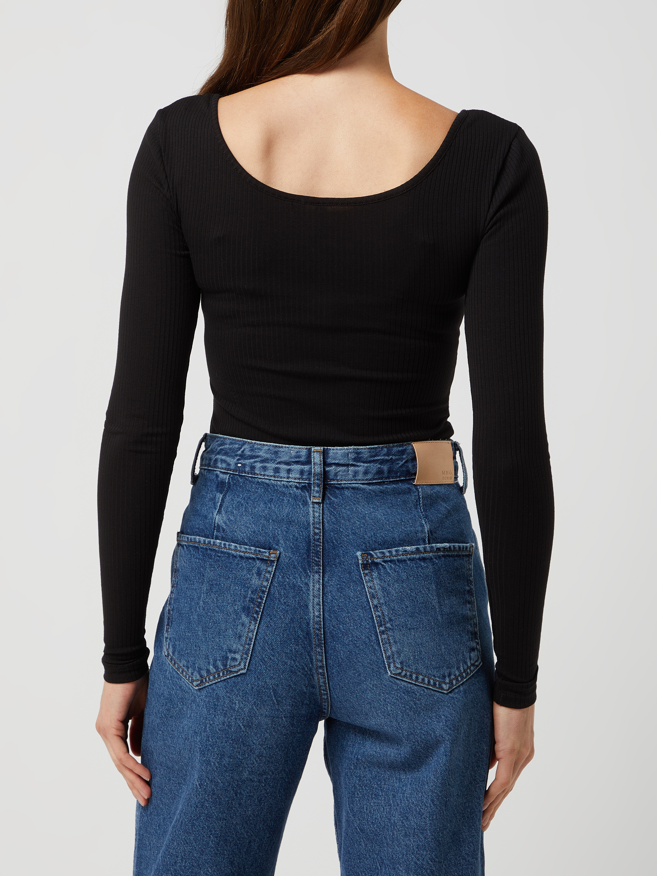 Bluzka serafino z długim rękawem i dodatkiem streczu - czarny