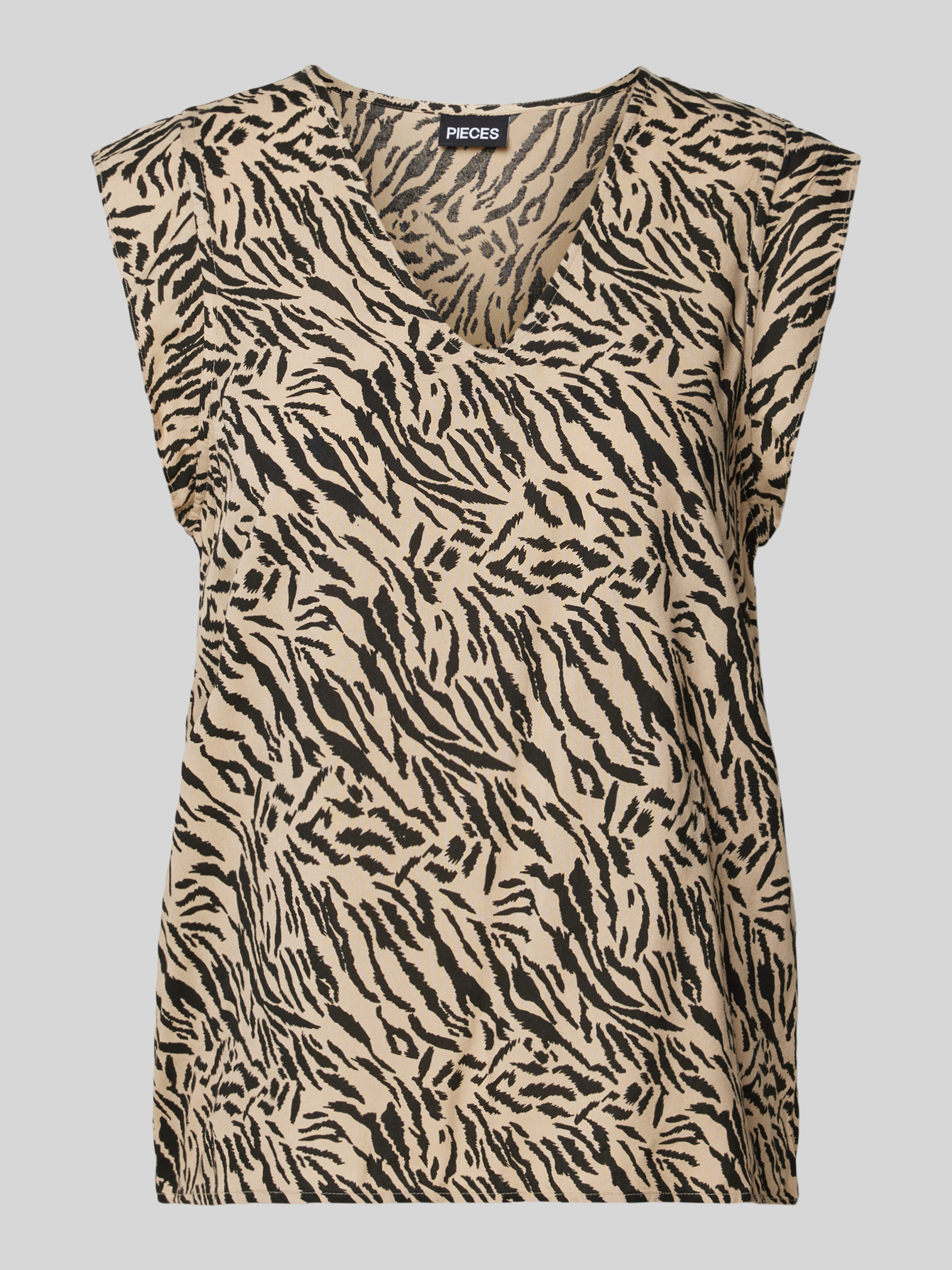 Bluzka z wiskozy z dekoltem w serek model ‘NYA’ - piaskowy