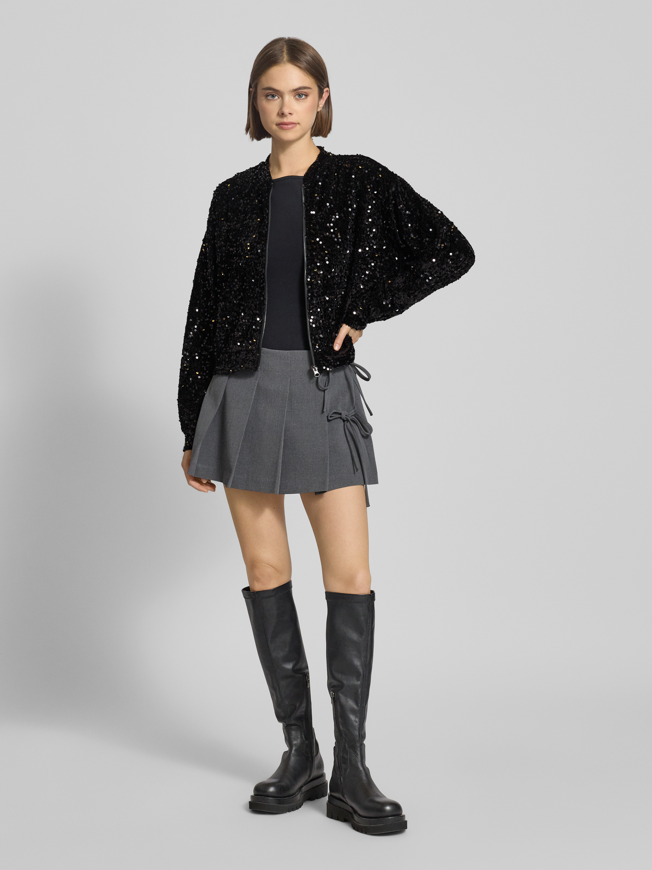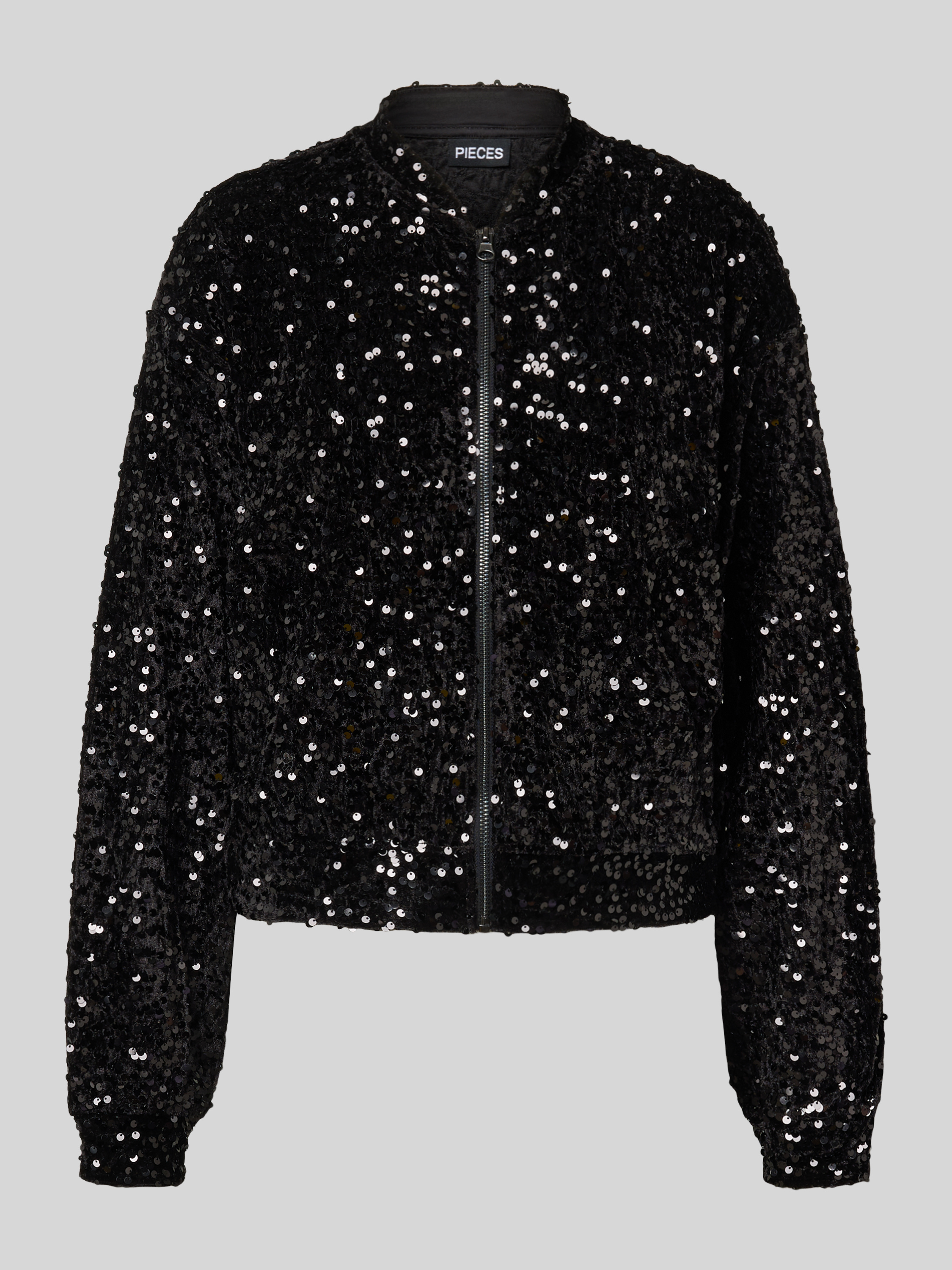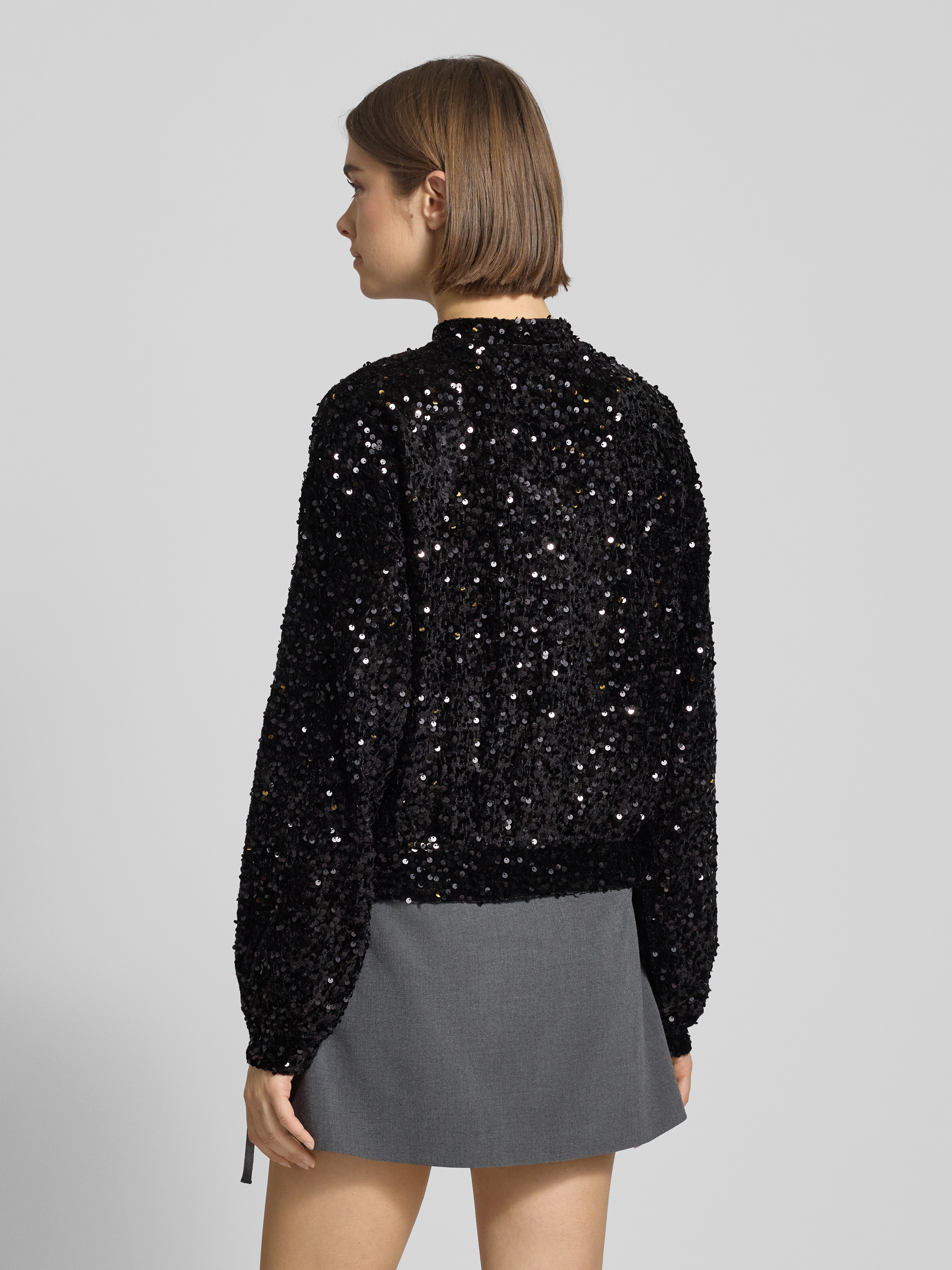 Bluzon o kroju regular fit z cekinowym obszyciem model ‘KAM’ - czarny