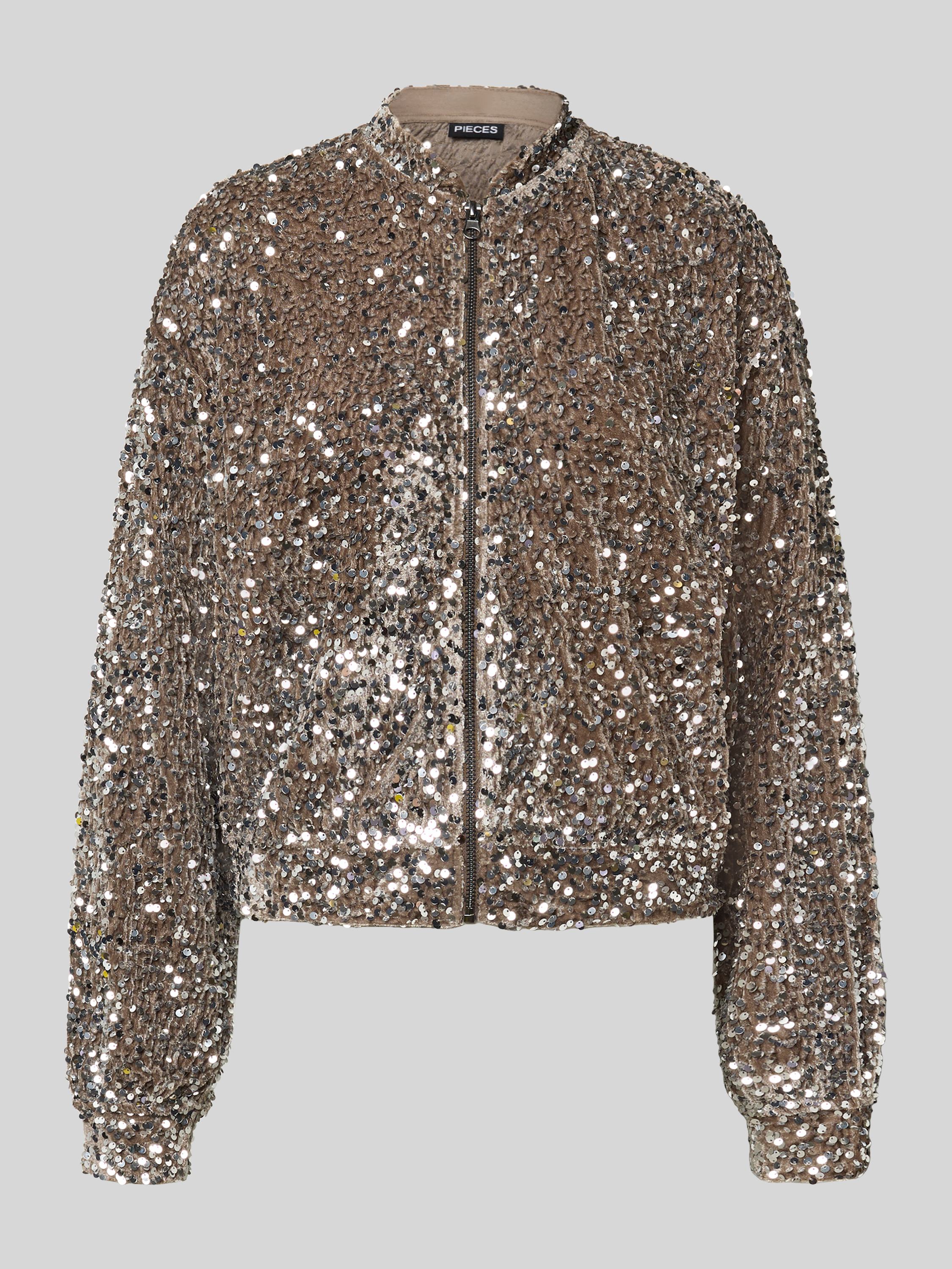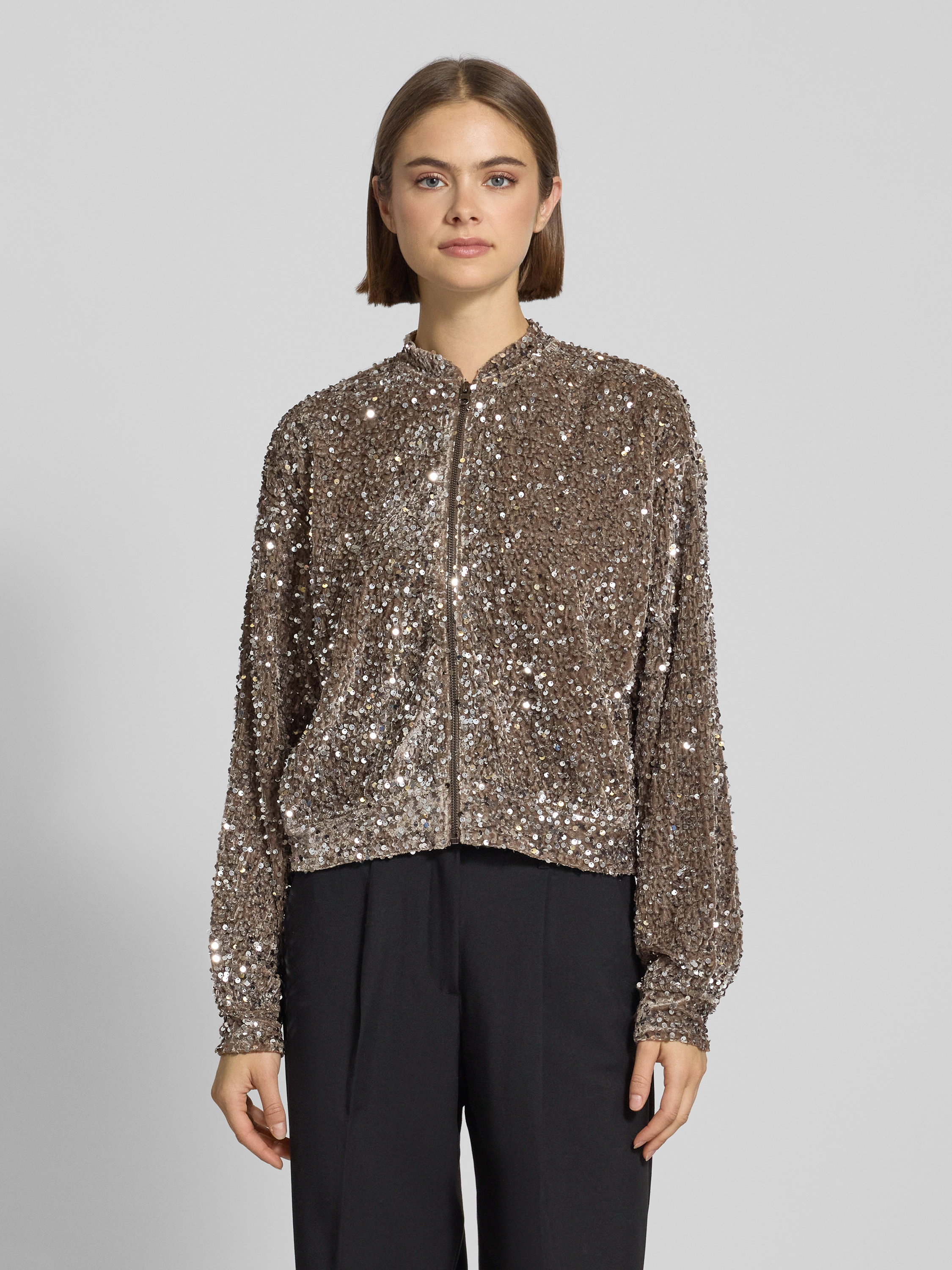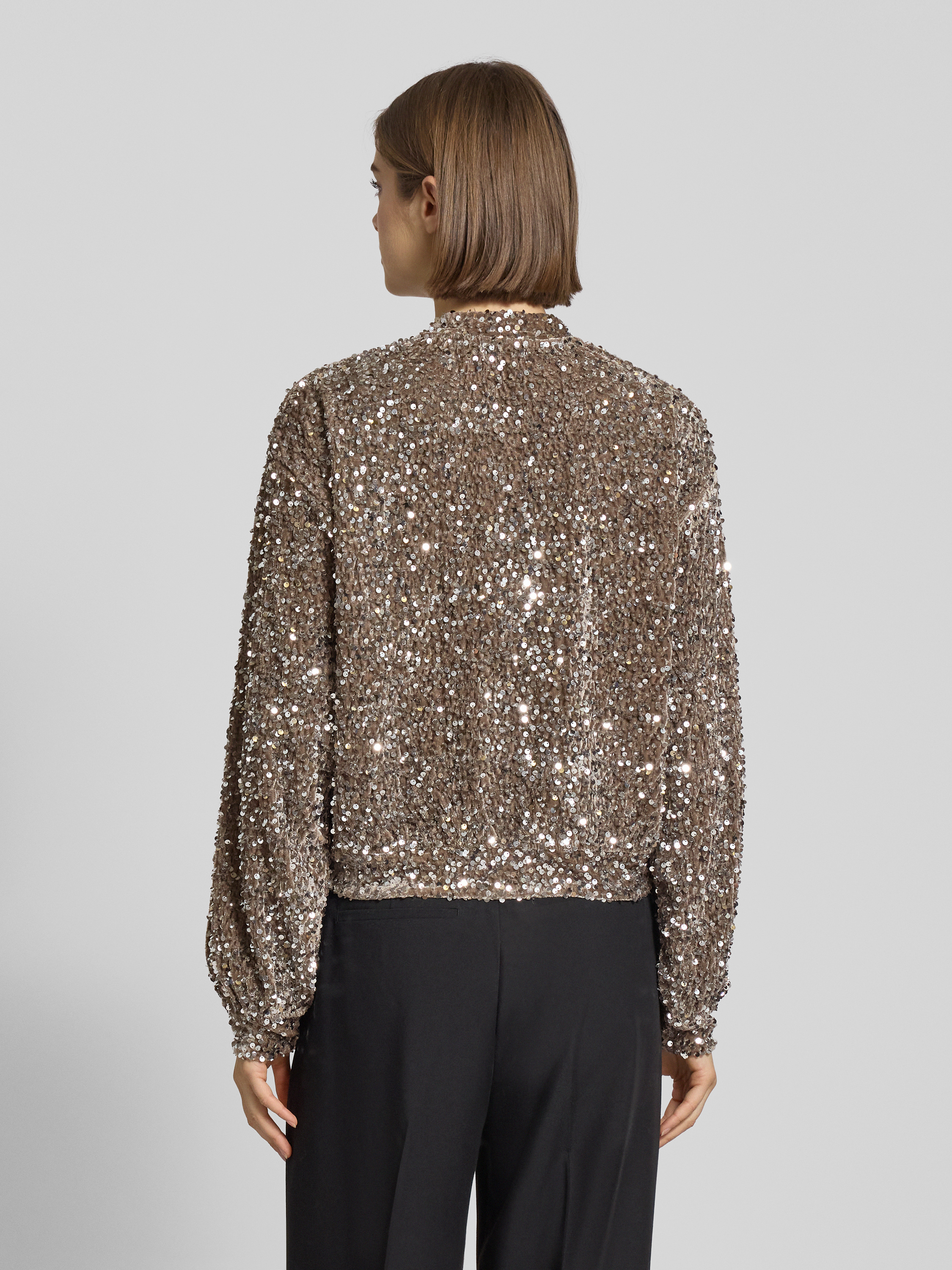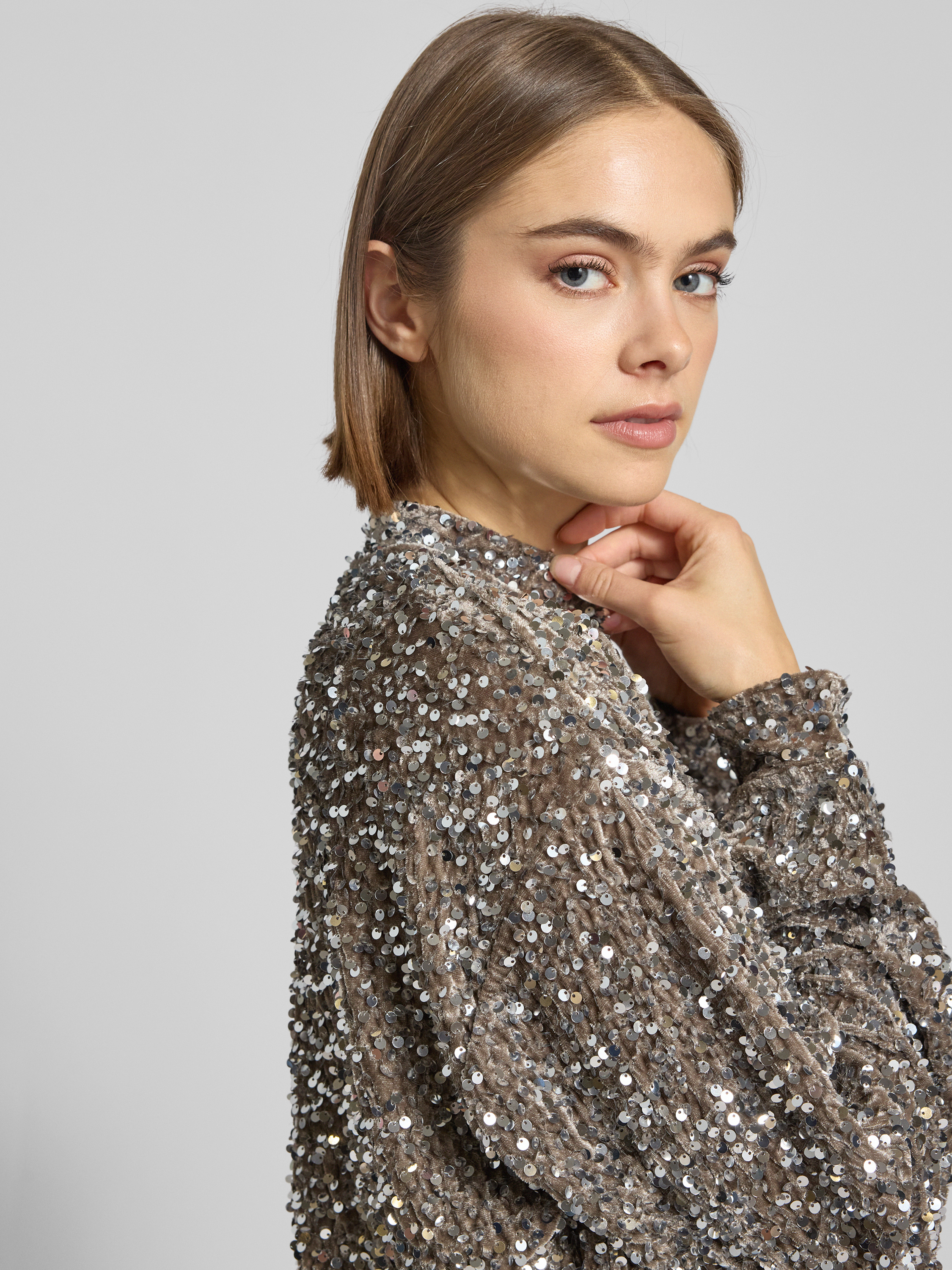 Bluzon o kroju regular fit z cekinowym obszyciem model ‘KAM’ - szarobrązowy