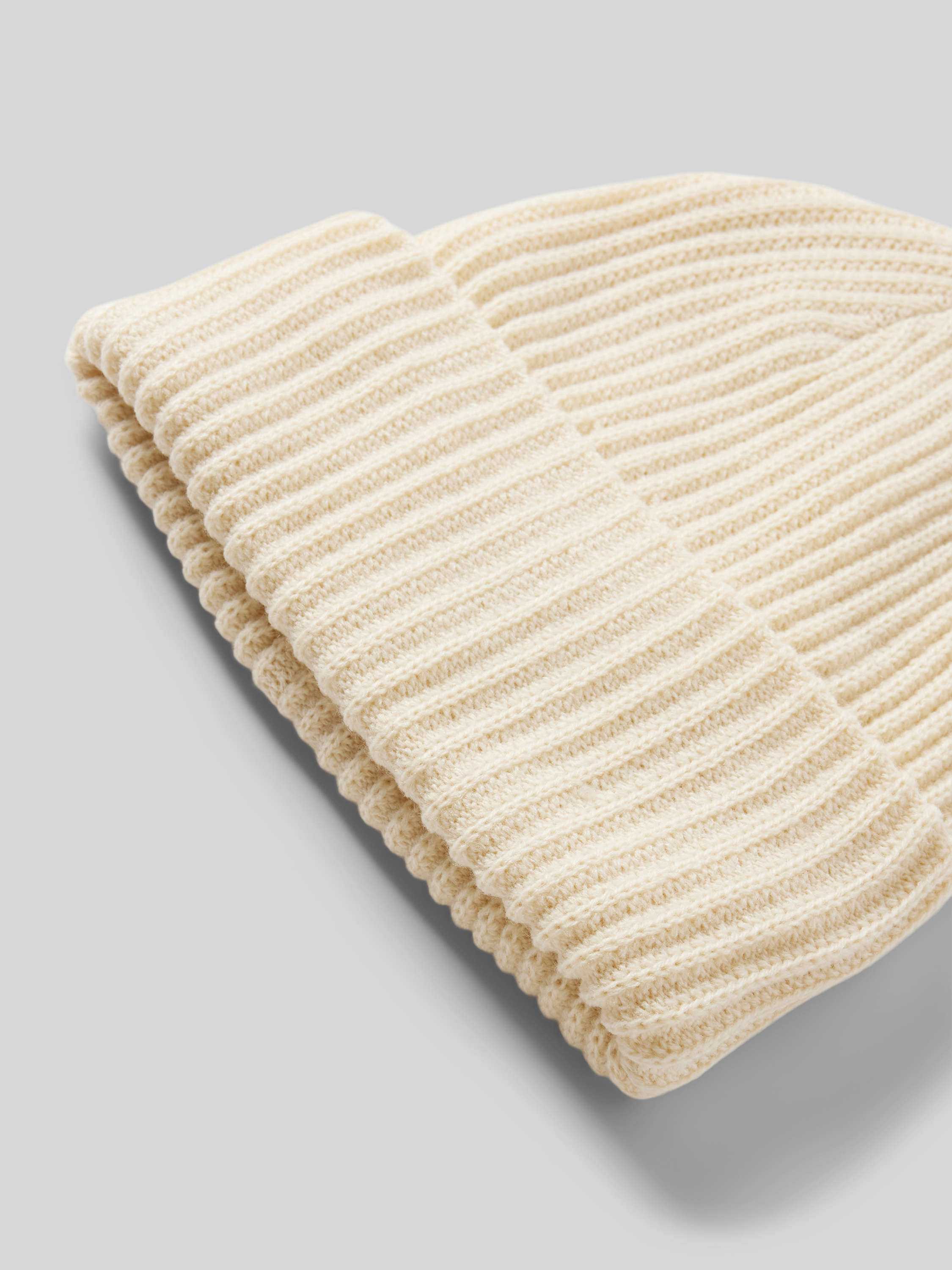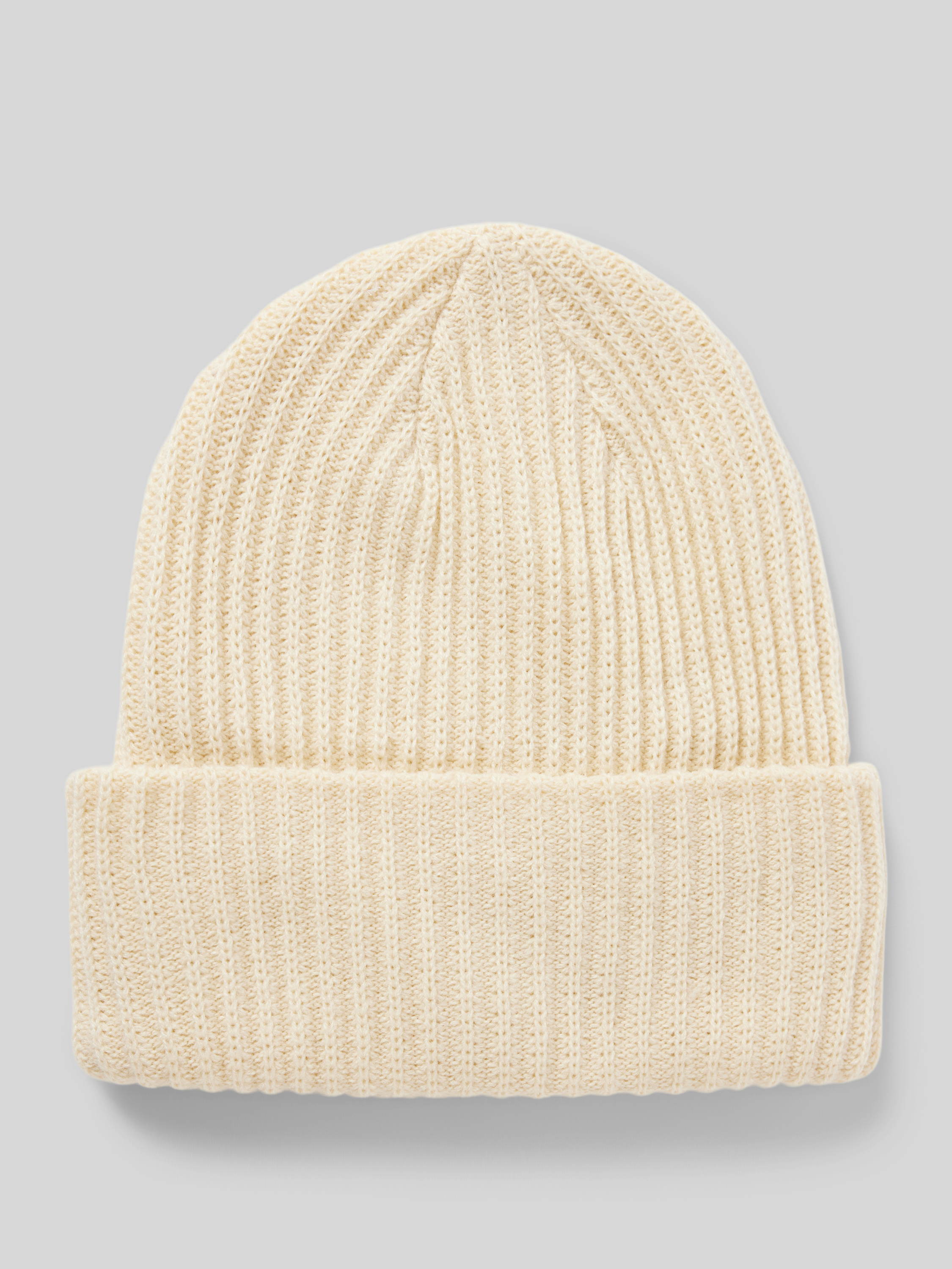 Czapka beanie z prążowanej dzianiny z brzegiem model ‘HEXO’ - piaskowy