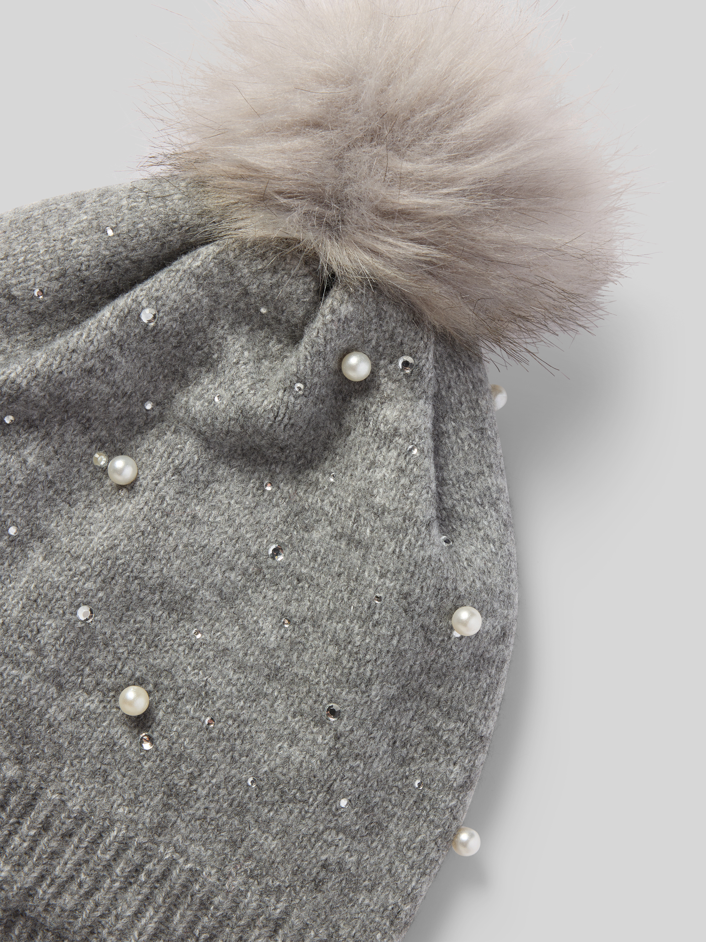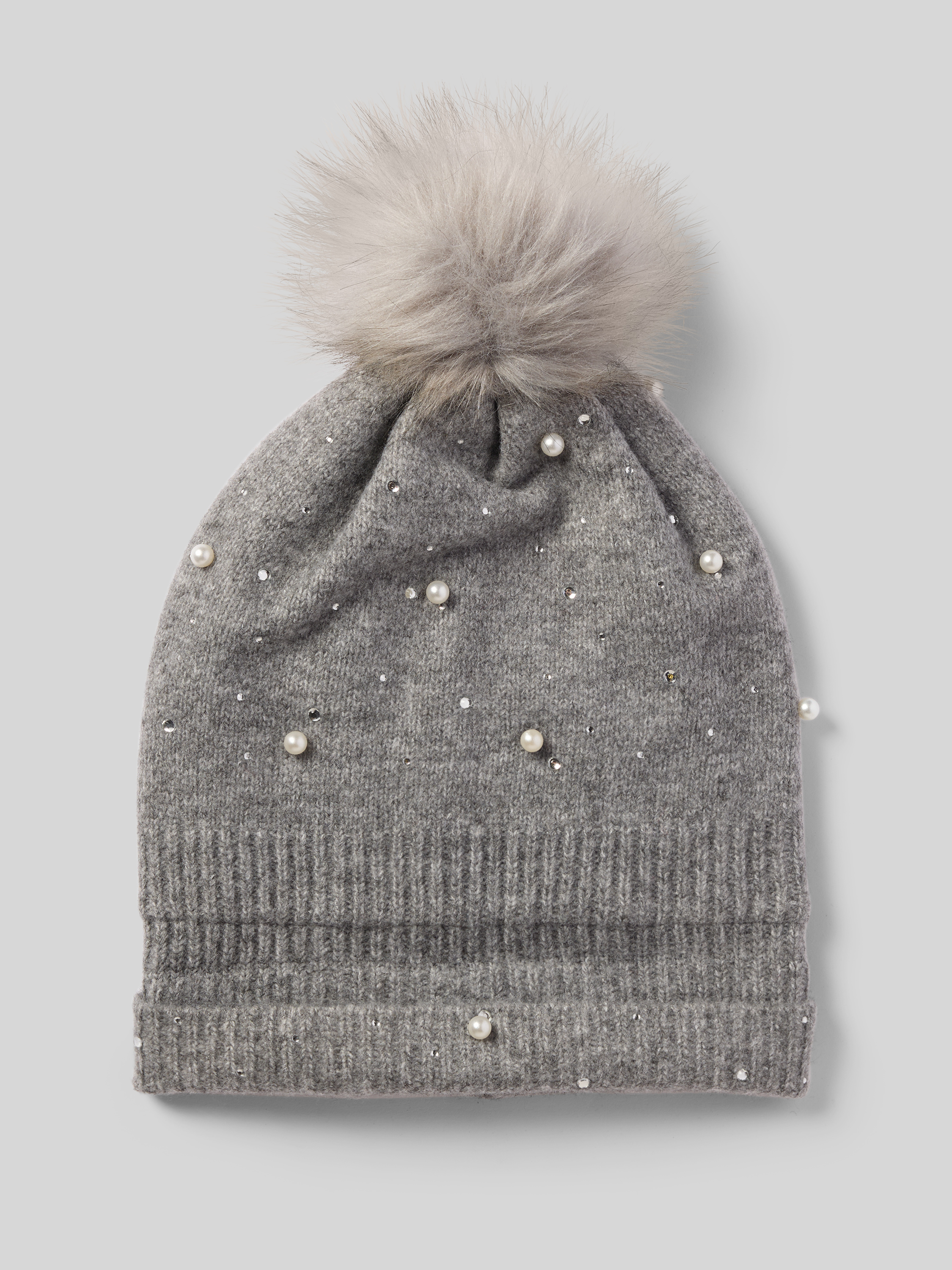 Czapka z pomponem i dodatkiem wełny model ‘JAROLINE’ - średnioszary