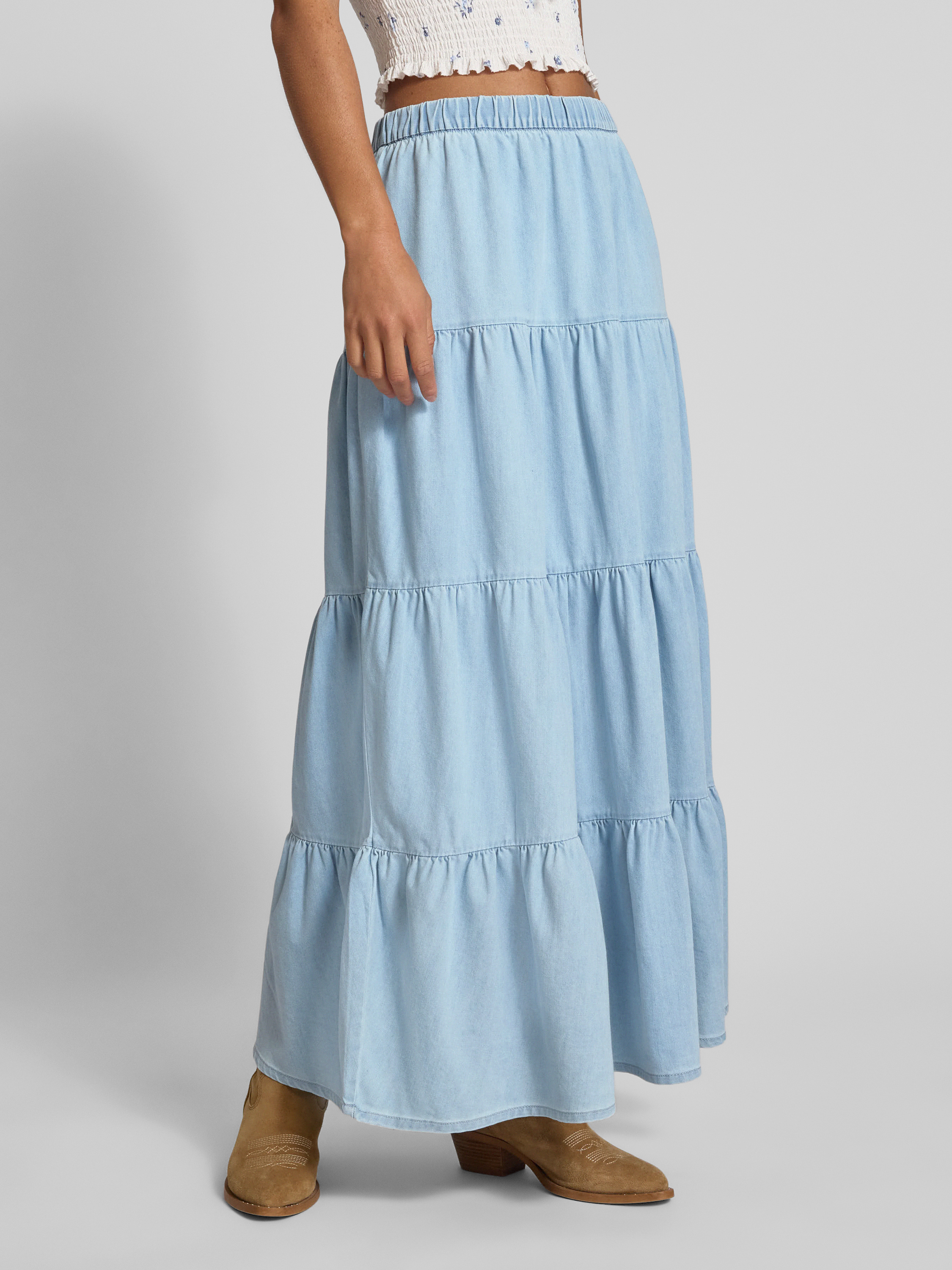 Długa spódnica jeansowa z mieszanki bawełny model ‘TULA’ - jasnoniebieski