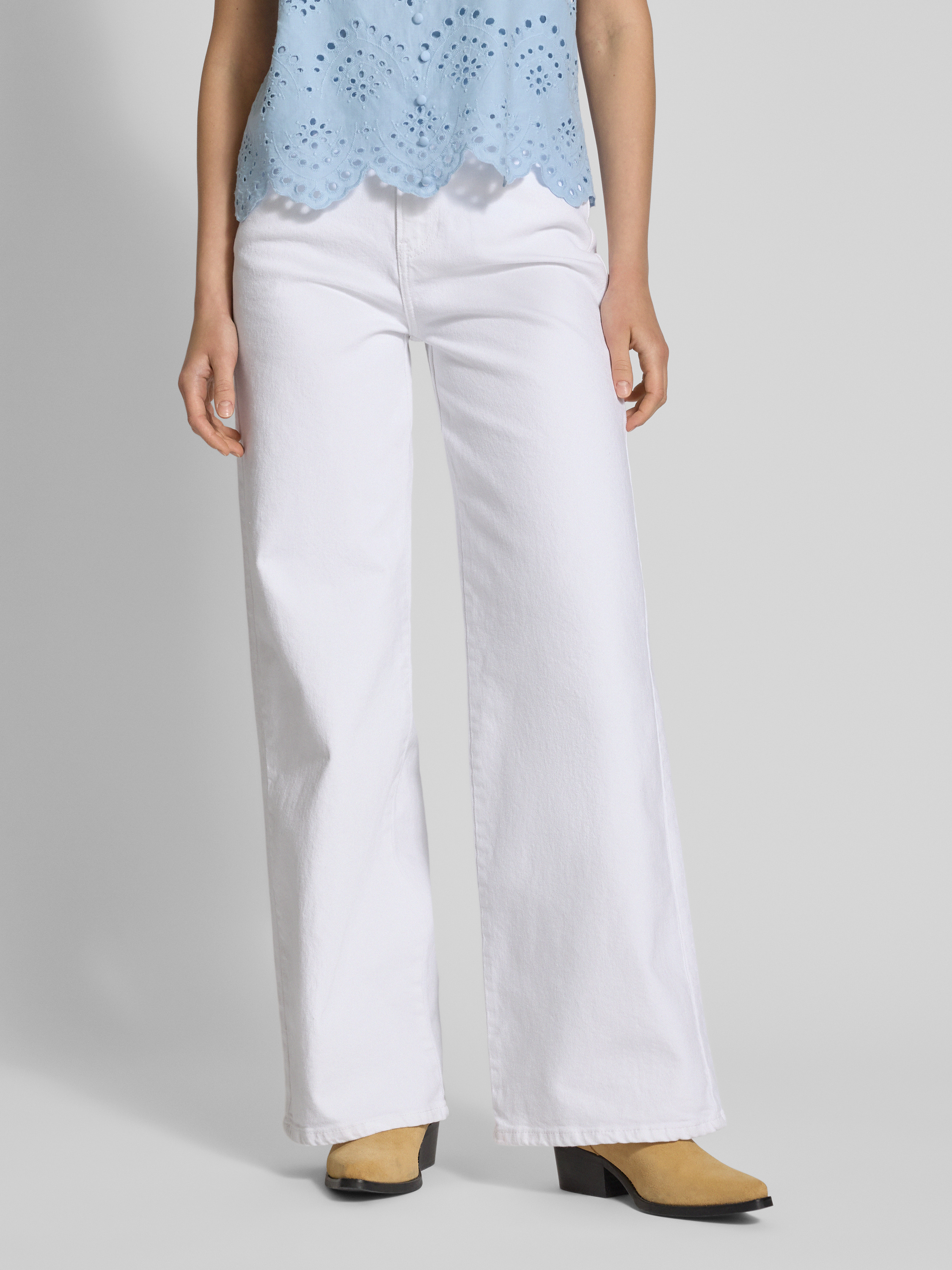 Jeansy o kroju wide fit z mieszanki bawełny model ‘SELMA’ - biały