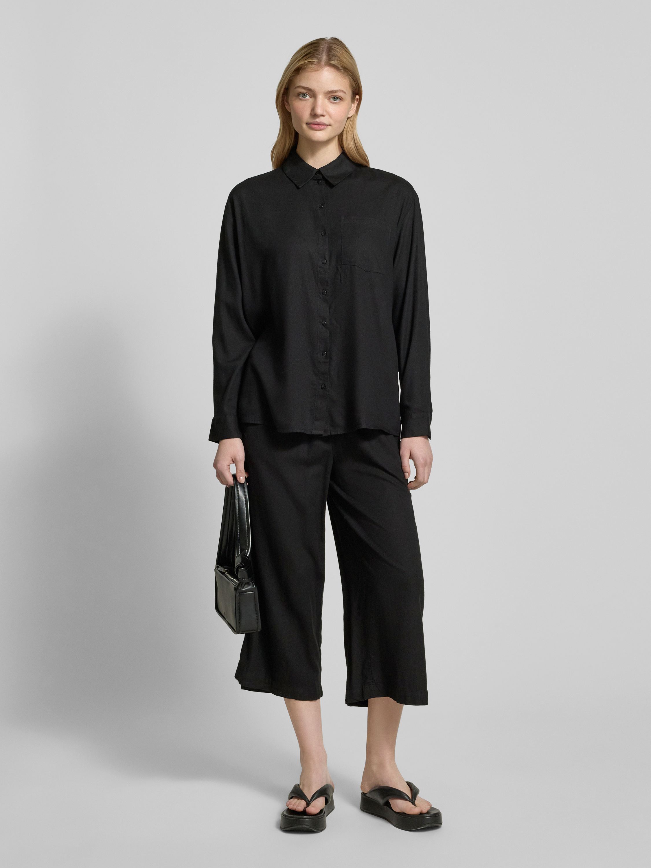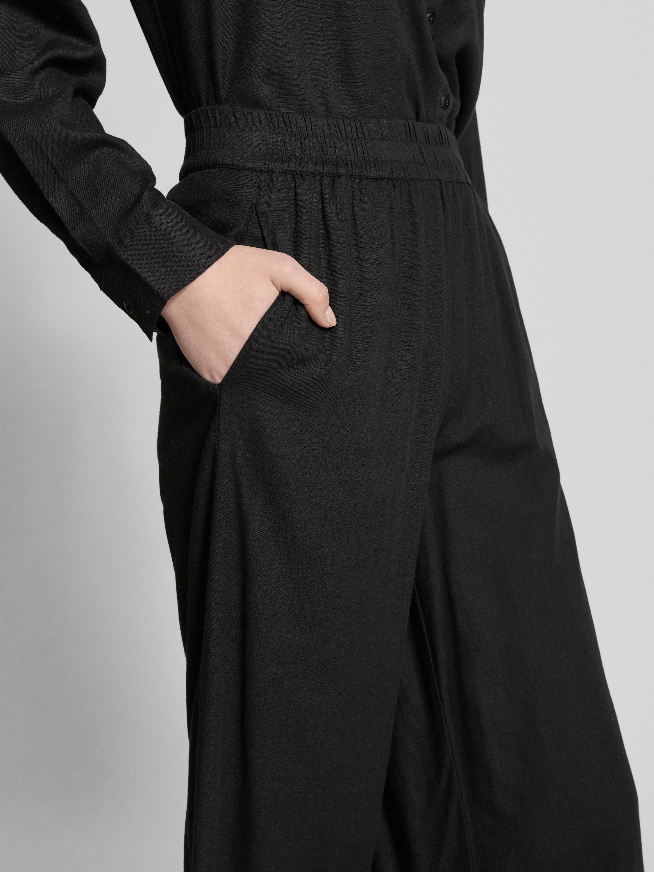 Kuloty o luźnym kroju z mieszanki wiskozy i lnu model ‘PIA’ - czarny