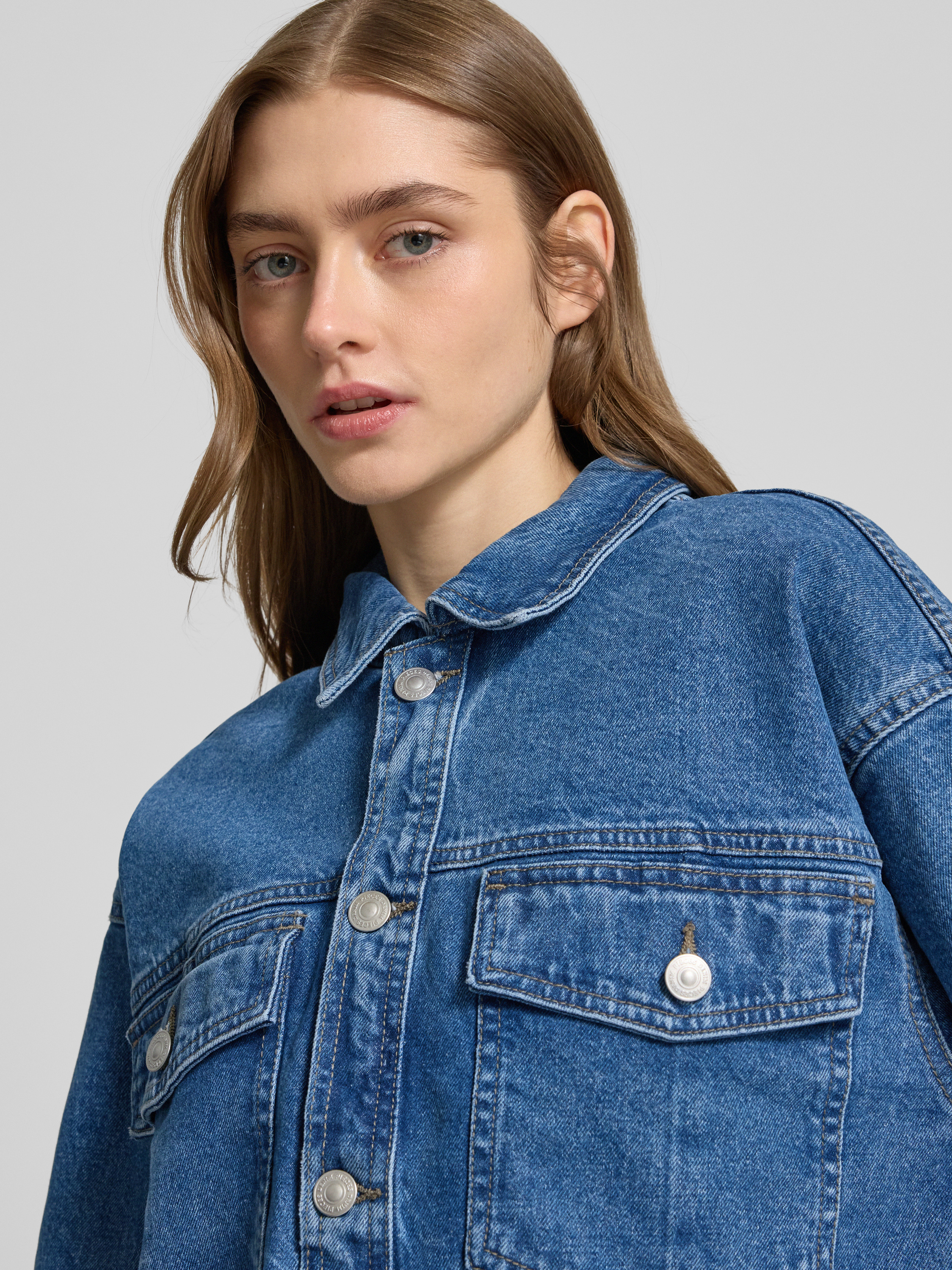 Kurtka jeansowa o kroju comfort fit z mieszanki bawełny model ‘ELMA’ - niebieski