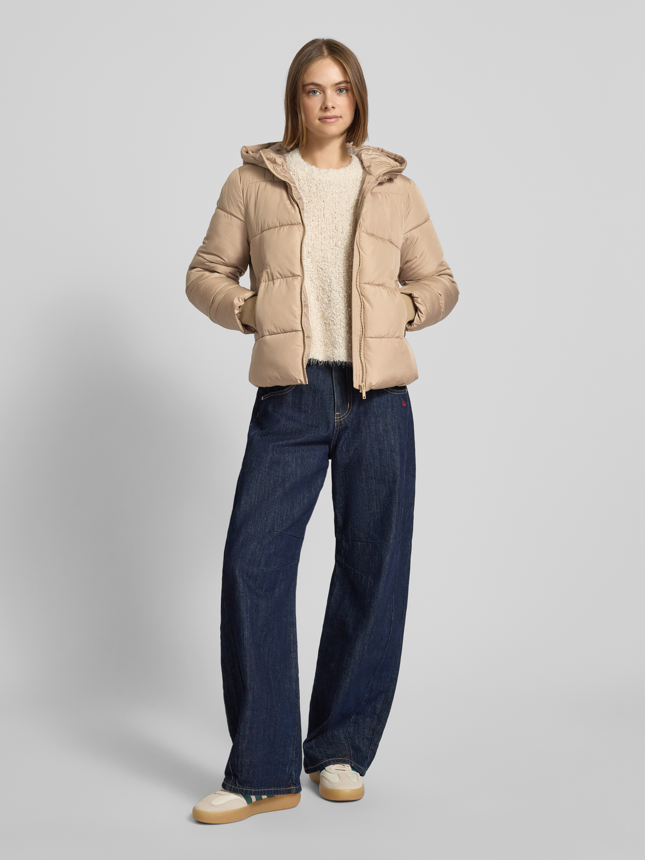 Kurtka pikowana o kroju regular fit z kapturem model ‘BEE NEW’ - piaskowy melanż