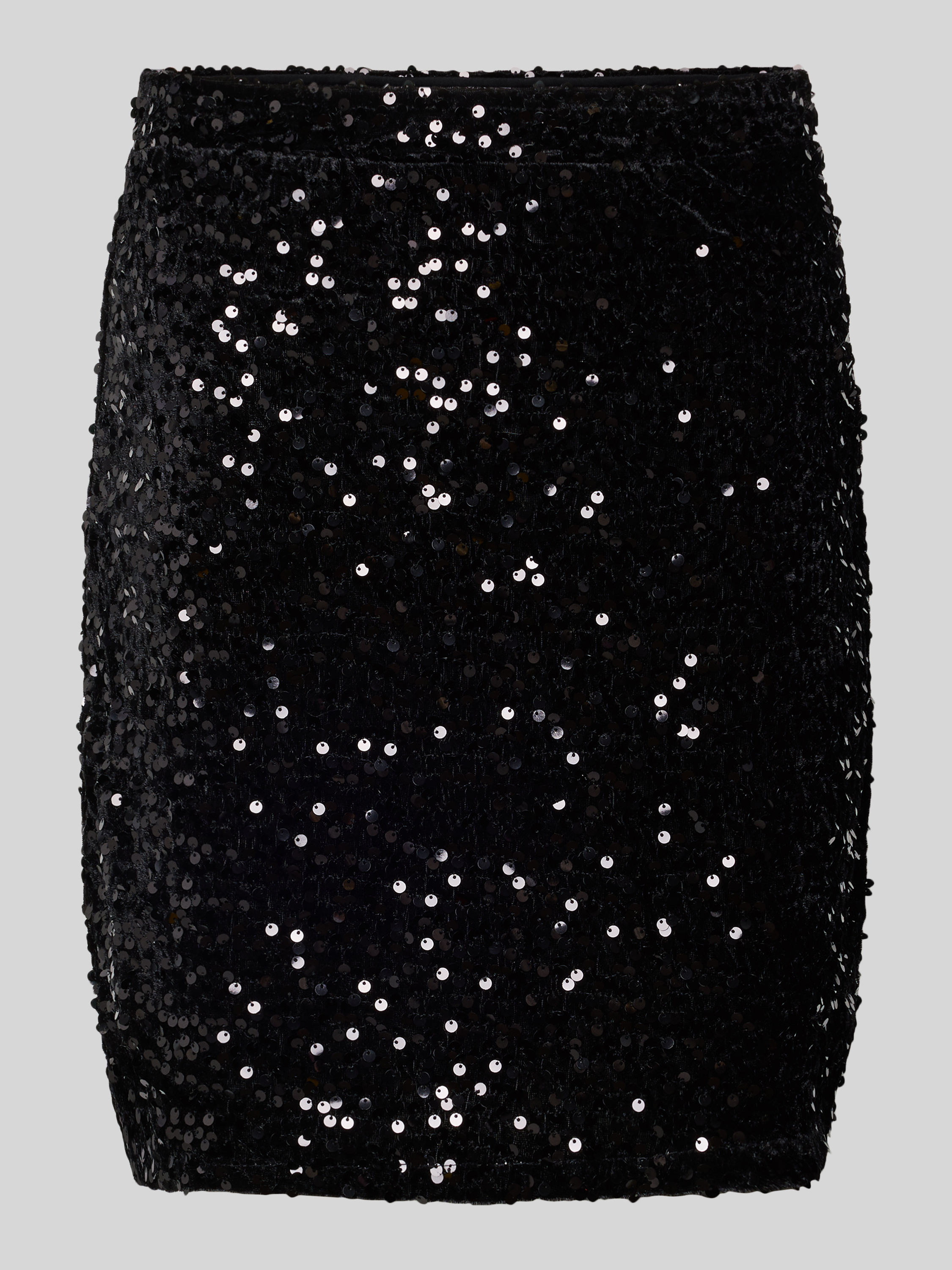 Spódnica midi o kroju podkreślającym sylwetkę z cekinowym obszyciem model ‘KAM’ - czarny