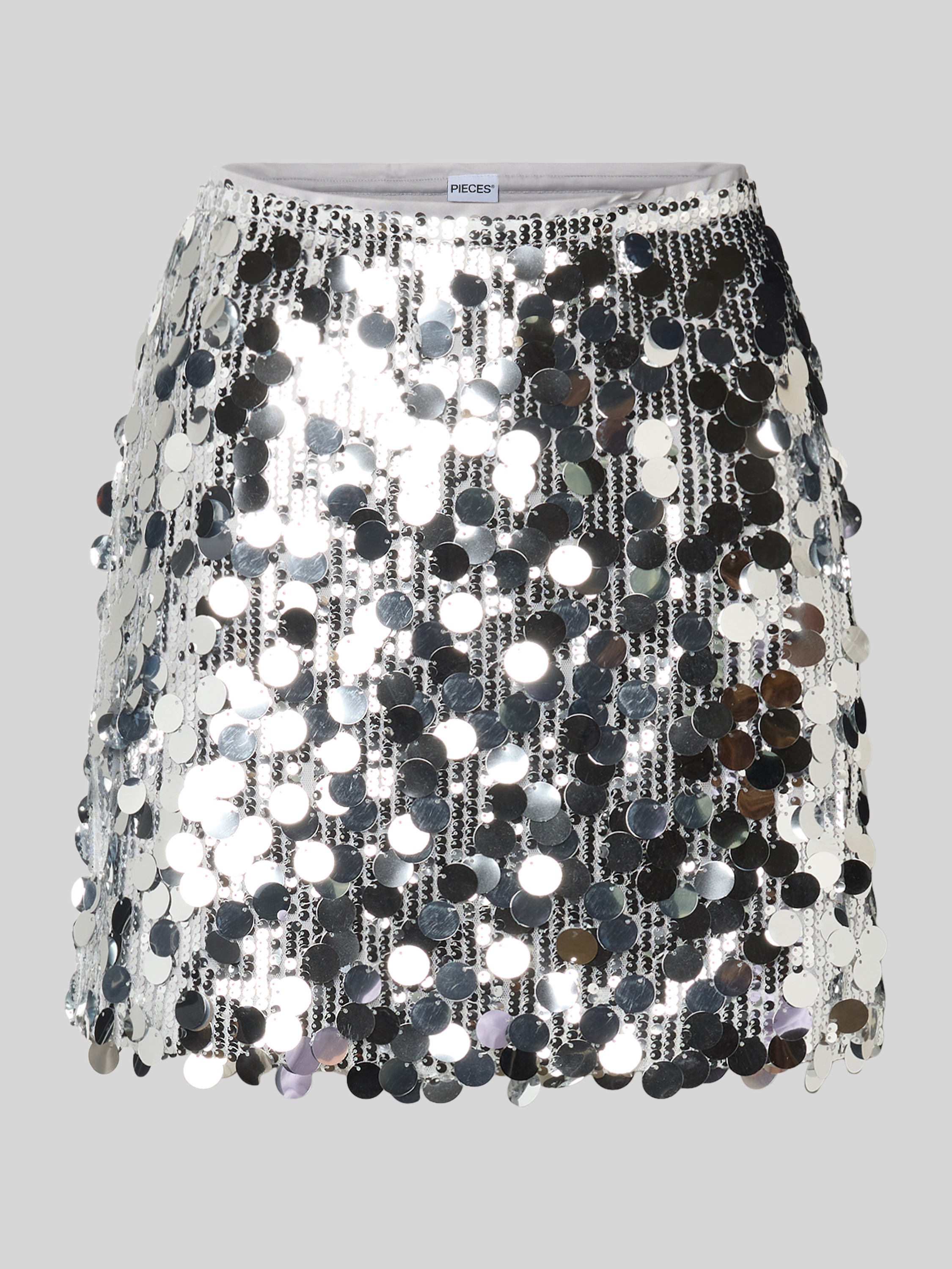 Spódnica mini o dopasowanym kroju z cekinowym obszyciem model ‘MALOU’ - srebrny