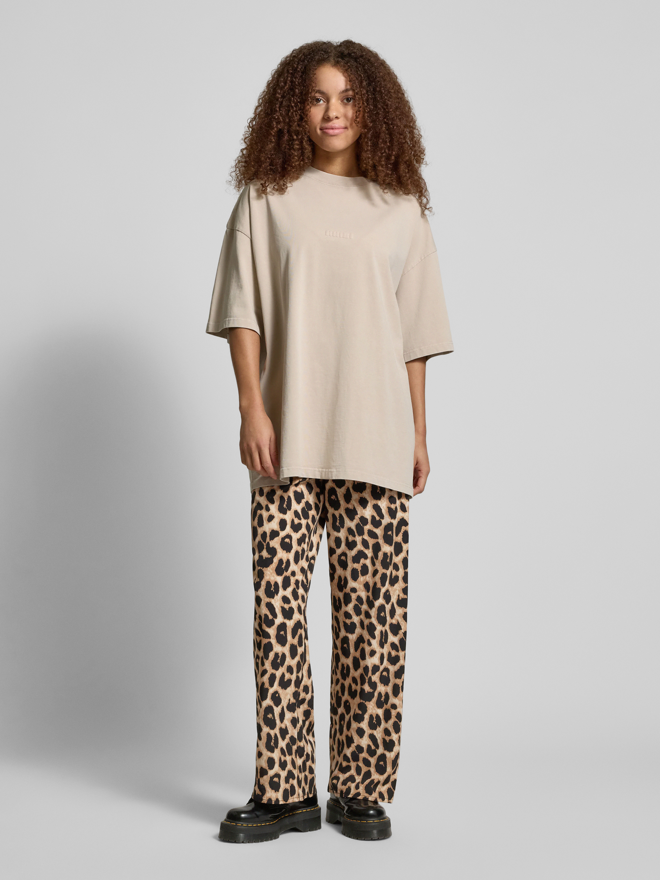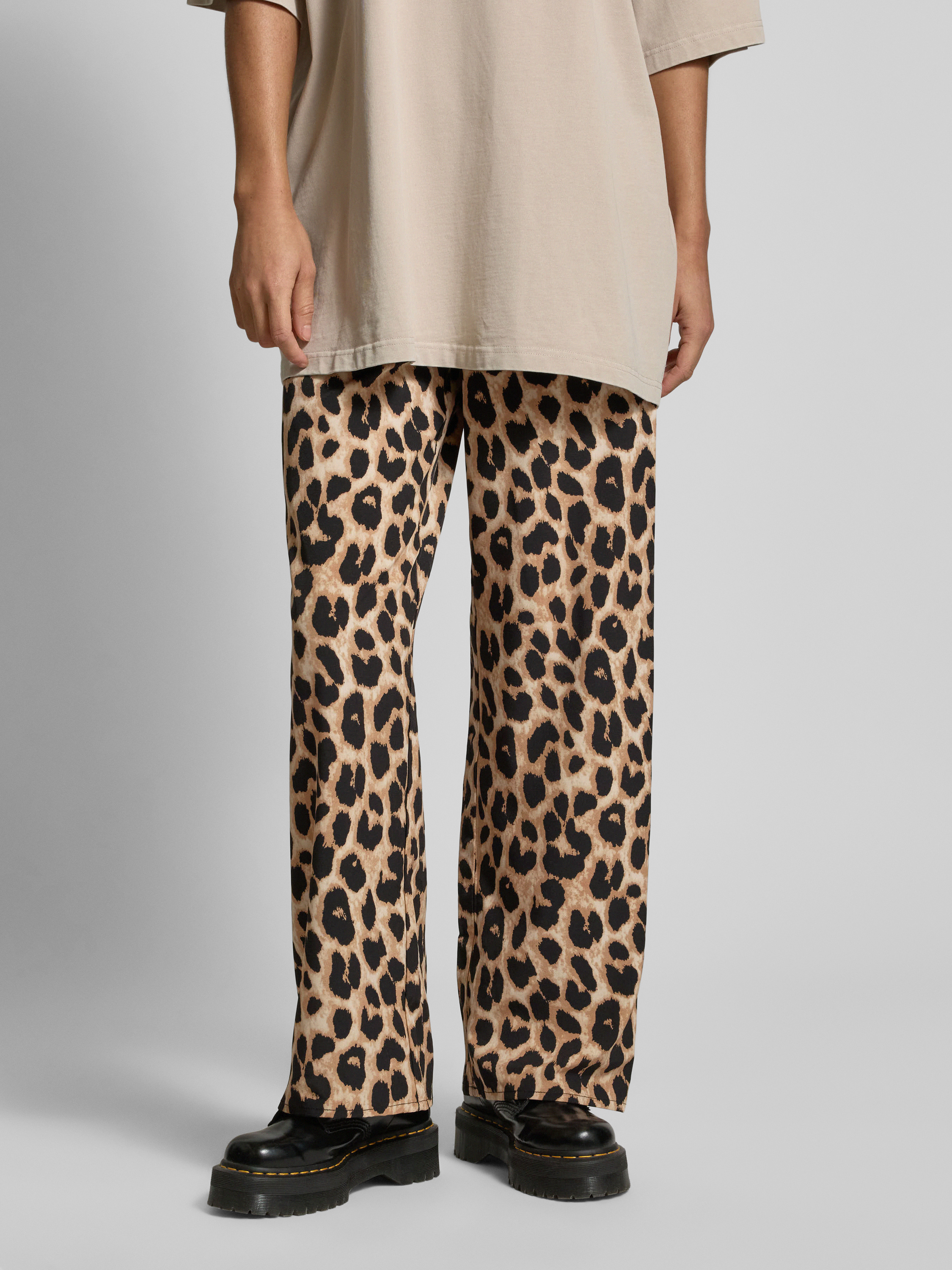 Spodnie materiałowe o luźnym kroju z nadrukiem na całej powierzchni model ‘GURLA’ - metaliczny czarny