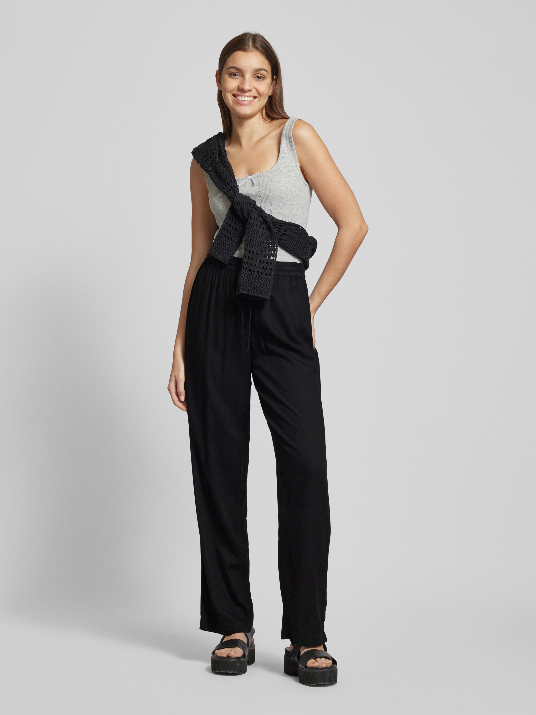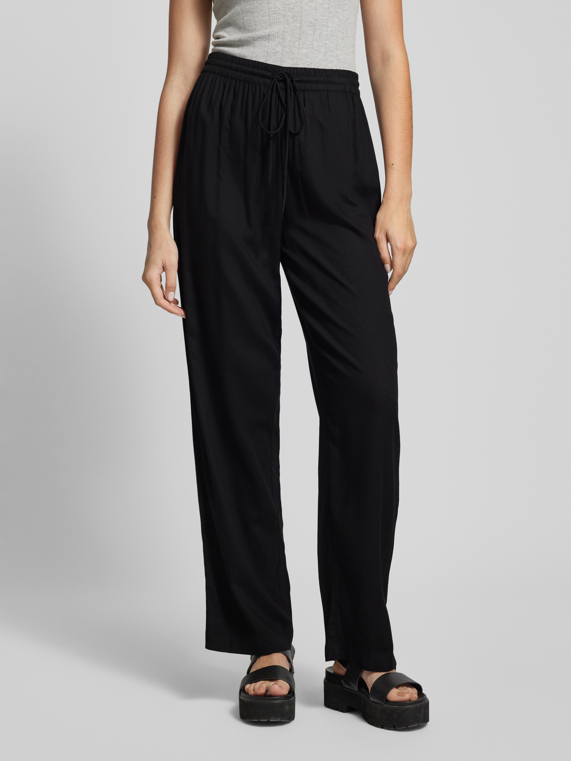 Spodnie materiałowe z kwiatowym wzorem model ‘NYA’ - czarny