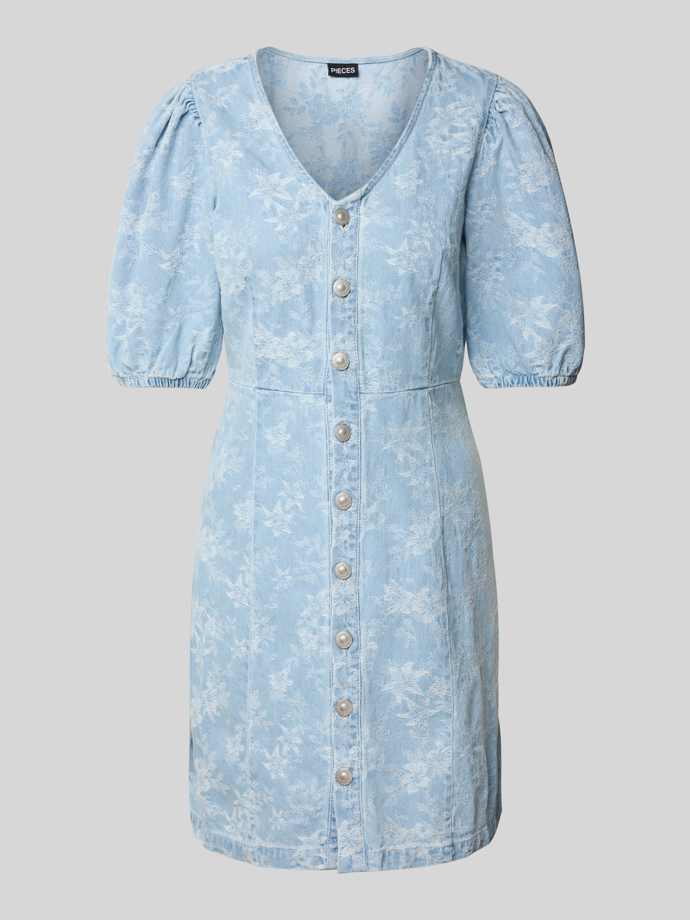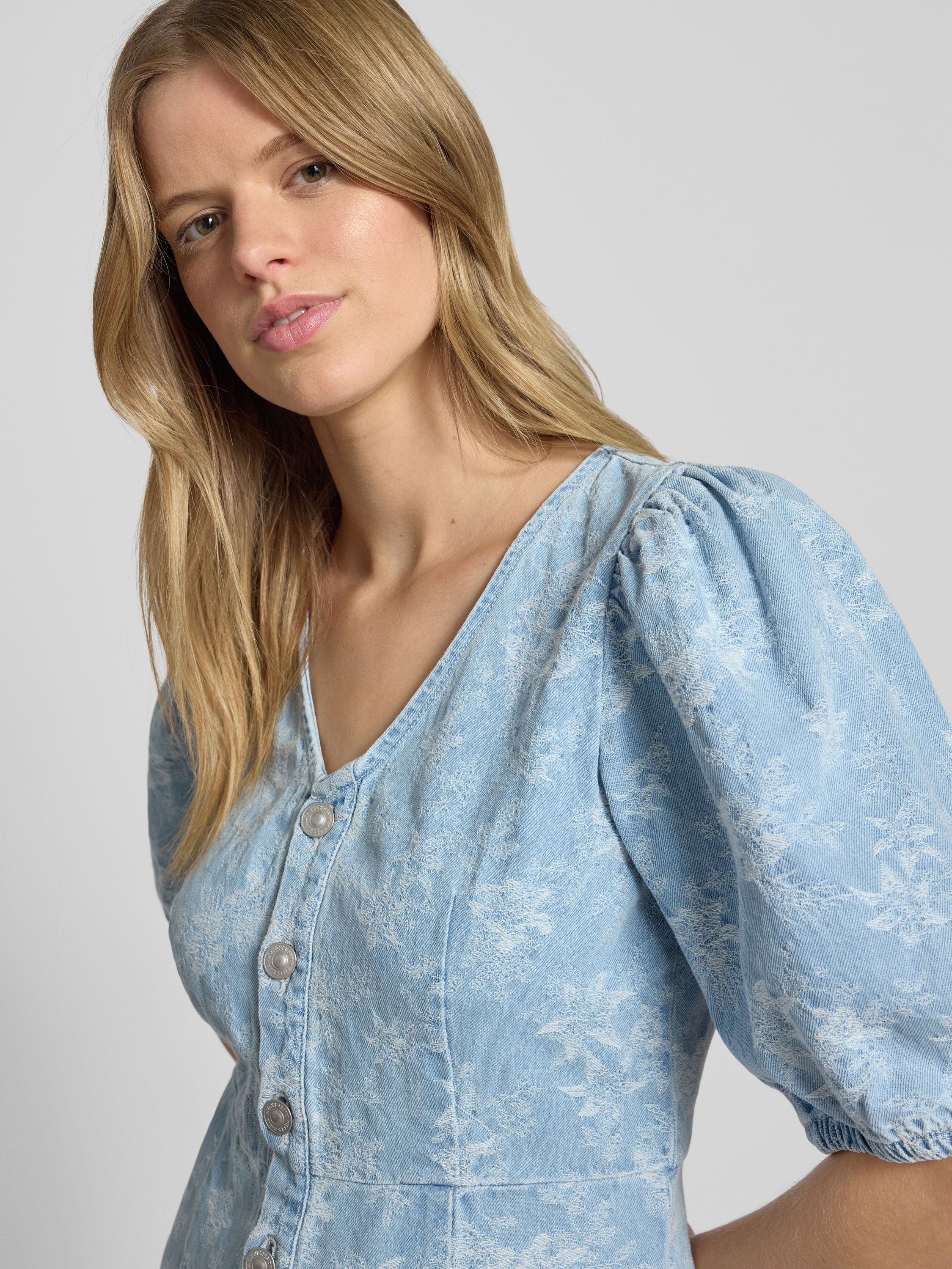 Sukienka jeansowa taliowana z czystej bawełny model ‘FELINE’ - jasnoniebieski