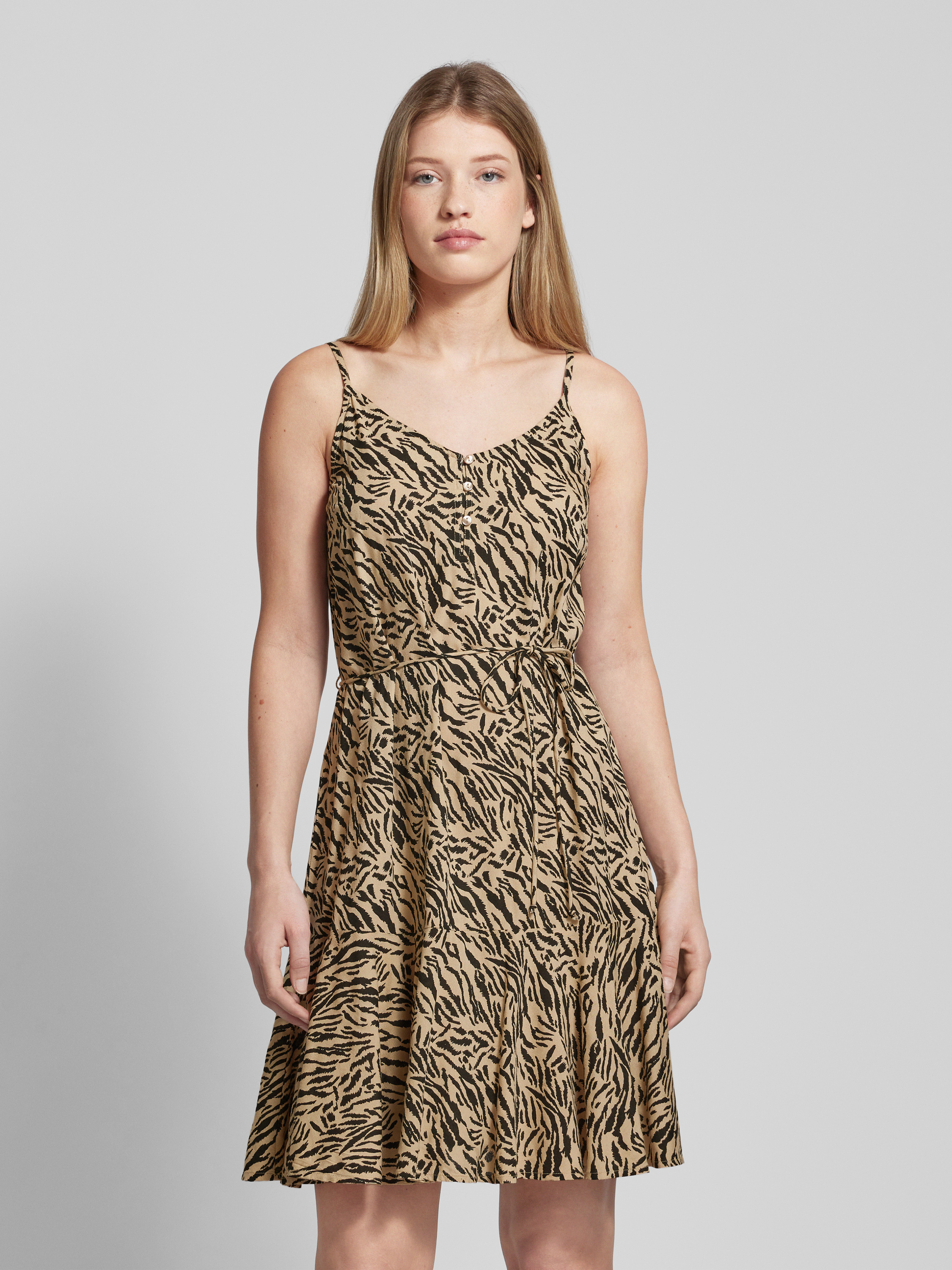 Sukienka o długości do kolan z wiązanym paskiem model ‘NYA’ - piaskowy
