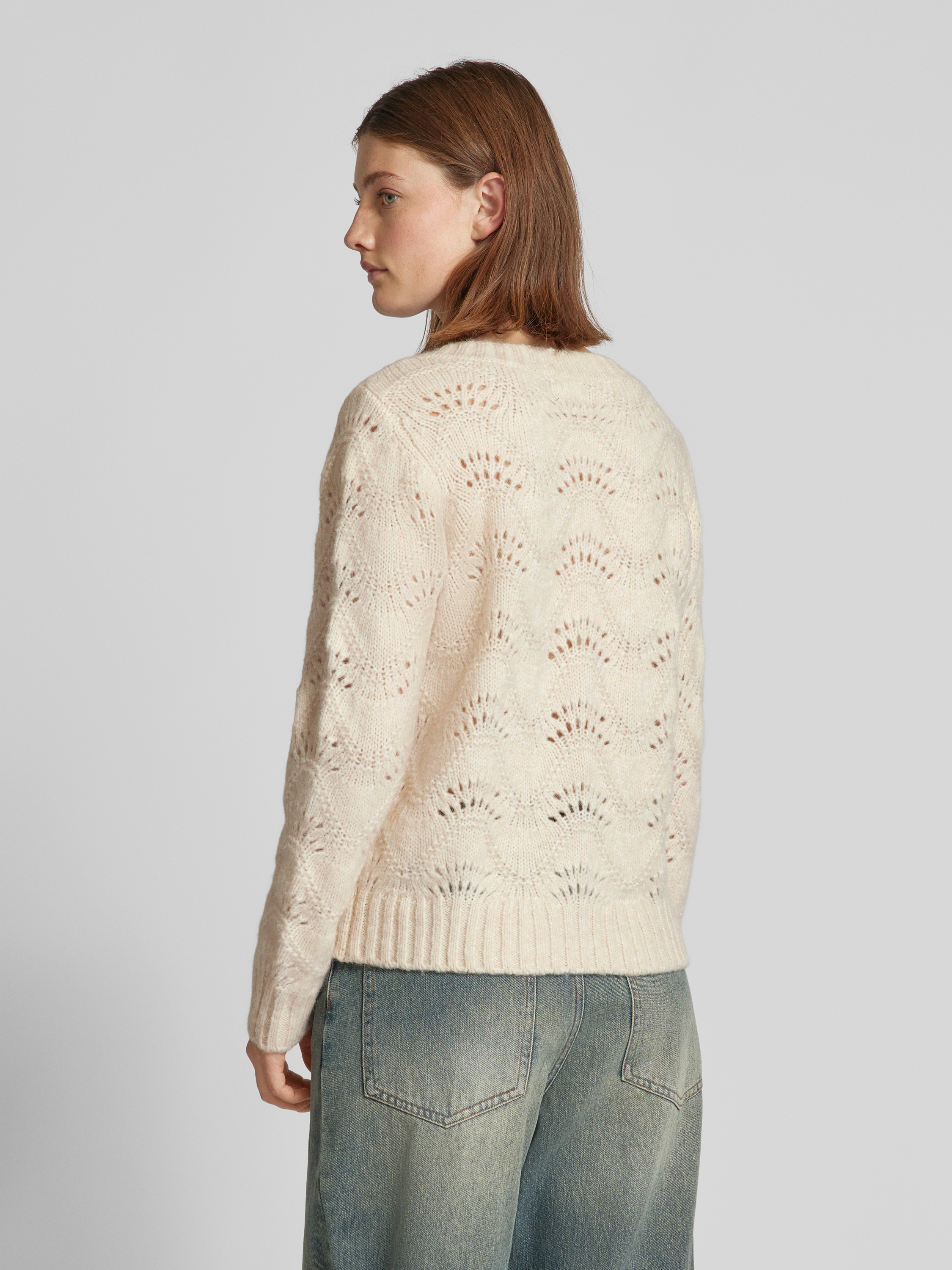 Sweter o kroju regular fit z dzianiny ze ściegiem falistym model ‘BIBBI’ - złamany biały