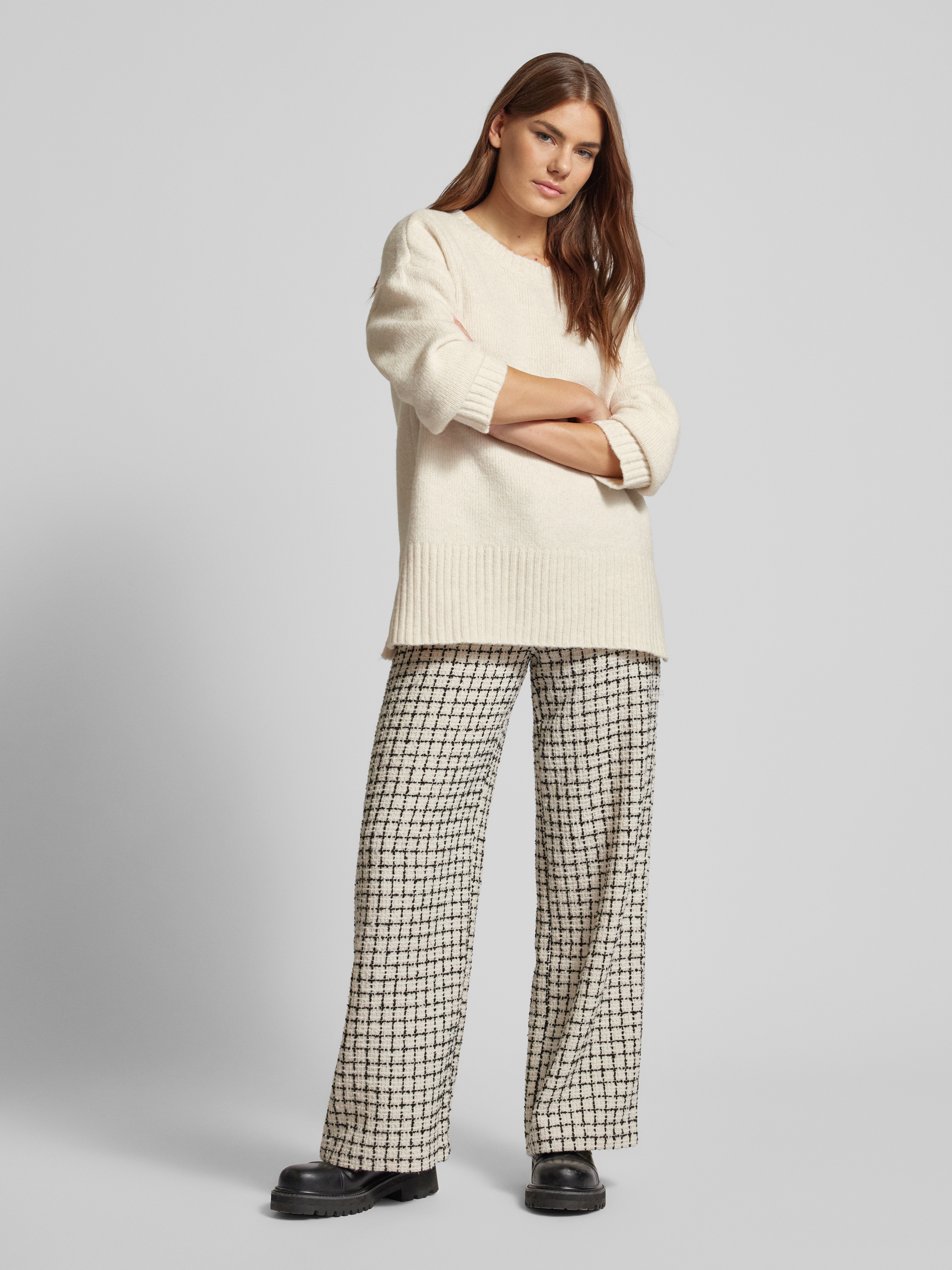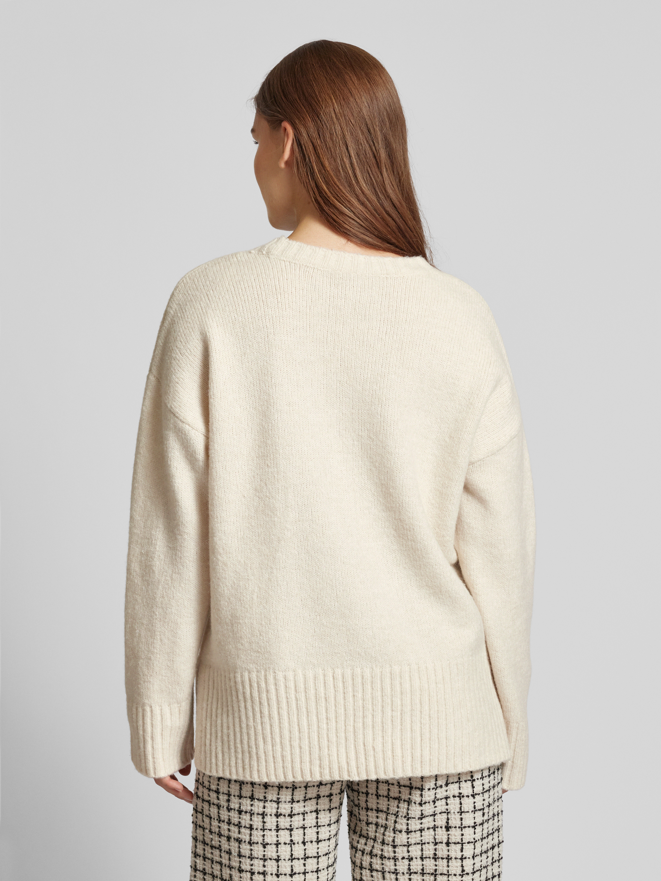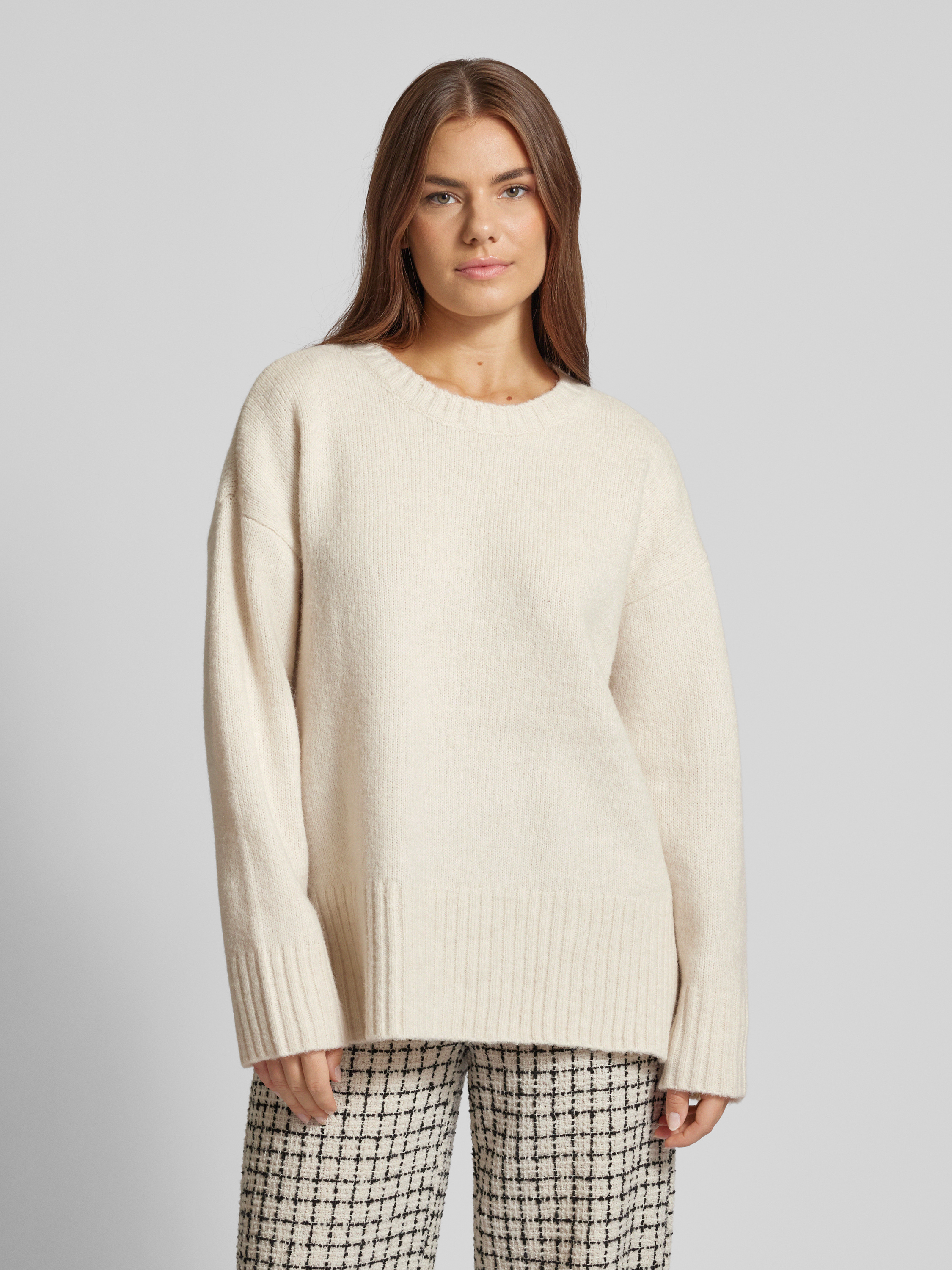 Sweter z długim rękawem i bocznymi rozcięciami model ‘NANCY’ - złamany biały