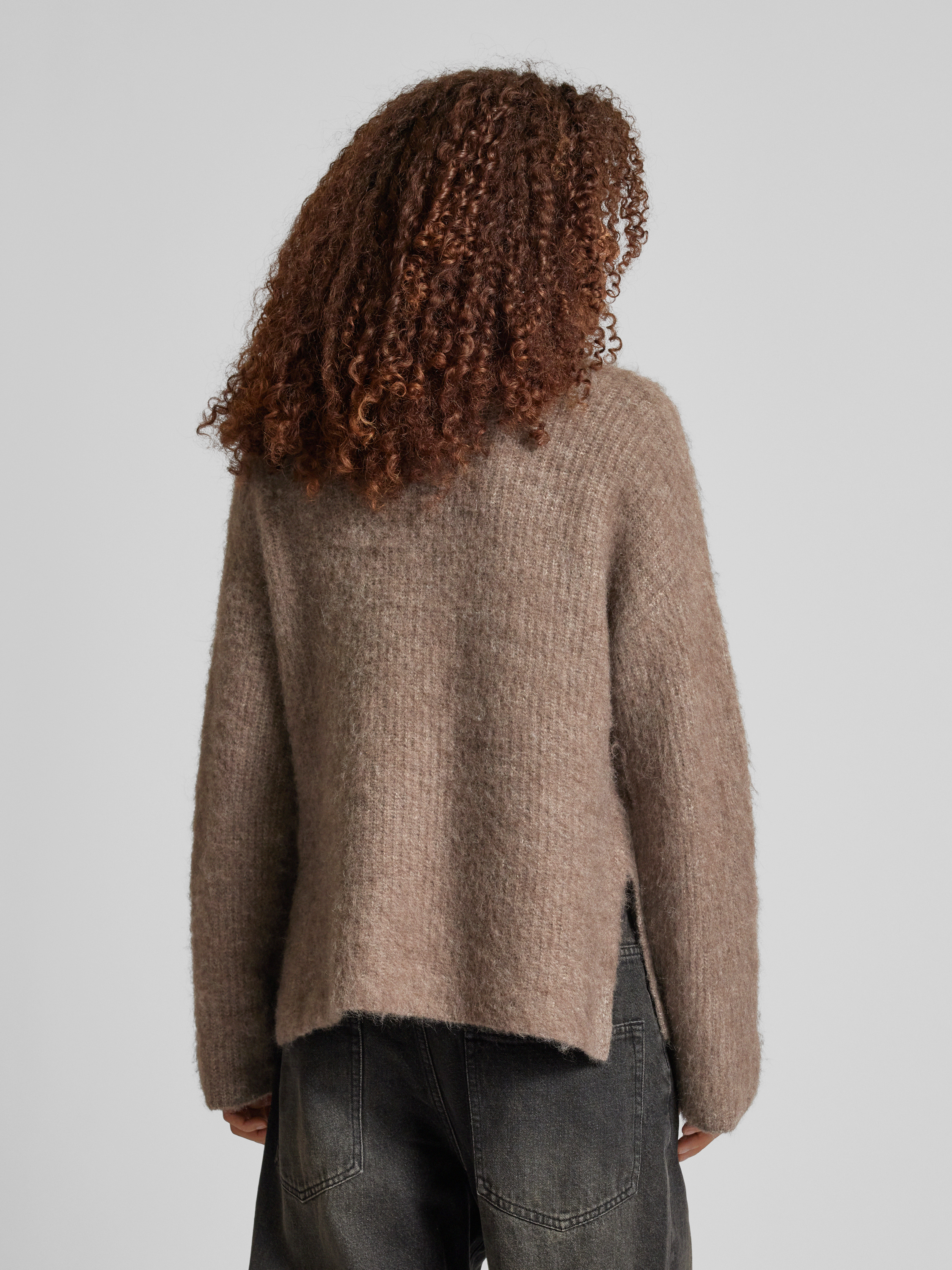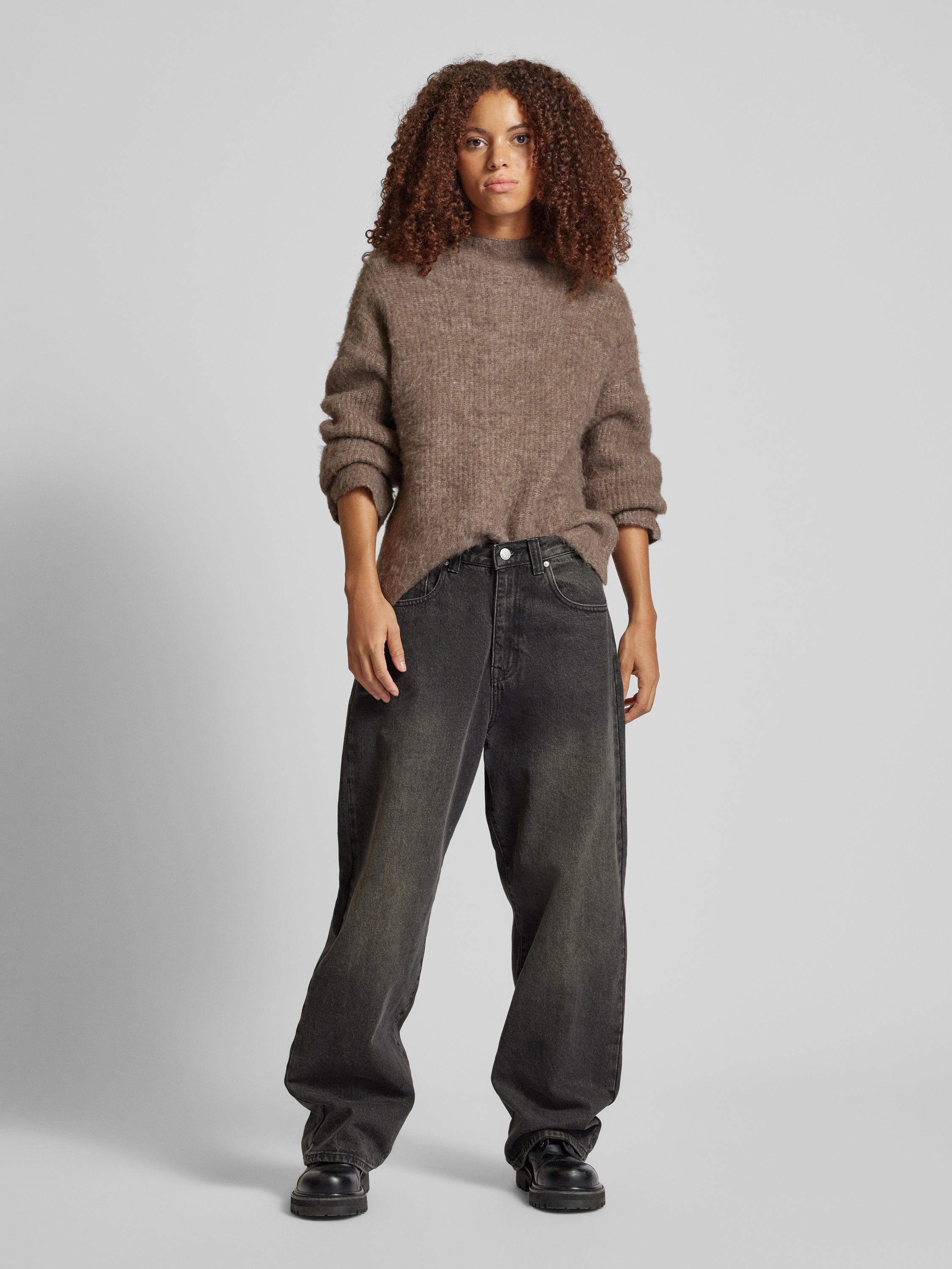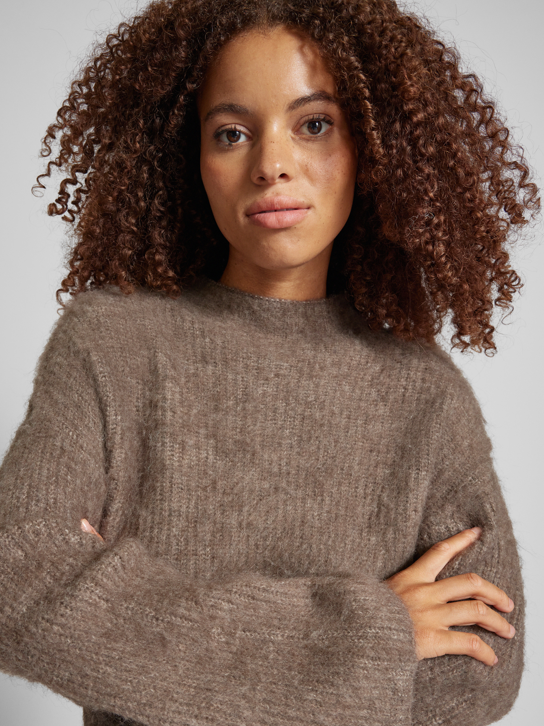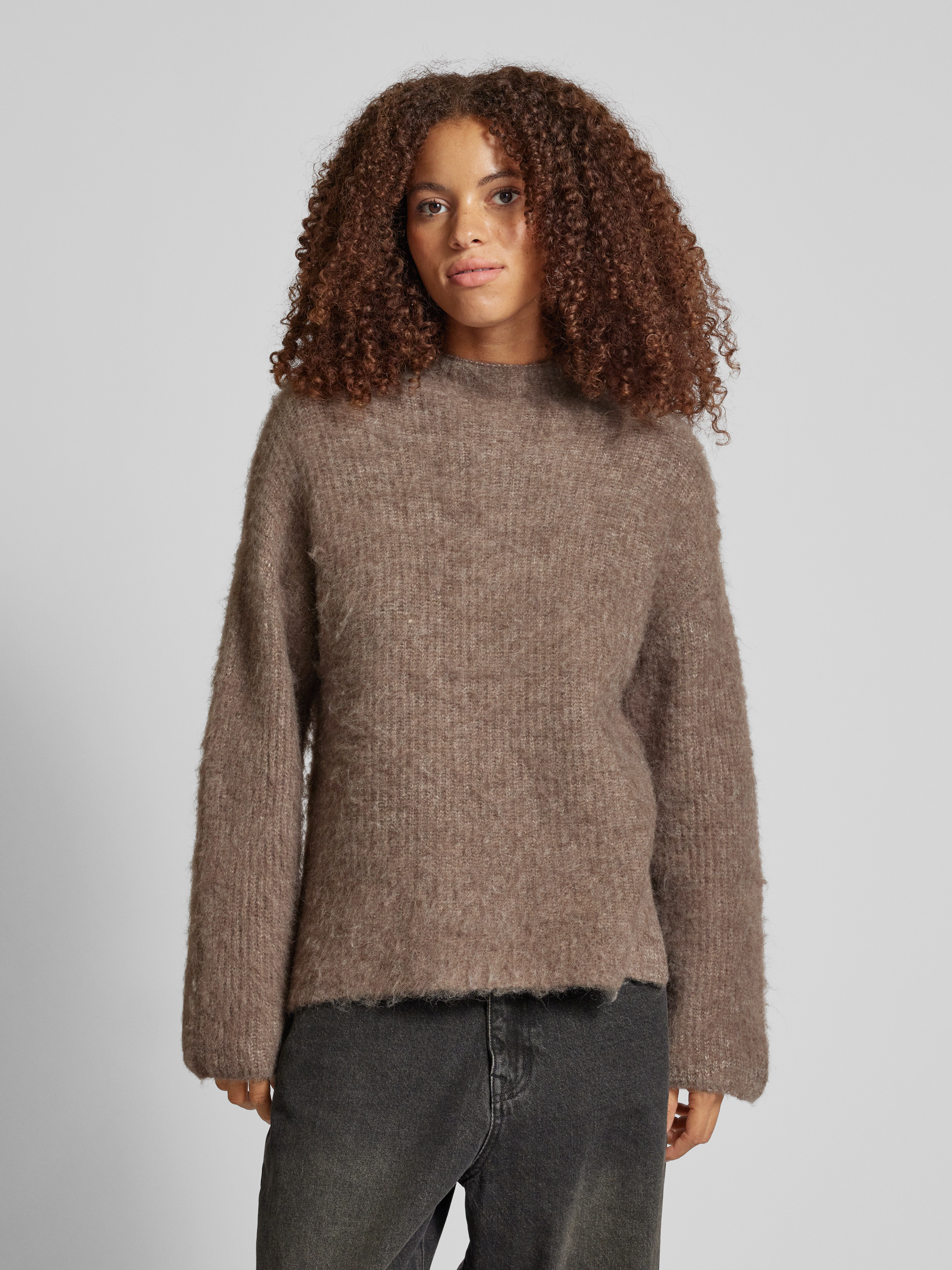 PiecesSweter z dzianiny o kroju comfort fit z dodatkiem wełny model ‘MALA’ - ciemnobrązowy